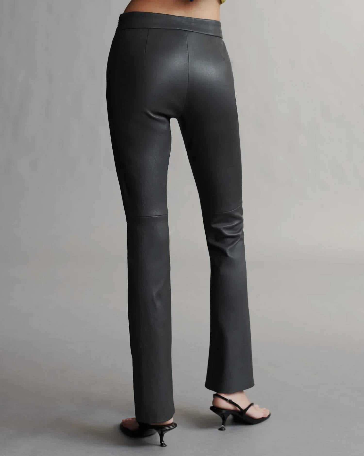 Slightly flared pants are all the rage right now and these are no exception. Pair these with your favorite tee for a more casual look, or with your favorite button-up blouse for an evening out. The Skinny Love Pant by TWP is a sophisticated choice, crafted from 100% lamb leather for a luxurious touch. These mid-rise pants showcase a slim fit with a chic bootcut leg, detailed with a fitted paneled silhouette and a slight flare. Made in Italy, these pull-on pants have a 9.75-inch rise, 30.5-inch inseam, and 8.5-inch leg opening, providing sleek lines. Care for this stylish piece by dry cleaning only.