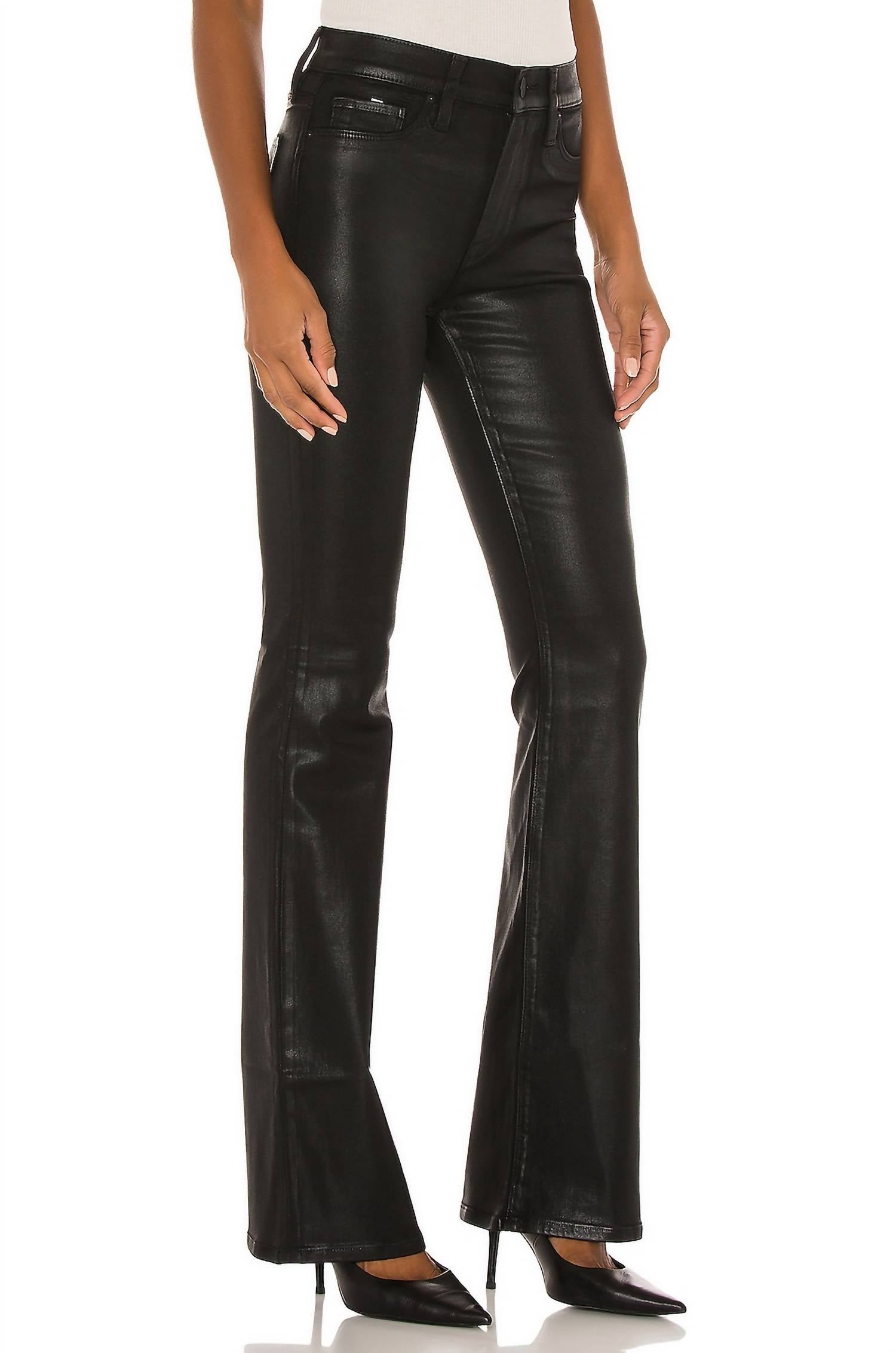 The trend report says boot-cut is in and that's exactly why we love this style. They are fit to perfection, flattering on any body type, and comfortable. They will be your go-to all season long. Discover the Barbara High Waist Coated Bootcut Jean by Hudson, designed in a sleek black cotton blend for a modern, minimalist look. Featuring a high-rise 10" waist and slim fit, these jeans boast a solid pattern with a classic bootcut leg style for a versatile fall staple. The practical zip closure ensures ease, while its made in CN origins reflect quality craftsmanship. Care is a breeze with machine washable and tumble dry instructions, and a 32" inseam adds the perfect finishing touch. 59% Cotton, 33% Modal, 6% Poly, 2% Elastane.