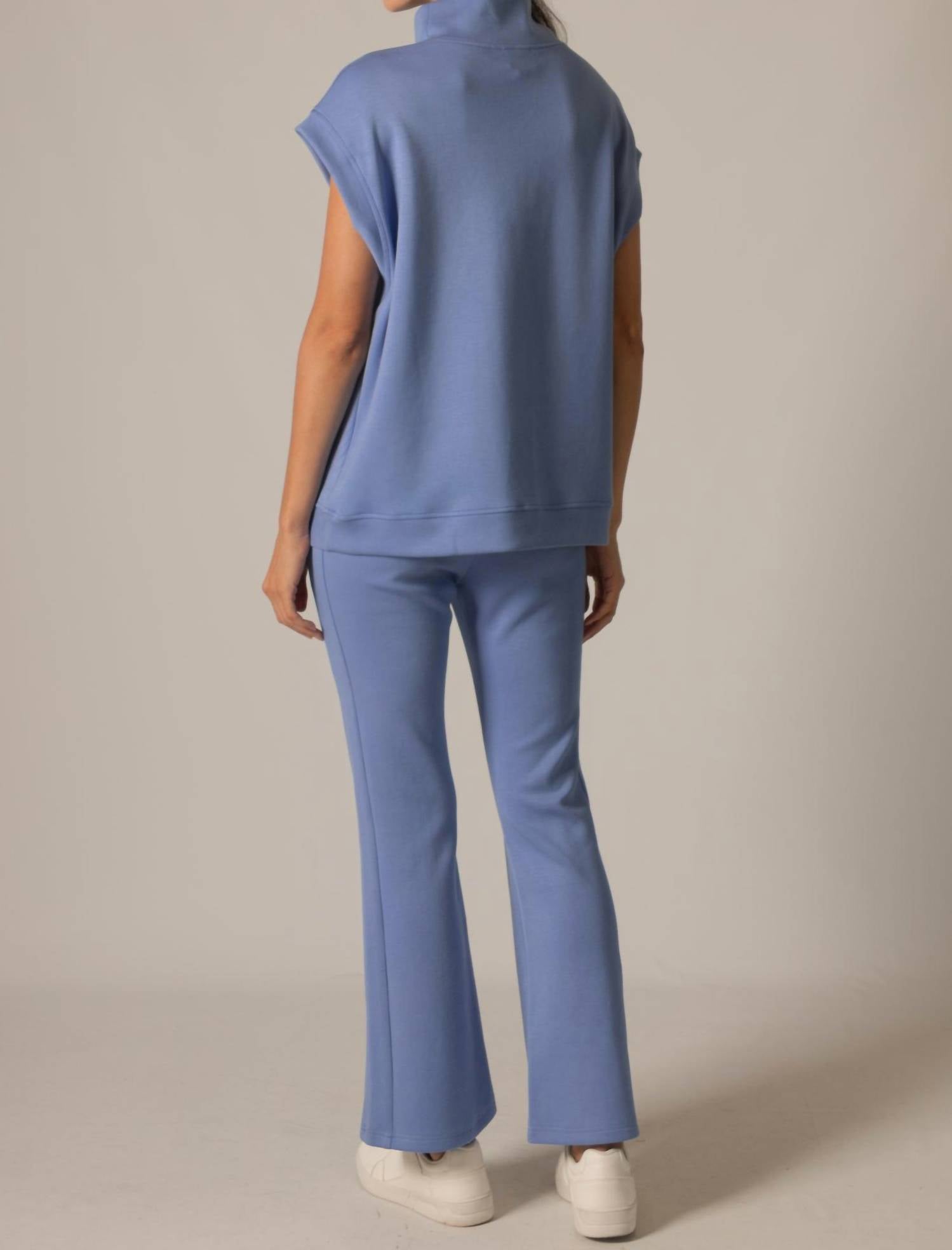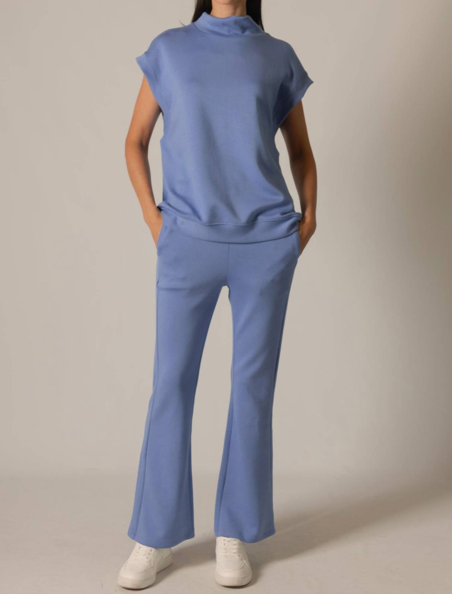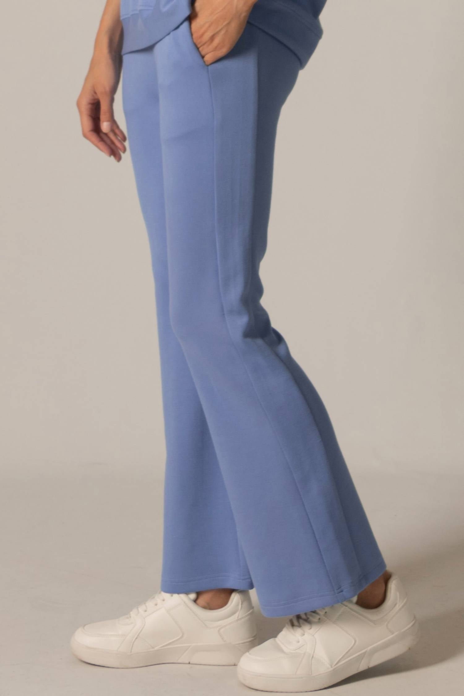 Stay on trend with these stylish boot cut pants that are fit to perfection. The perfect combination of comfort and fashion, you'll be grabbing for these all season long! Experience elevated comfort and style with the Rumi Fitted Flares by P.CILL, now available in cornflower for a perfect splash of color. Crafted from ultra-soft Butter Modalâ„¢, the pants feature a high-waisted, relaxed fit with a stretchy elastic waistband and subtle flared leg, showcasing a sophisticated silhouette. Composition: 48% Modal, 48% Polyester, 4% Spandex. They are pull-on style and include pockets for convenience. The inseam measures 28 inches for size small, and these pants fit true to size. Care: Machine wash or hand wash gentle in cold or warm water, and line dry.