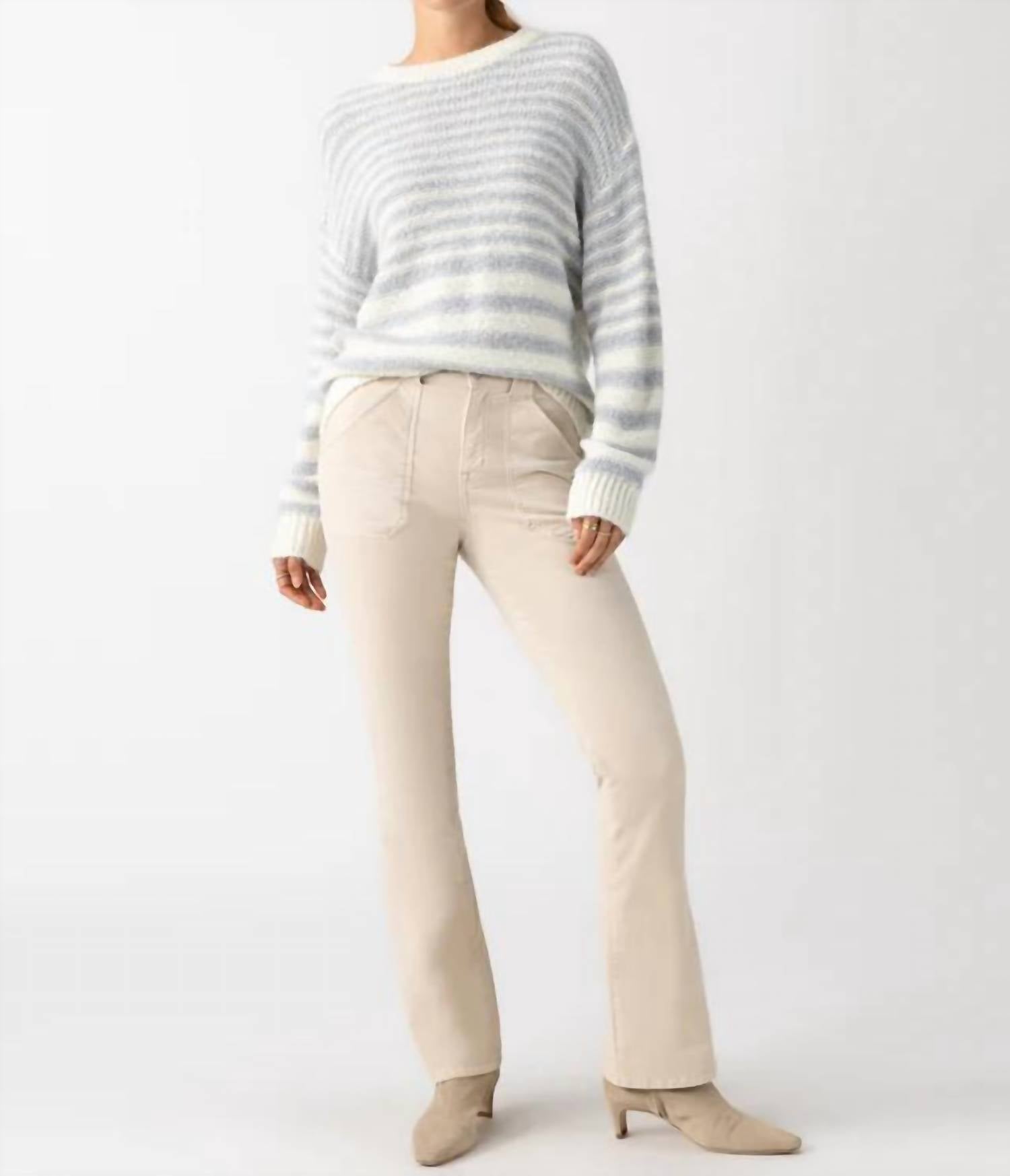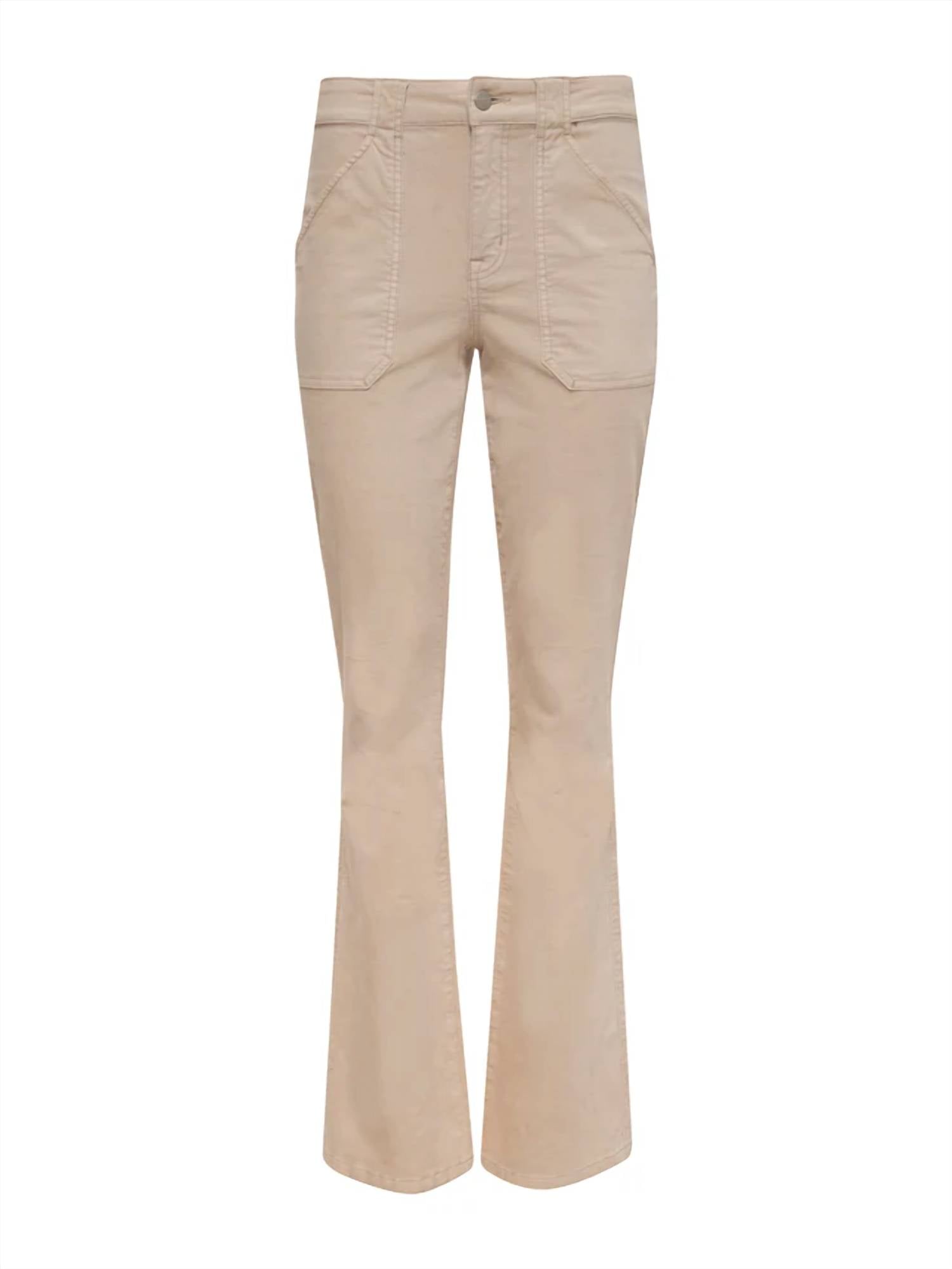 Slightly flared pants are all the rage right now and these are no exception. Pair these with your favorite tee for a more casual look, or with your favorite button-up blouse for an evening out. Introducing the Sanctuary Velveteen Hayden Bootcut Pant in an elegant cream hue, designed for women who appreciate a solid, sophisticated look. These fitted trousers are crafted from a cotton blend, consisting of 98% cotton and 2% spandex, providing comfort and stretch. Featuring a zip closure and two front slant pockets along with two back flap pockets, these pants boast a high rise with a 10.25" front rise and a generous 33.5" inseam. Care for them is effortless with machine wash and tumble dry instructions.