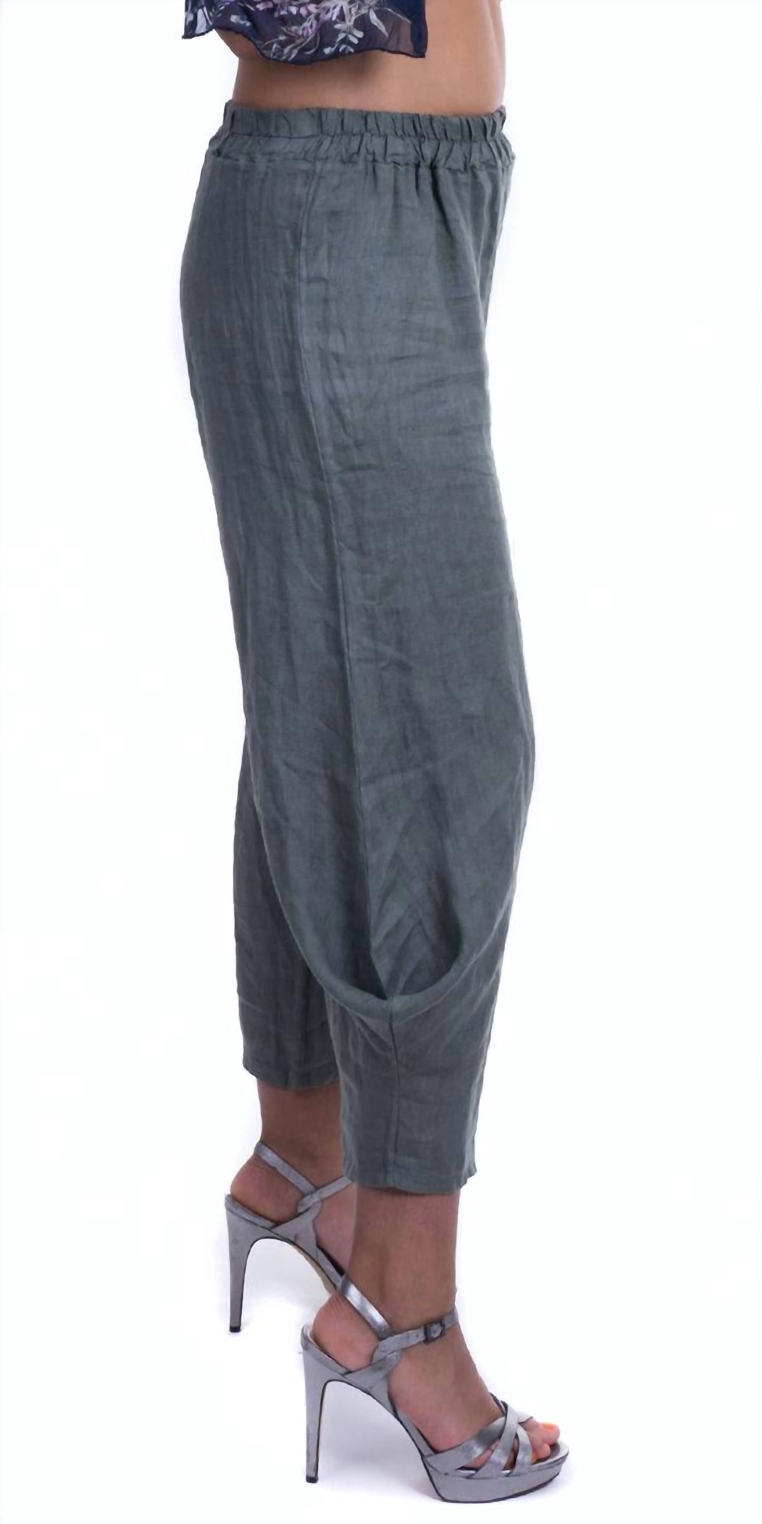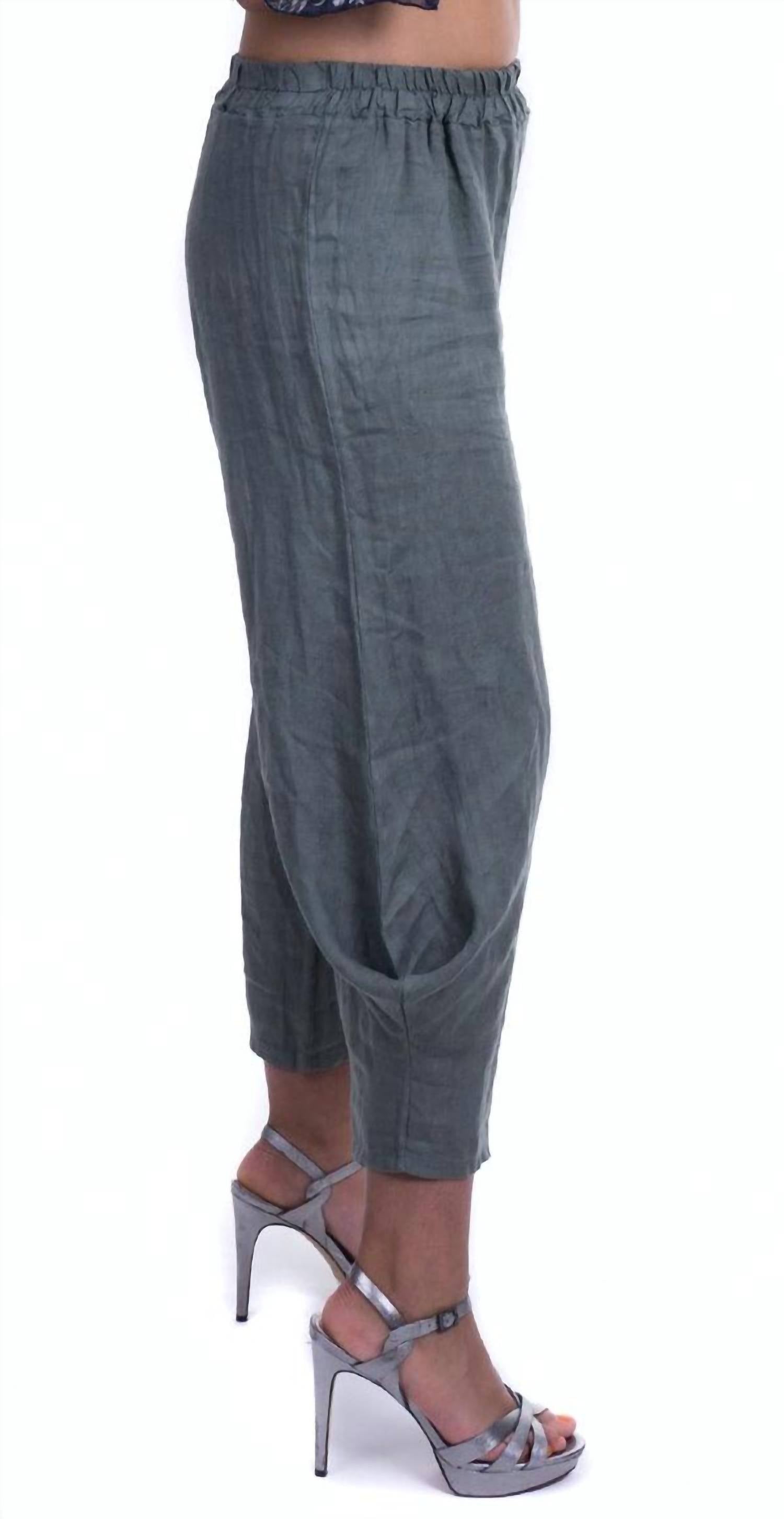 Stay on trend with these stylish boot cut pants that are fit to perfection. The perfect combination of comfort and fashion, you'll be grabbing for these all season long! Elevate your summer workwear with the Women's Abri Straight Leg Pants by GIGI MODA, crafted in a refreshing olive hue. These pants feature a relaxed fit with a bubble leg design and an elastic waistband, finishing with a tapered hem for added style. Made from 100% Linen in Italy, they ensure comfort and breathability all season long. The pull-on closure makes dressing easy, and care is a breeze with hand wash and line dry instructions.