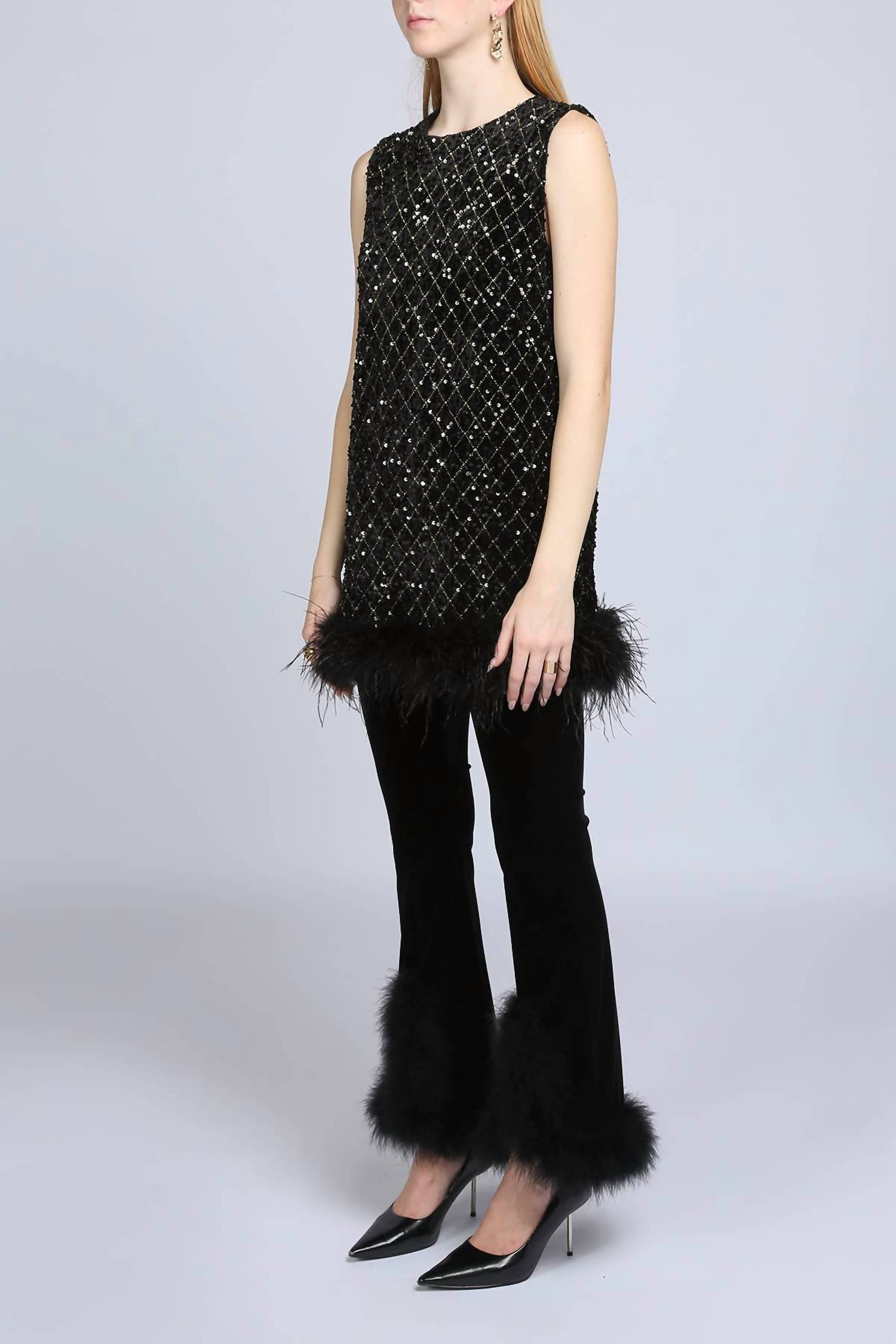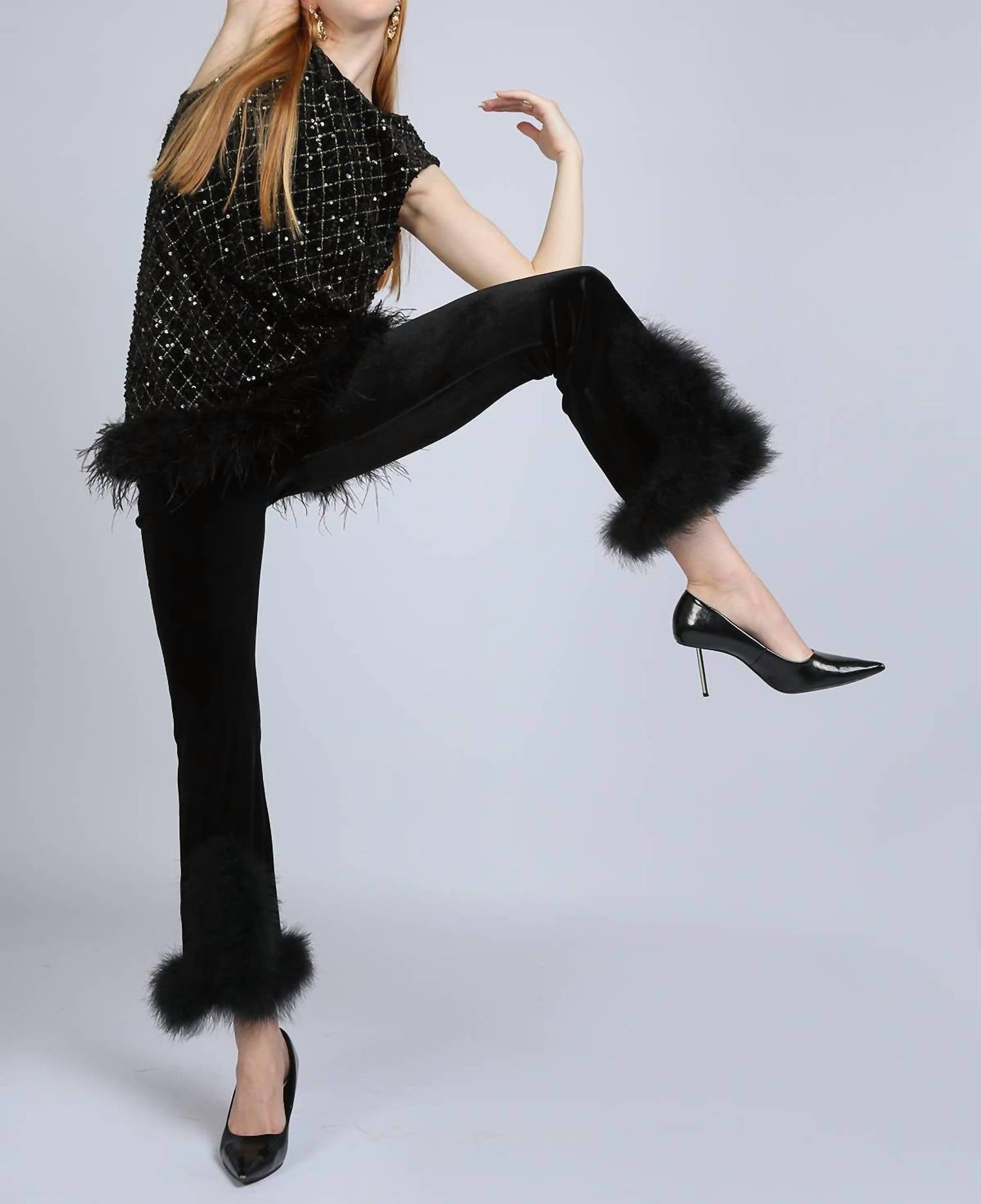 The trend report says boot-cut is in and that's exactly why we love this style. They are fit to perfection, flattering on any body type, and comfortable. They will be your go-to all season long. Meet the Hem Fur Velvet Boot Cut Pants by BEULAHSTYLE, an elegant piece for the modern woman seeking quiet luxury. Crafted from fine velvet, these pants feature a stylish bootcut leg with hem fur and slit detailing, complemented by rhinestone accents on the pocket line. Designed with a relaxed fit and high-rise waist, they make an ideal choice for spring soirées or Valentine's Day celebrations. Care for this exquisite garment using machine wash methods and line dry for best results. Model size 5'10" is wearing a size S.