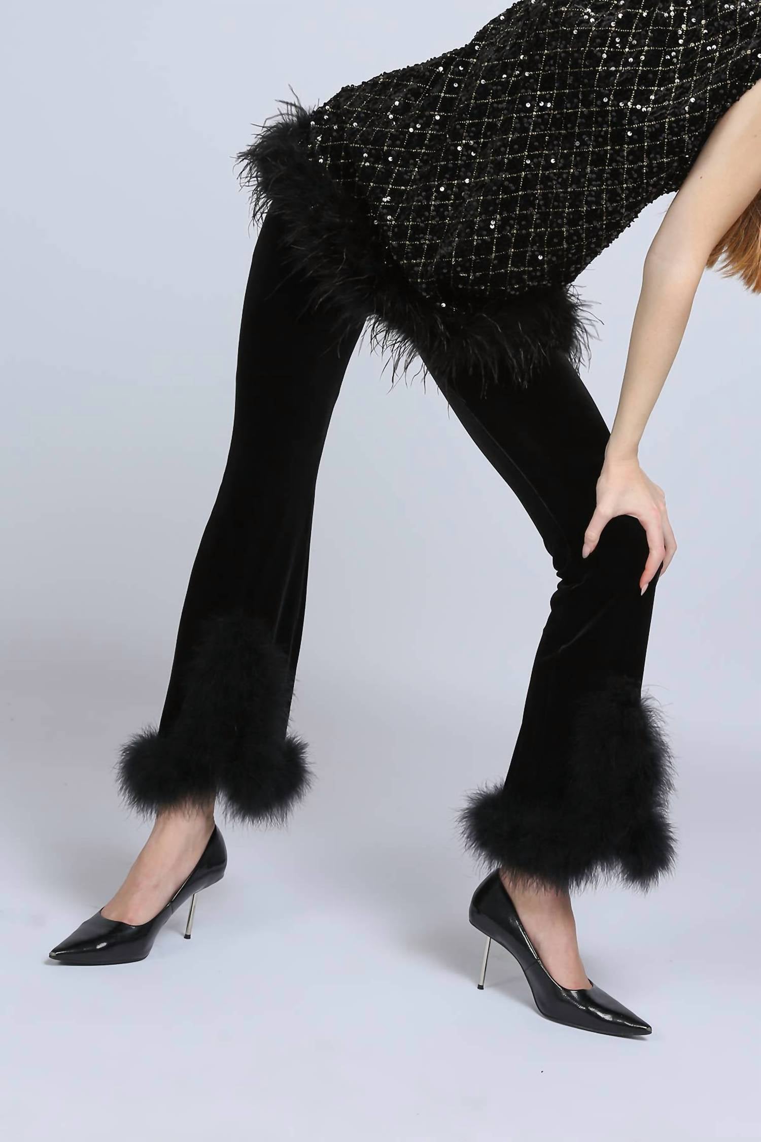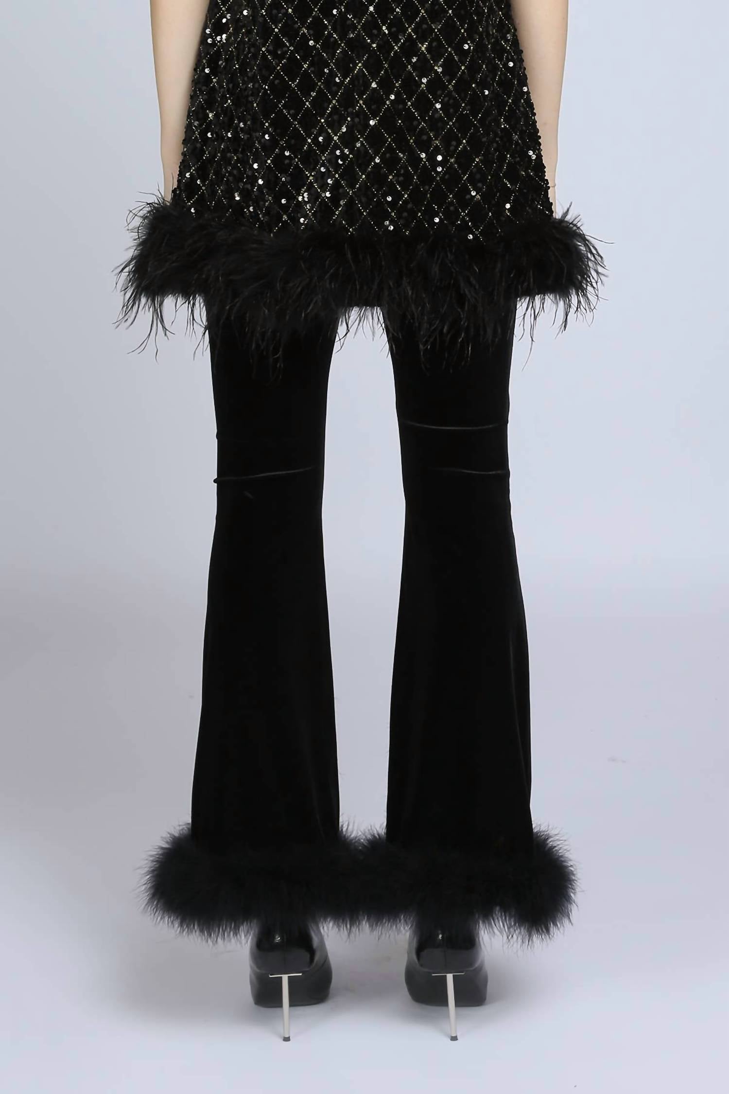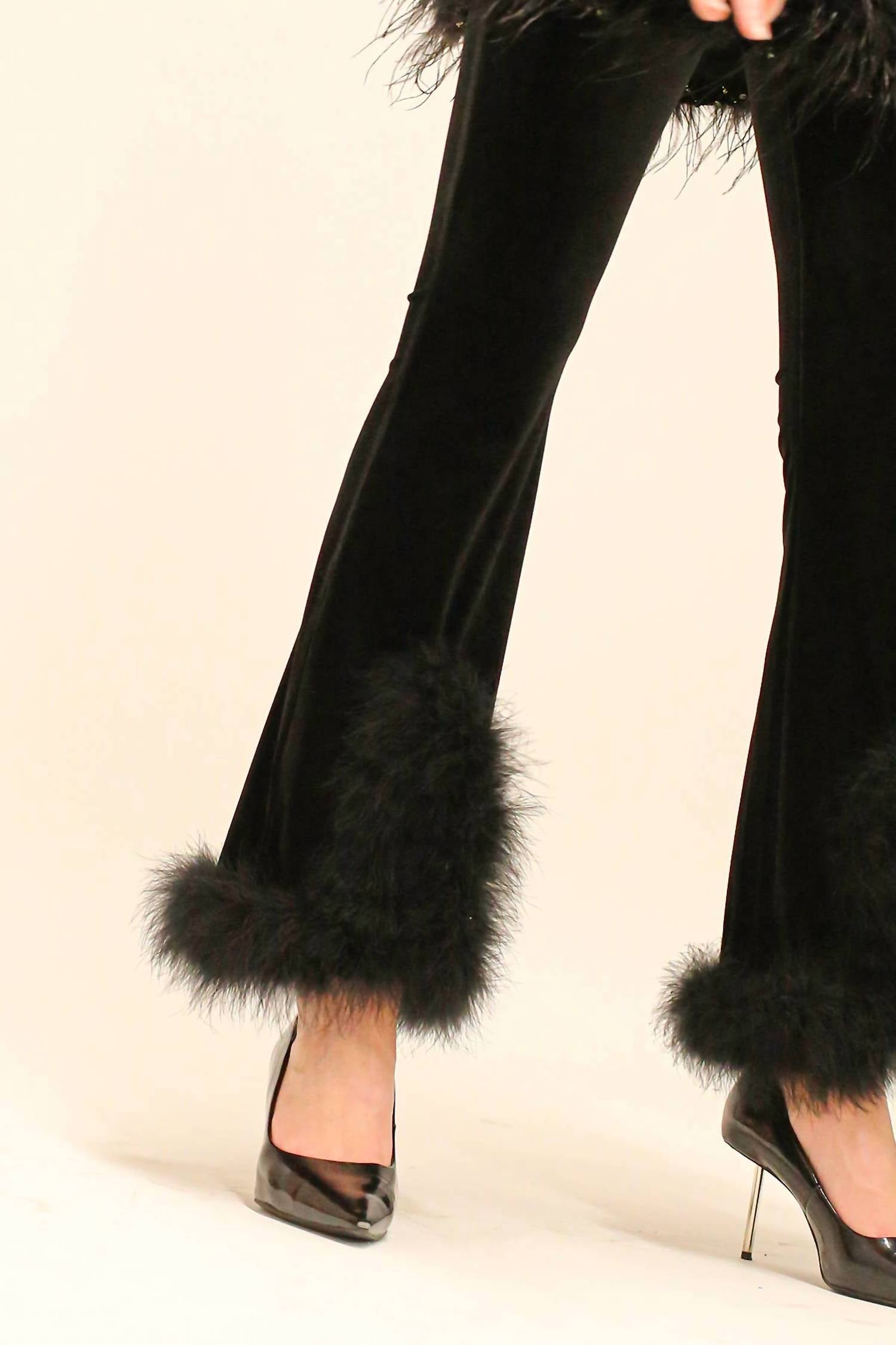 Beulahstyle - Hem Fur Velvet Boot Cut Pants