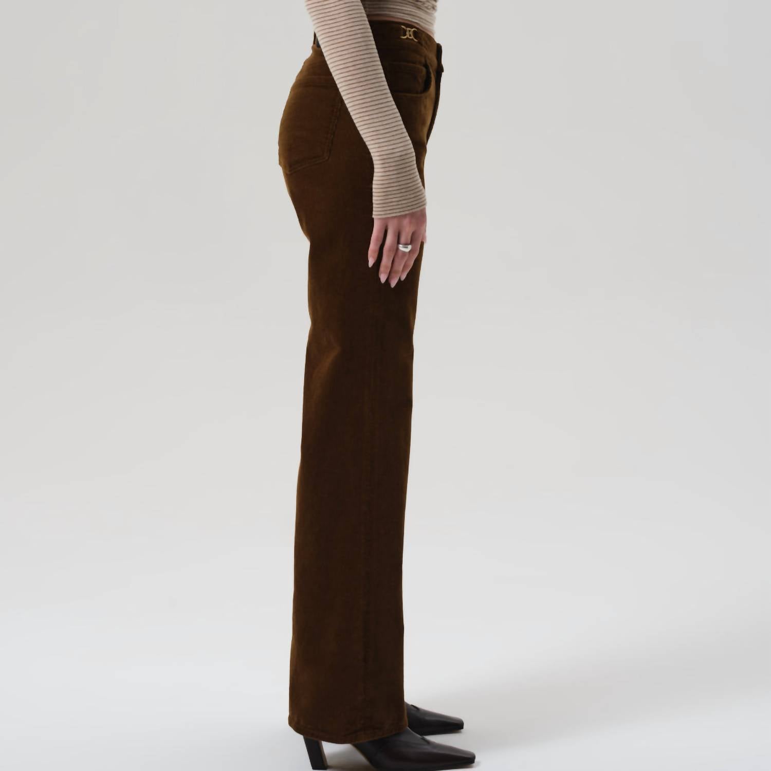 Slightly flared pants are all the rage right now and these are no exception. Pair these with your favorite tee for a more casual look, or with your favorite button-up blouse for an evening out. Introducing the Kimberly Flare with Horsebit Corduroy Pants by Citizens of Humanity, designed to elevate your wardrobe with a chic, equestrian-inspired flair. These high-rise pants feature a zip fly closure and are crafted from a soft cotton blend of 98% Cotton and 2% Elastane, offering a relaxed fit with a structured yet comfortable feel. In a captivating Manuka hue, they boast an 11" rise, 32" inseam, and 24" leg opening, making them ideal for pairing with crisp shirting or a slim turtleneck. Care instructions: Machine wash and tumble dry for easy maintenance. The model is 5'10" and wears size 27.