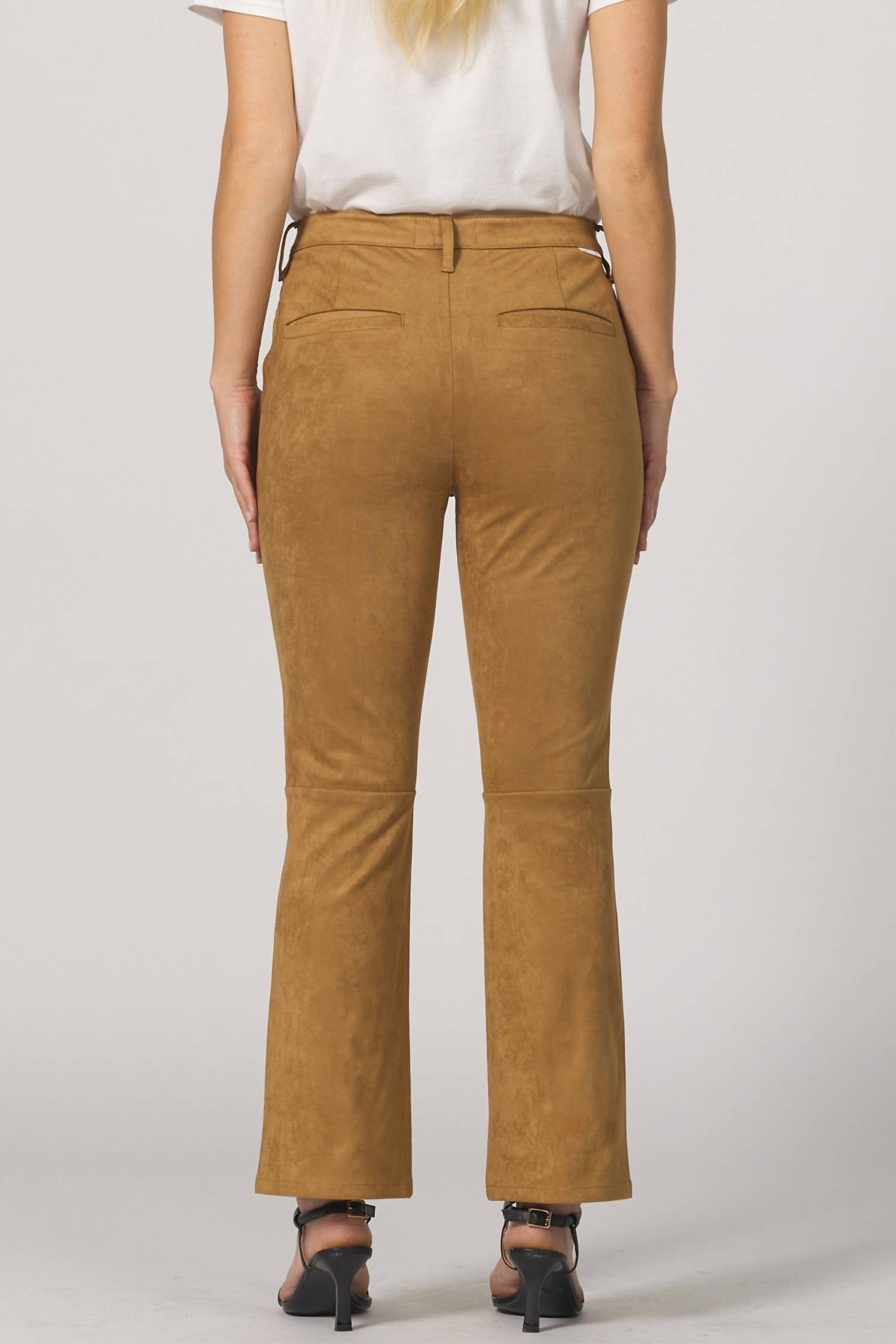 Stay on trend with these stylish boot cut pants that are fit to perfection. The perfect combination of comfort and fashion, you'll be grabbing for these all season long! Presenting the Jeanne Flare Pants by DEAR JOHN DENIM, tailored in a chic butterscotch hue for an eye-catching appearance. Constructed from a blend of 90% polyester and 10% spandex, these pants provide a comfortable yet flattering slim fit with a high-rise waist. With a sleek clean hem, they feature a flared leg style that transitions seamlessly from day to night. Closure: Button closure. Care: Dry clean only. Rise: 10.25", Inseam: 26.75". Ideal for spring holiday parties, especially fitting for Thanksgiving celebrations.