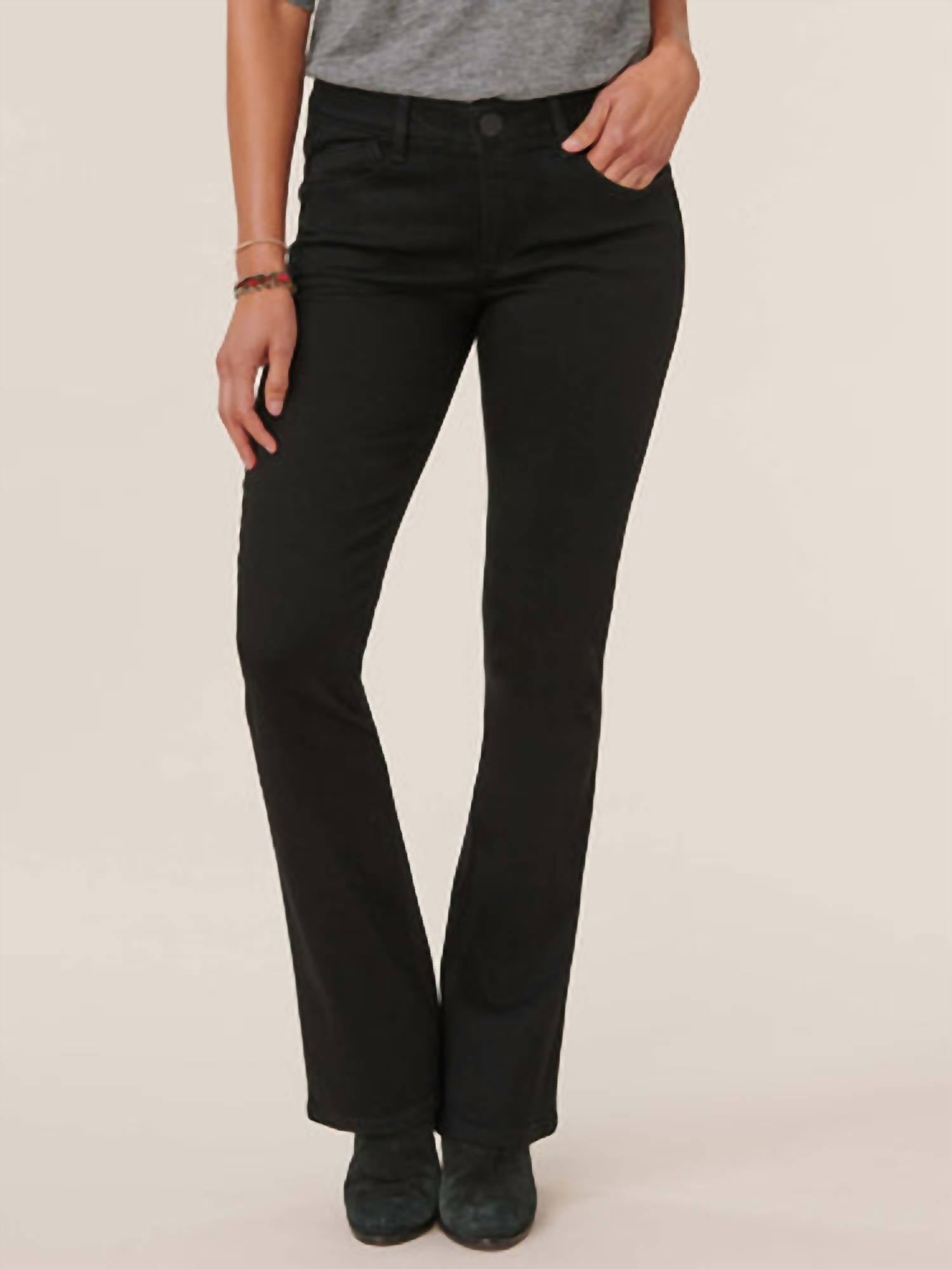 The trend report says boot-cut is in and that's exactly why we love this style. They are fit to perfection, flattering on any body type, and comfortable. They will be your go-to all season long. Presenting the Itty Bitty Bootcut Jeans by Democracy, a sophisticated choice for a sleek silhouette. These women's jeans feature a slim fit from hips to calves with a baby bootcut leg, enhanced with "Ab"solution® fit technology for a flattering effect. Constructed from a premium cotton blend of 60% cotton, 31% polyester, 7% rayon, and 2% spandex, they offer a supportive fit with a mid-rise waist and sweetheart-shaped back yoke. Closure: Button and zip fly, accompanied by classic five-pocket styling. Care: Machine wash cold inside out with like colors, tumble dry low, perfect for any dinner party in the fall season.