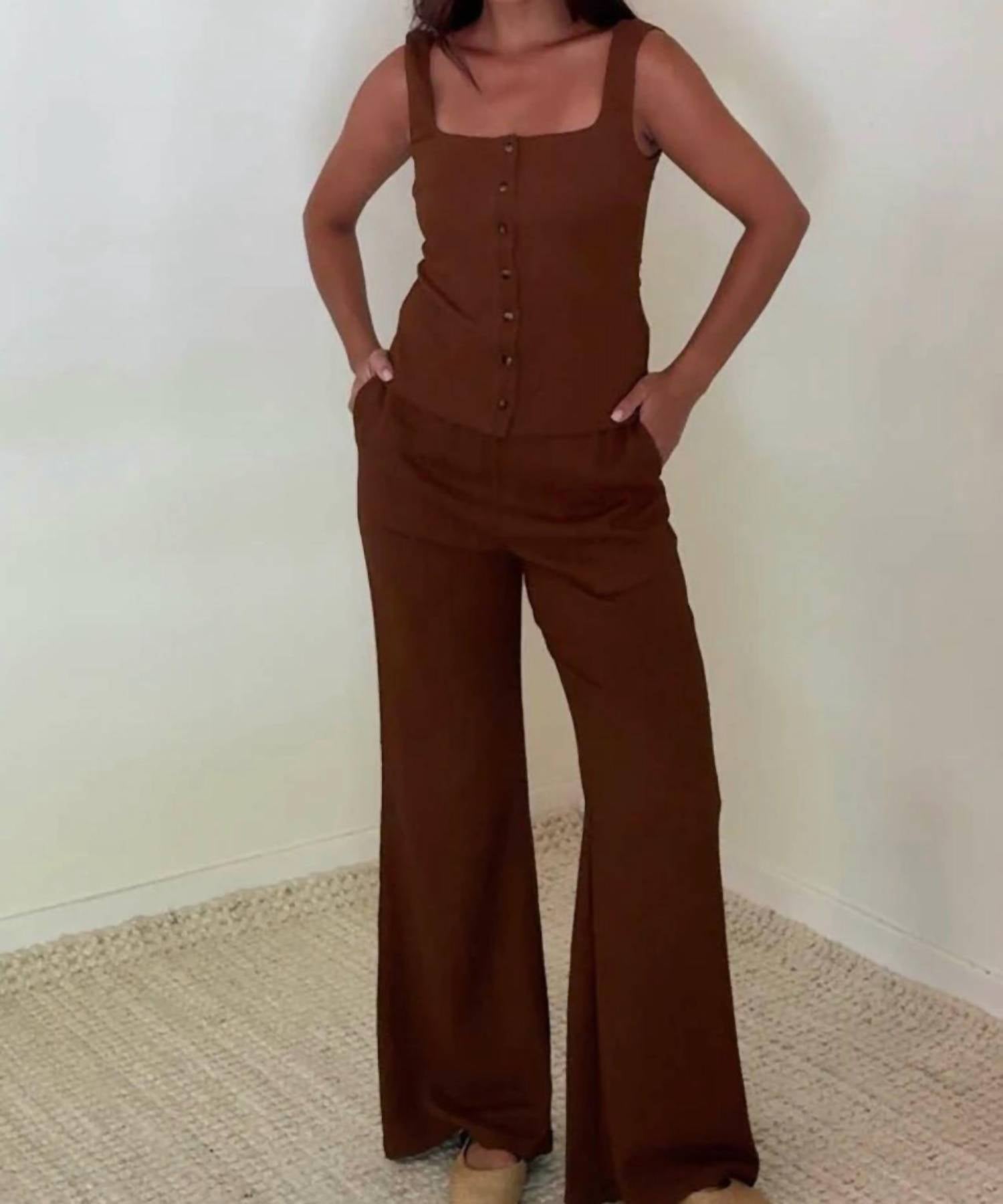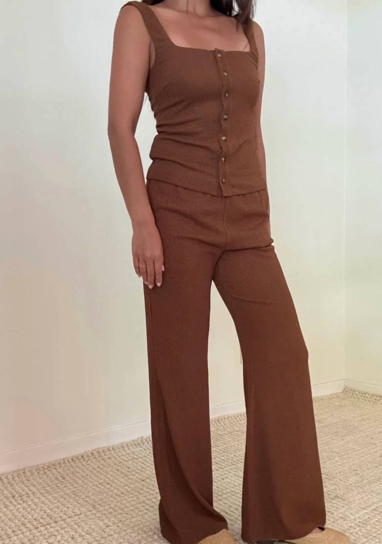 The trend report says boot-cut is in and that's exactly why we love this style. They are fit to perfection, flattering on any body type, and comfortable. They will be your go-to all season long. Elevate your spring wardrobe with The High Waist Flare Pant by Et Clet, presented in a rich Mocha hue. Featuring a high elastic waist and flared leg, this solid, pull-on pant offers both style and comfort. Composition: Self - 97% Polyester, 3% Spandex; Lining - 90% Polyester, 10% Spandex. Care: Hand wash recommended, machine wash available, do not bleach and iron. Model is 5'3" and wearing a size small.