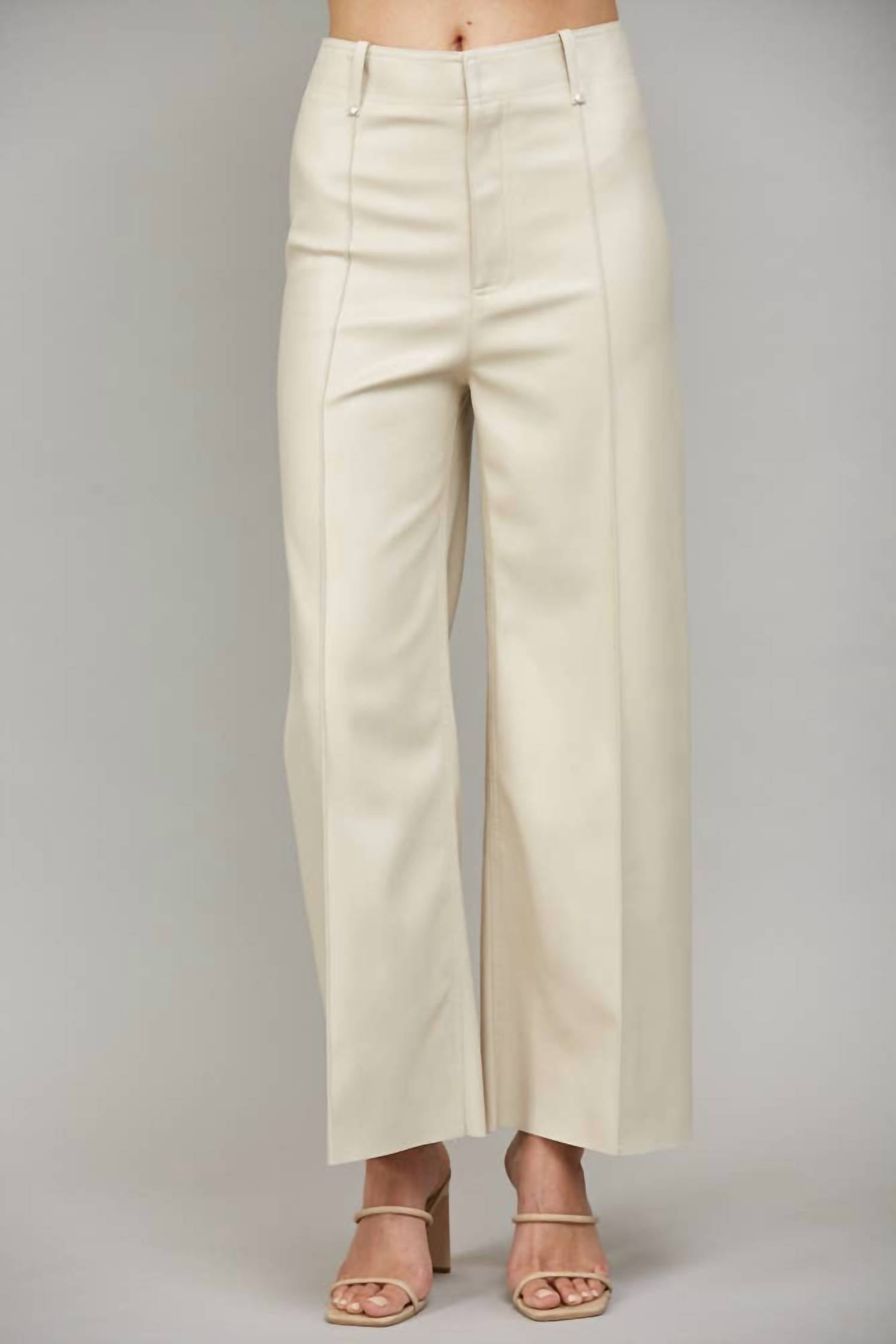 Stay on trend with these stylish boot cut pants that are fit to perfection. The perfect combination of comfort and fashion, you'll be grabbing for these all season long! Elevate your wardrobe with the Colette Faux Leather Tuck-detail Flare Pant by Fate, a chic choice for both day and night. Crafted from 55% PU and 45% polyester, these pants offer a soft, flexible feel with a polished finish. Featuring a classic fit, these solid ecru pants come with a mid-rise and a full-length, flared leg for a flattering silhouette. Closure is secured with a convenient zip, and they're easy to care for with machine wash instructions.
