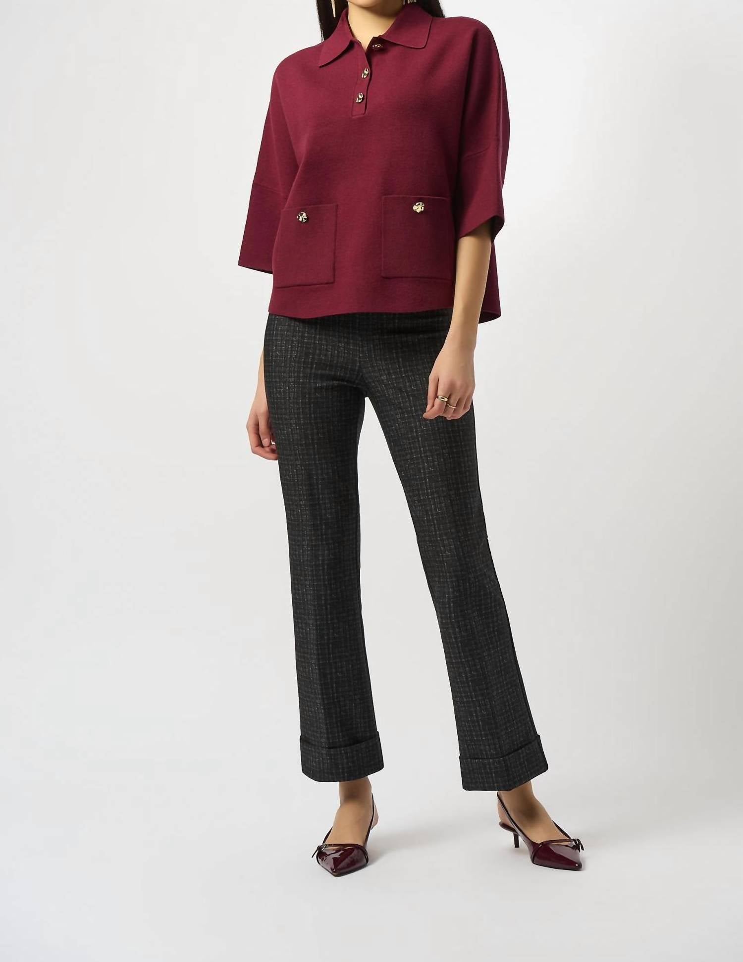 Joseph Ribkoff - Plaid Cuff Heavy Knit Pull-on Flare Pants
