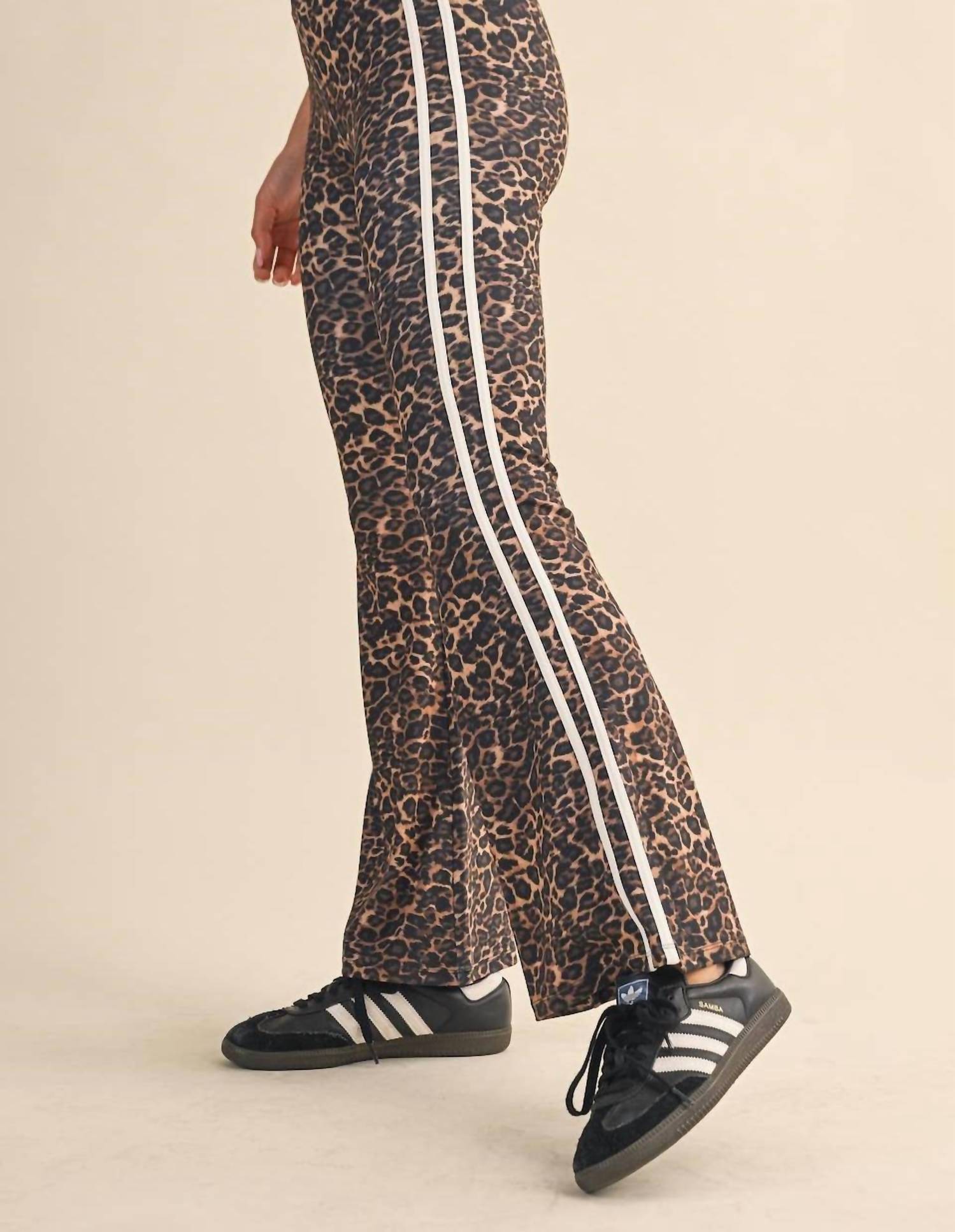 The trend report says boot-cut is in and that's exactly why we love this style. They are fit to perfection, flattering on any body type, and comfortable. They will be your go-to all season long. Introducing the Leopard Print High Waist Flare Pants by Kimberly C, perfect for making a statement at any dinner party. These athleisure pants feature a flared leg design in a bold animal print, complemented by a sleek side stripe for a sporty-chic look. Crafted from 82% polyester and 18% spandex, they ensure a sculpting high-rise fit and flexible movement. Closure type: Pull on. Care: Machine wash and lay flat to dry. Inseam lengths range from S: 30 5/7", M: 31 1/9", to L: 31 1/2".