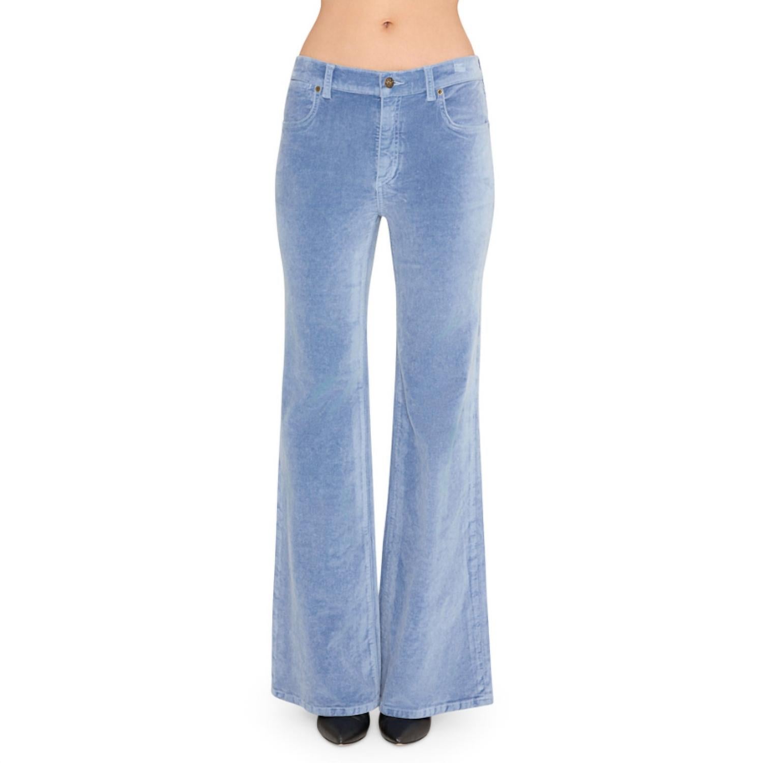 Slightly flared pants are all the rage right now and these are no exception. Pair these with your favorite tee for a more casual look, or with your favorite button-up blouse for an evening out. The Ruby Flare Leg Pants by KOBI HALPERIN, crafted in a striking Skyline hue, are designed for modern style and comfort. These full-length pants feature a high-rise waist and flared, wide-leg fit, complete with a zip fly and button closure. Made from a cotton blend of 67% Cotton, 31% Viscose, and 2% Elastane, they promise both flexibility and durability. With front scoop pockets and rear patch pockets, these imported pants perfectly blend function and fashion for your next travel or streetwear ensemble.