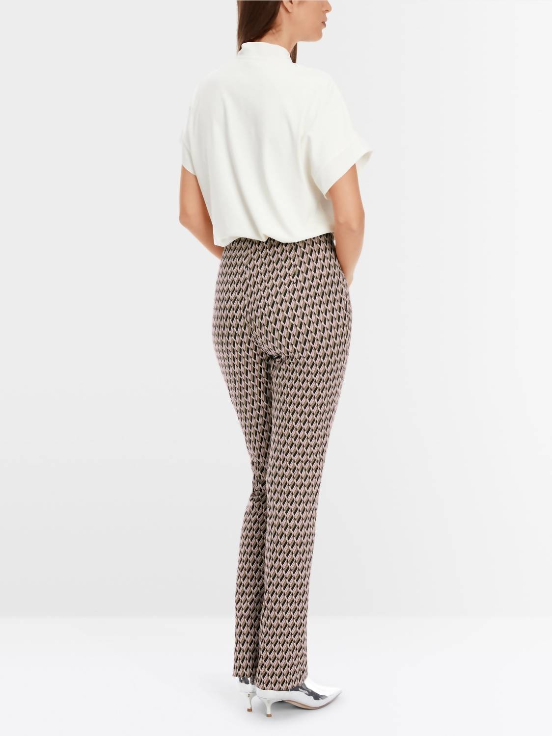 Slightly flared pants are all the rage right now and these are no exception. Pair these with your favorite tee for a more casual look, or with your favorite button-up blouse for an evening out. Introducing the Frederica Knitted Pull-on Pants by Marc Cain, crafted in a seventies-inspired jacquard knit for a trendy yet comfortable look. These warm rose trousers feature a regular fit with a slightly flared bootcut leg and a mid-rise waist with a 32" inseam. Made of 66% polyester, 26% polyamide, and 8% elastane, the pants boast a pull-on closure and an internal elastic waistband for superior comfort. Care instructions include machine wash. Model is 179cm tall and wearing size N3/UK 12.