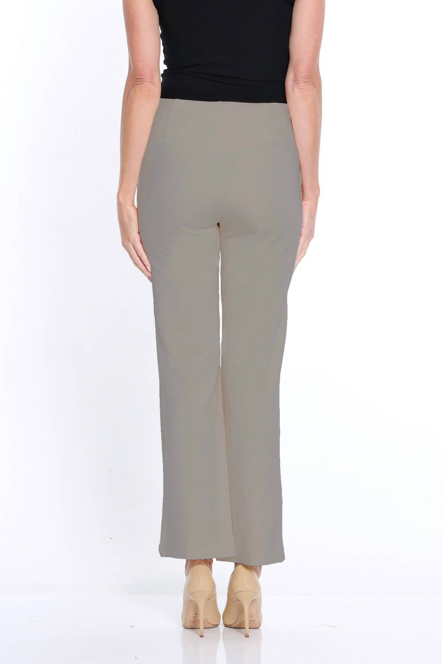 Stay on trend with these stylish boot cut pants that are fit to perfection. The perfect combination of comfort and fashion, you'll be grabbing for these all season long! Introducing the Ponte Pin Tuck Flare Pants by Multiples, an elegant choice for sophisticated style in a stone color. Crafted from a nylon blend, these pants feature a pull-on style for a seamless fit, complete with a smooth, waistband-free design. The flared leg silhouette is accentuated with a flattering 29" inseam and an 18" leg opening, enhanced by a tailored pintuck front detail. Composition: 67% rayon, 28% nylon, 5% elastane. Care instructions: Dry clean only. Perfect for a dinner party or Thanksgiving gathering, these pants offer workwear versatility with polished appeal.