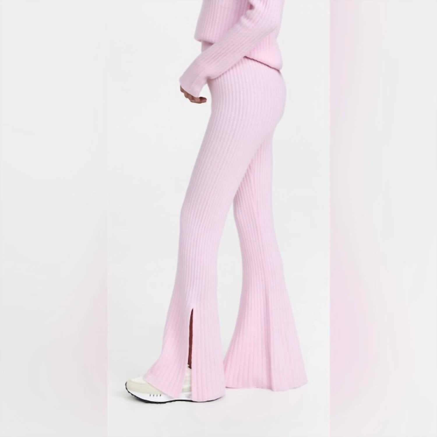 Stay on trend with these stylish boot cut pants that are fit to perfection. The perfect combination of comfort and fashion, you'll be grabbing for these all season long! Experience the perfect blend of comfort and style with the Women's Ribbed Knitted Flare Pants by SOMETHING NAVY. Designed in a charming pink hue, these high-rise pants feature a textured pattern and a flared leg style that adds a fashionable twist to any ensemble. The pull-on closure ensures a snug fit, making them ideal for spring holiday parties. Please note, there are no pockets, enhancing their sleek appearance.