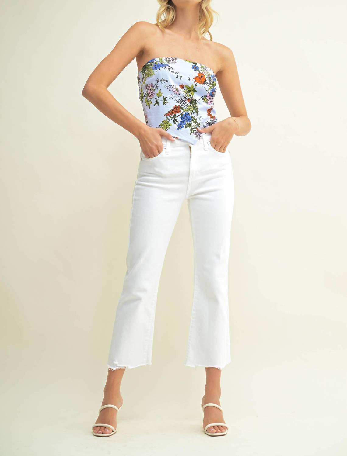 A flattering silhouette that's suprisingly versatile. Introducing the Vana Vintage Cropped Flare Jeans by JUST BLACK DENIM, a minimalist wardrobe staple ideal for all your spring occasions. With a flattering 10.5" rise and a chic 27" inseam, these off-white jeans feature a solid pattern, flared leg, and an 8'' opening. Designed with functional pockets and a convenient zip closure, they're crafted in a light-wash denim for a timeless look. Easy to care for, simply machine wash and line dry to maintain their quality.