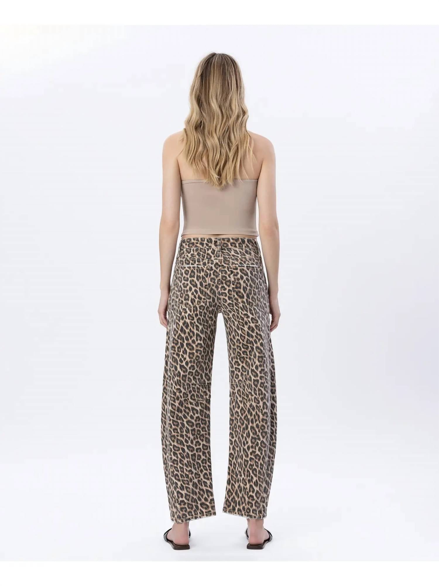 A flattering silhouette that's suprisingly versatile. Elevate your wardrobe with the Meow High-rise Barrel Jeans by Flying Monkey, designed to make a bold statement with their striking leopard print. Crafted from denim, these jeans feature a high-rise waist and a bootcut leg for a flattering silhouette and regular fit. These stylish jeans are complete with pockets and a convenient zip closure. Care instructions include machine wash and tumble dry, making them ideal for effortless maintenance.