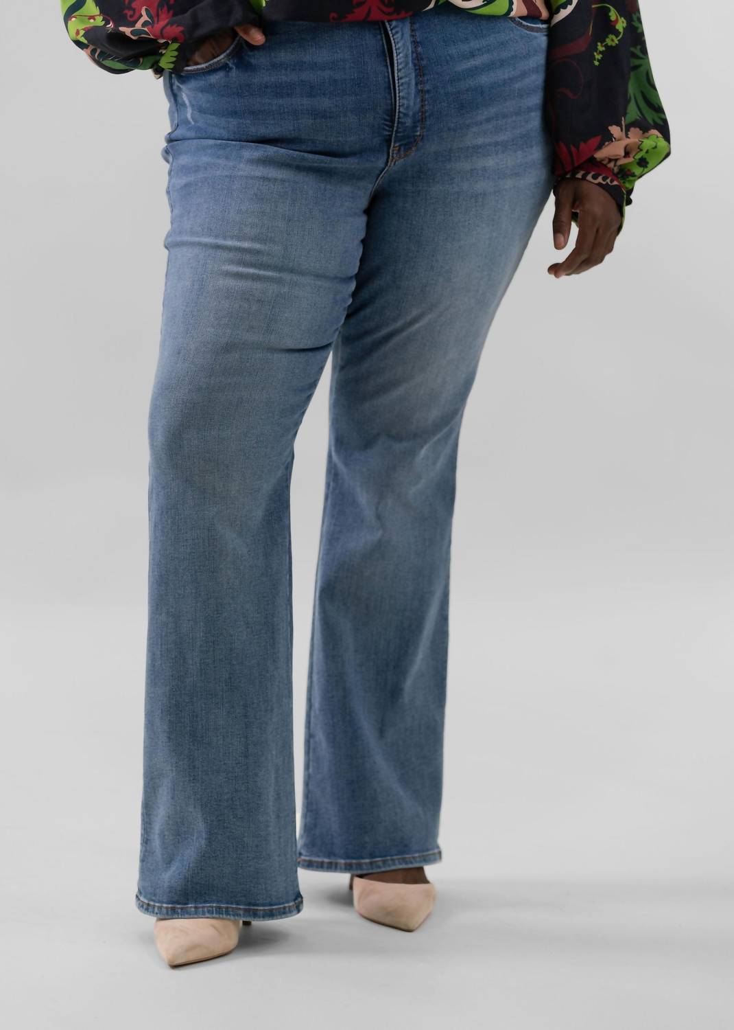 A flattering silhouette that's suprisingly versatile. Elevate your wardrobe with the Ana High Rise Flare Jeans by KUT FROM THE KLOTH, perfect for adding a retro edge to your look. Expertly crafted from 94% Cotton, 5% Polyester, 1% Spandex, these jeans feature a waist-defining high rise of 10.25 inches and a chic flared leg with a 33-inch inseam, embodying both comfort and style. The solid denim medium wash and zip closure add classic appeal to this streetwear staple. Designed for easy care, simply machine wash and tumble dry to maintain their pristine condition.