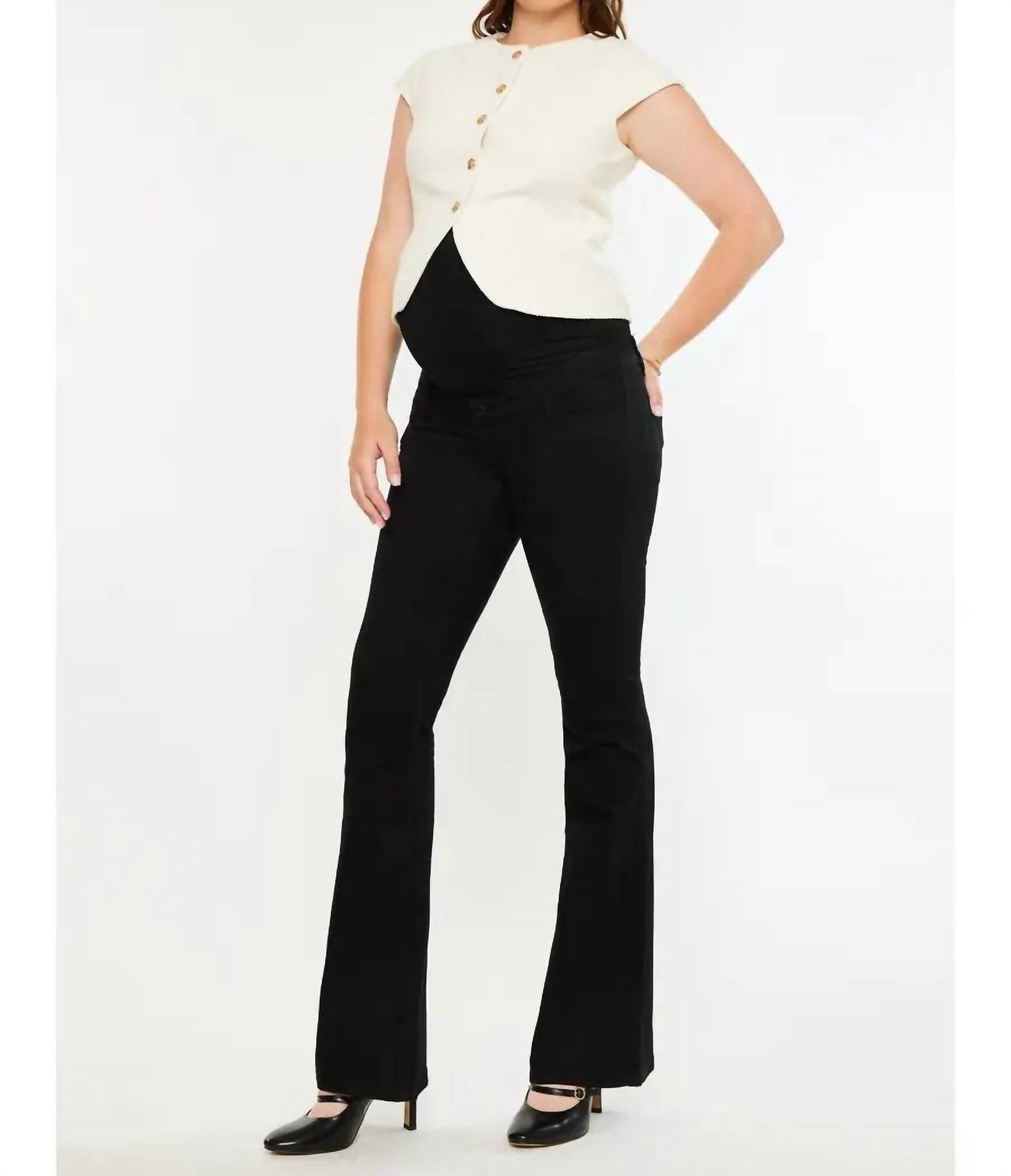 A flattering silhouette that's suprisingly versatile. The Diana Maternity Flare Jeans by KanCan are crafted to adapt to your changing shape, featuring high-rise elastic panels for comfort during and after pregnancy. Made from a cotton blend with 66.5% Cotton, 31.3% Rayon, and 2.2% Spandex, these jeans offer a classic fit with a flared leg style. Designed in black with a solid pattern, they come with regular front and back pockets, a single button front closure, and a zip fly. Care instructions include hand washing and laying flat to dry, ensuring ease of maintenance. These jeans have a front rise of 5 inches and a 33.5-inch inseam in size 25.