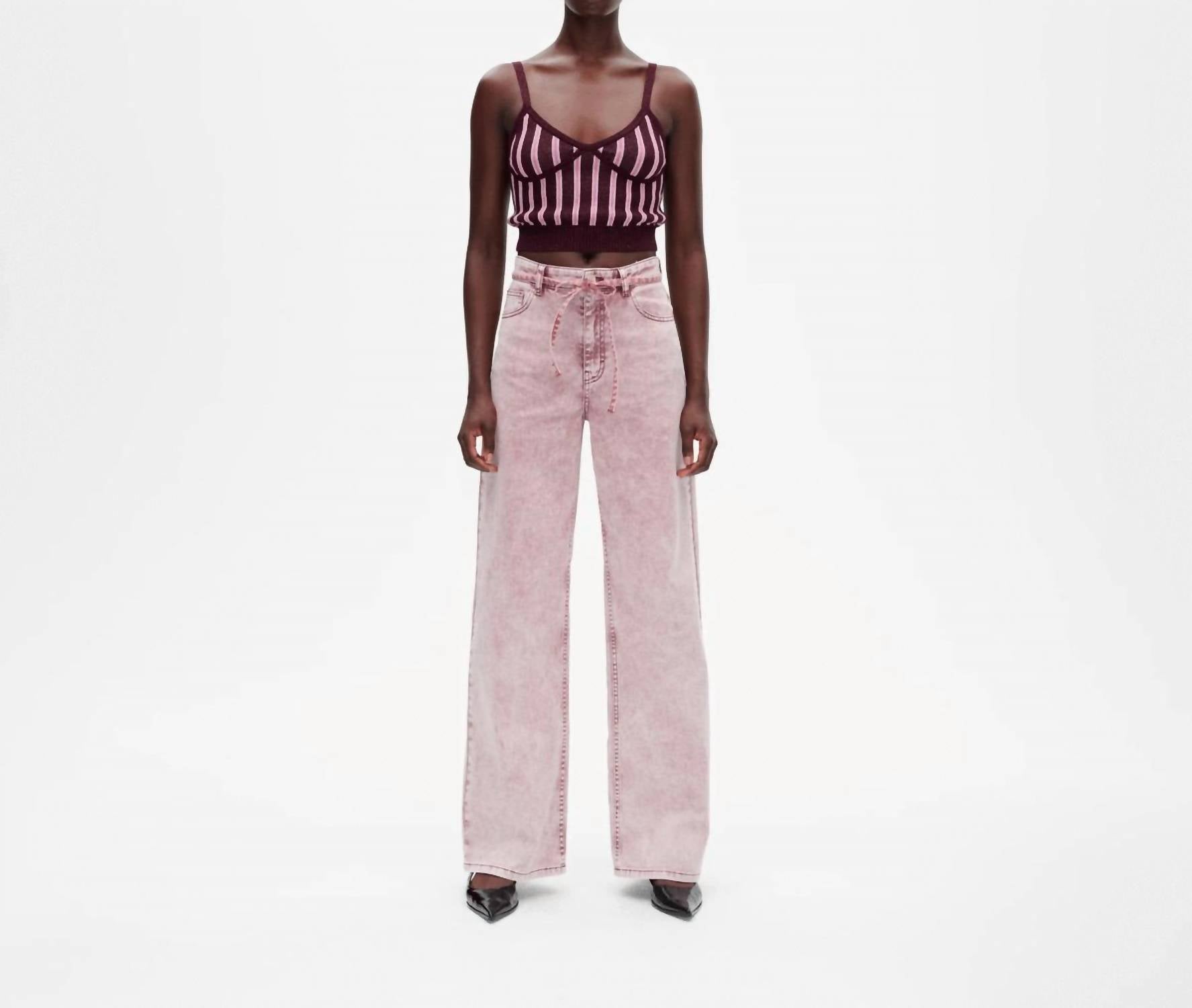 Just as cute as they are comfortable. Introducing the Ninie Jean by BAUM UND PFERDGARTEN, crafted in a stylish washed sassafras hue for modern flair. These wide-leg jeans feature a high-rise fit and thoughtful 5-pocket design, accommodating versatile styling with belt loops and a removable tie belt. Made from a luxurious blend of 97% Organic Cotton and 3% Elasthane, the jeans boast a button closure with zip fly for a secure fit. Machine wash.