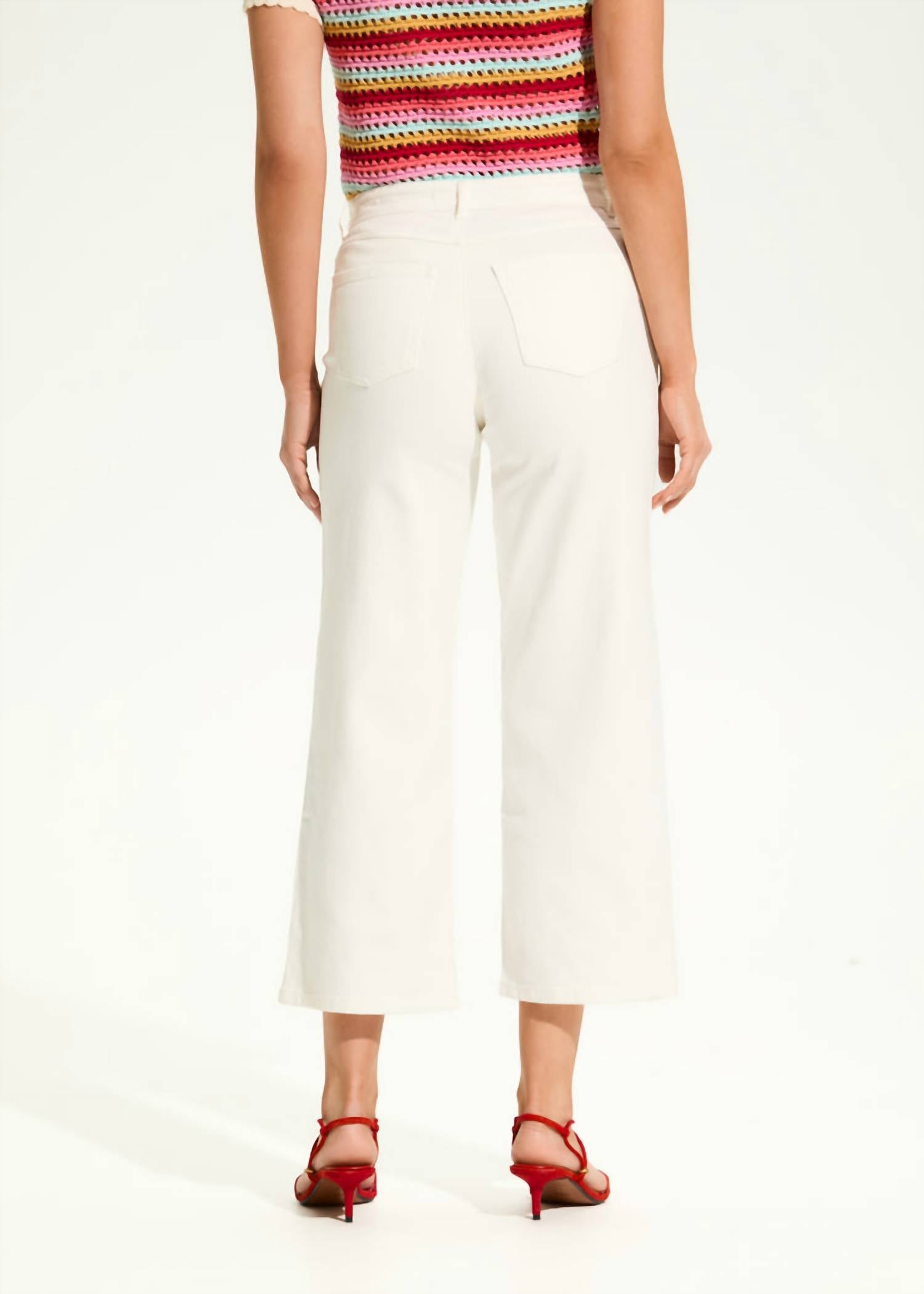 A flattering silhouette that's suprisingly versatile. Introducing the Christina Wide Crop by FDJ, a chic and minimalist piece in elegant ivory. These pants offer a relaxed, textured look with a mid-rise and wide leg shape, complete with a 26" inseam and convenient pockets. Expertly crafted from a cotton blend (92% Cotton, 7% Polyester, 1% Elastane) for comfort and style. Closure is secured with a button, and care is simple: machine wash cold separately, inside out, and line dry. Ideal for fall occasions like church or Easter gatherings.