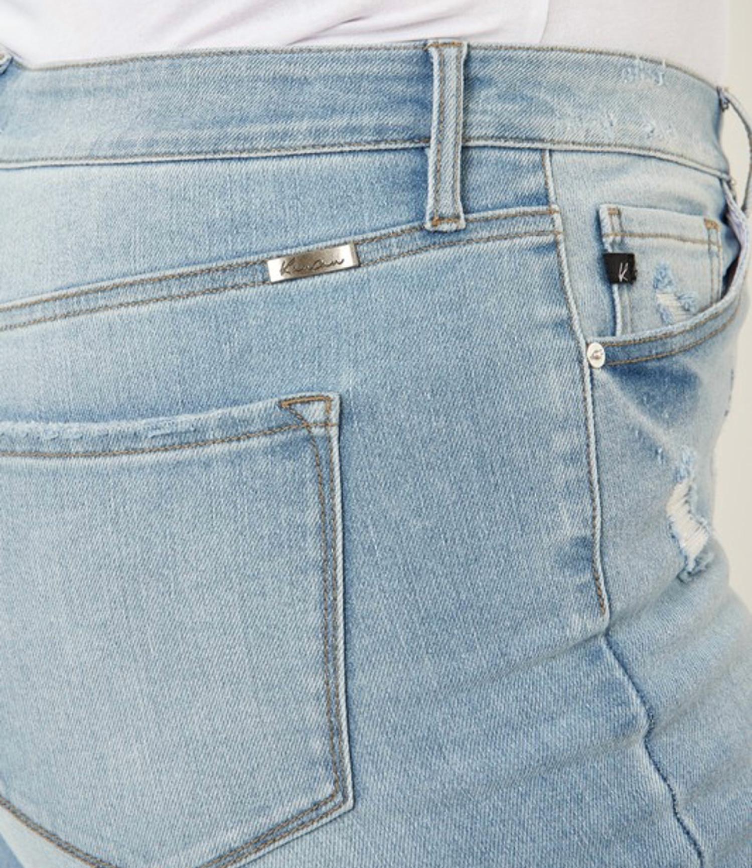Just as cute as they are comfortable. Introducing the KanCan Odie High Rise Flare Jeans, a stylish choice in a light wash perfect for any fall occasion. Made from a comfortable cotton blend comprising 73% cotton, 25.6% polyester, and 1.7% spandex, these jeans sit high on the waist. The flared leg design with a 12.5" rise and 33.5" inseam offers a flattering fit, featuring a classic five-pocket style and a button closure with a zip-fly. Comfy stretch and buttery softness ensure ease of movement while retaining the jeans' chic shape.