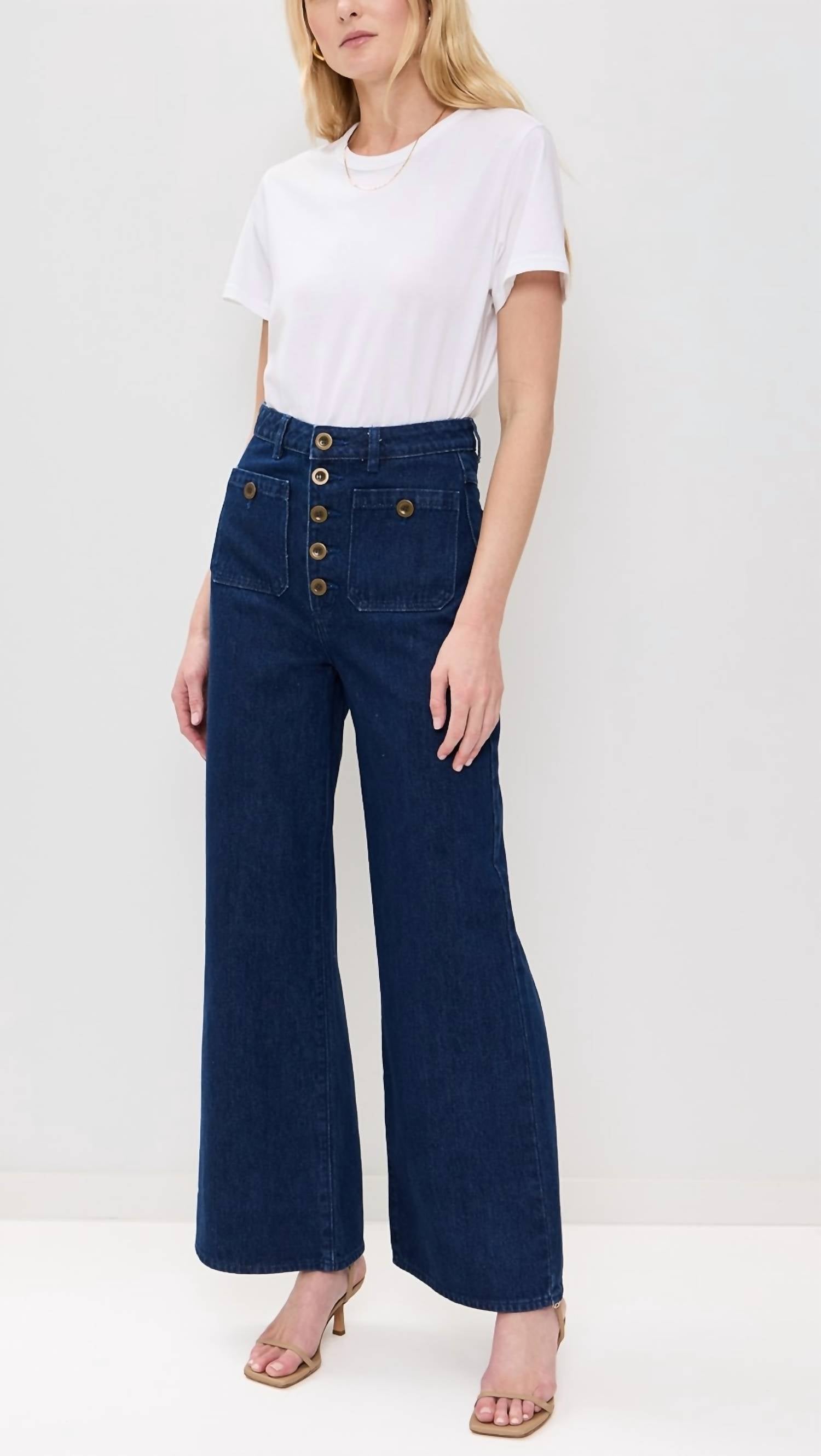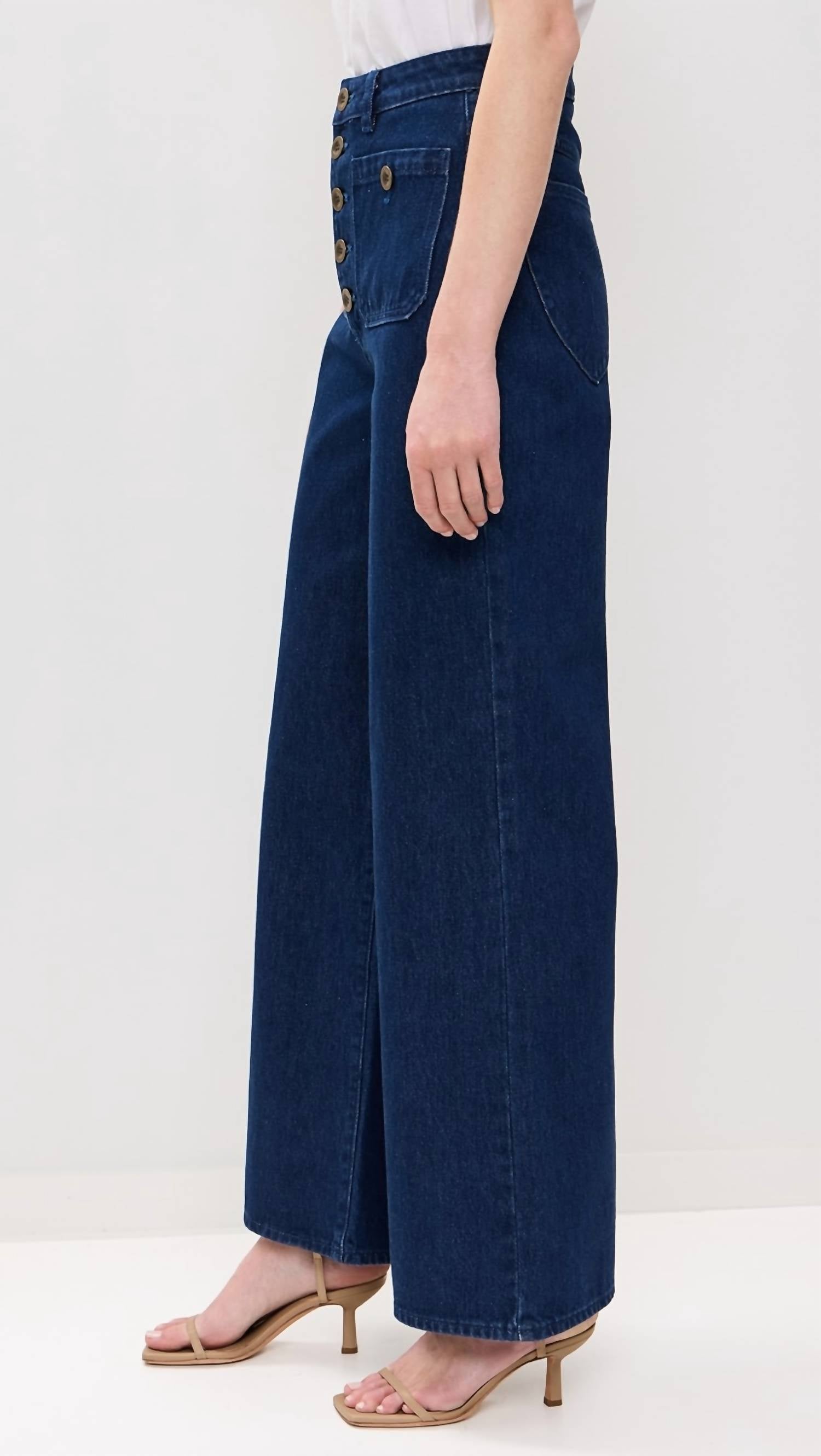 Pair these wide leg jeans with mules, slides or your favorite strappy sandals. Elevate your denim collection with the Studio Flare Lou Jeans by ROLLA'S in Dark Vintage Blue, tailored for a peachy silhouette. Crafted from heavyweight, non-stretch 100% cotton denim, these jeans feature a super high rise with a 12.5-inch rise and a flared, relaxed-wide leg style. Designed with functional front patch pockets and an exposed button fly closure, they offer a striking look with a leg opening of 24.5 inches and inseam of 31.5 inches. Made in China, they are easy to maintain with a cold wash.