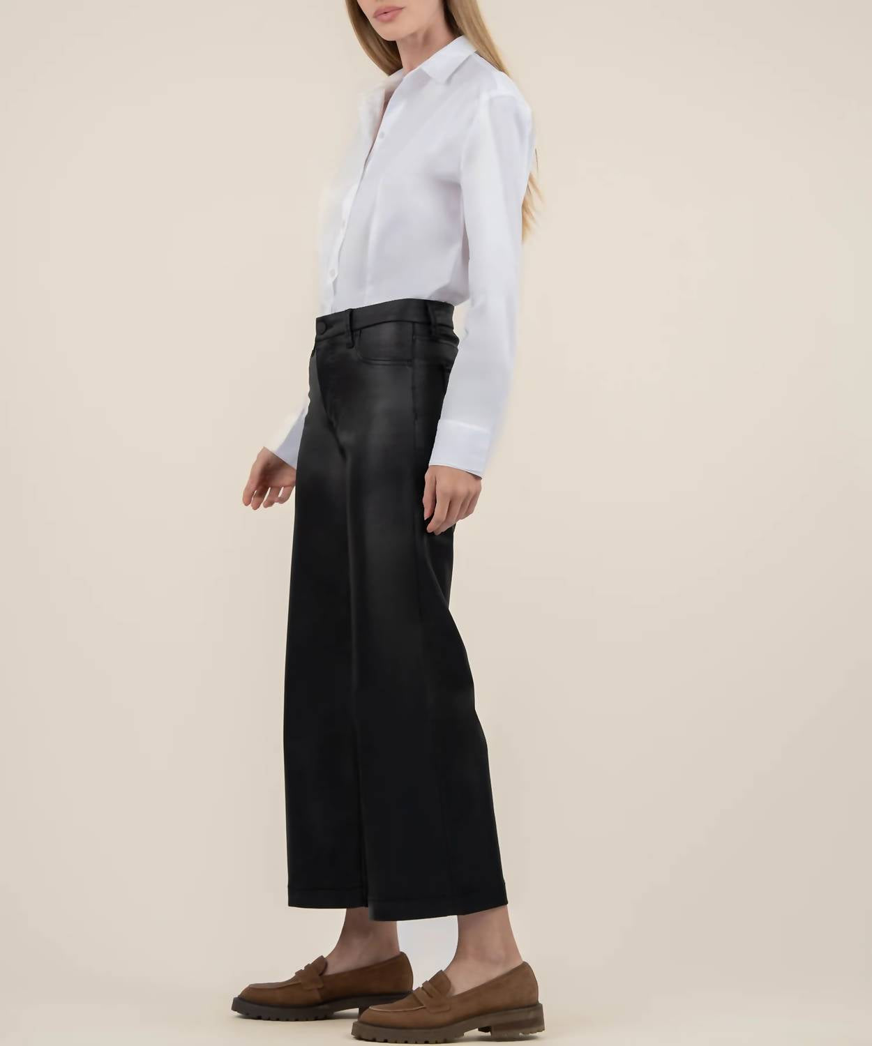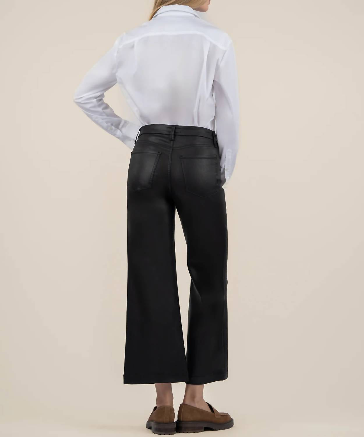 Stylish and sleek black jeans boast a comfortable relaxed fit with a high rise of 10.5 inches. Crafted from a modal blend for a soft yet durable texture. Inseam of 27.5 inches and a generous leg opening of 23 inches. Complete with Fab Ab front pockets to shape and smooth. Button closure ensures a secure fit.