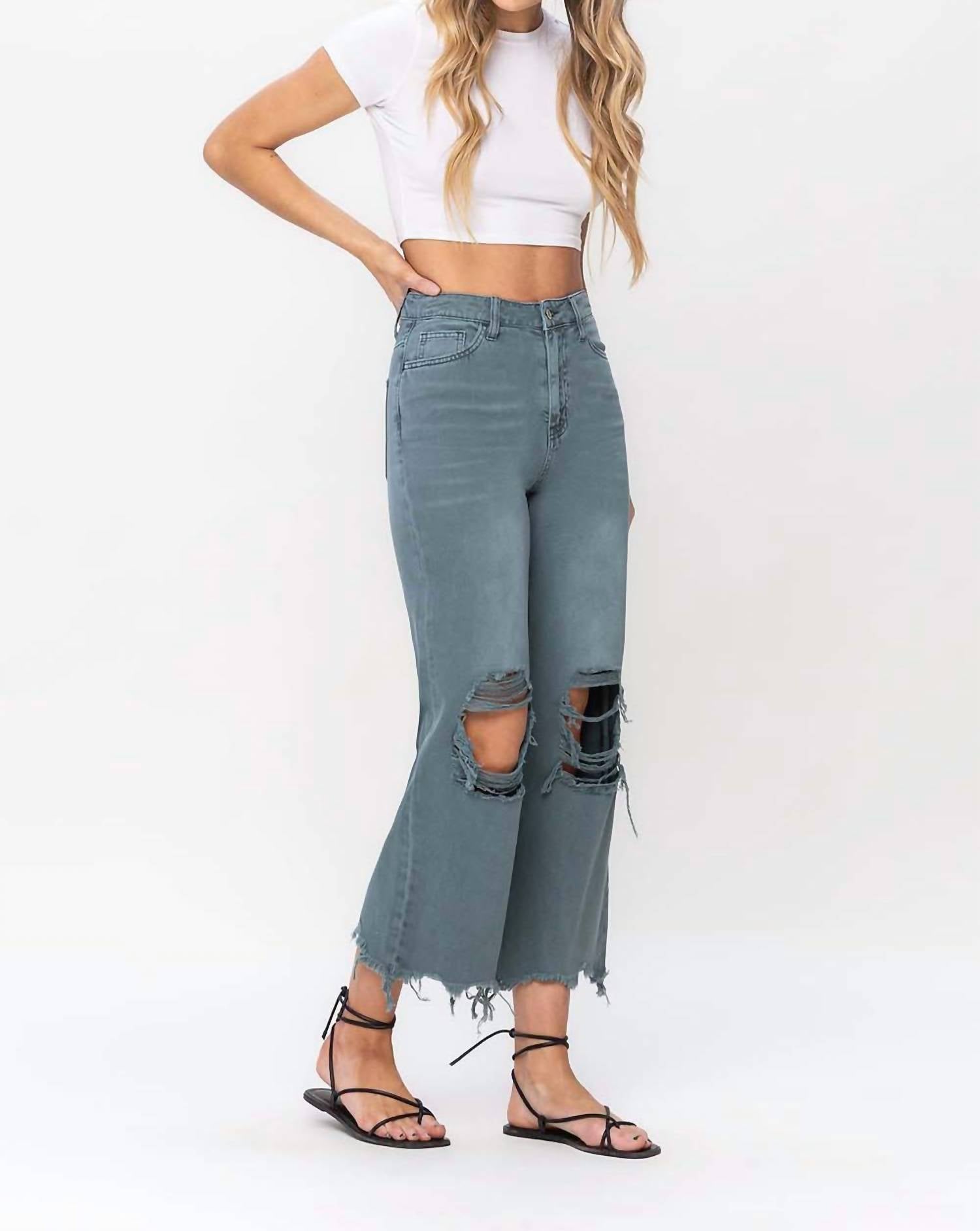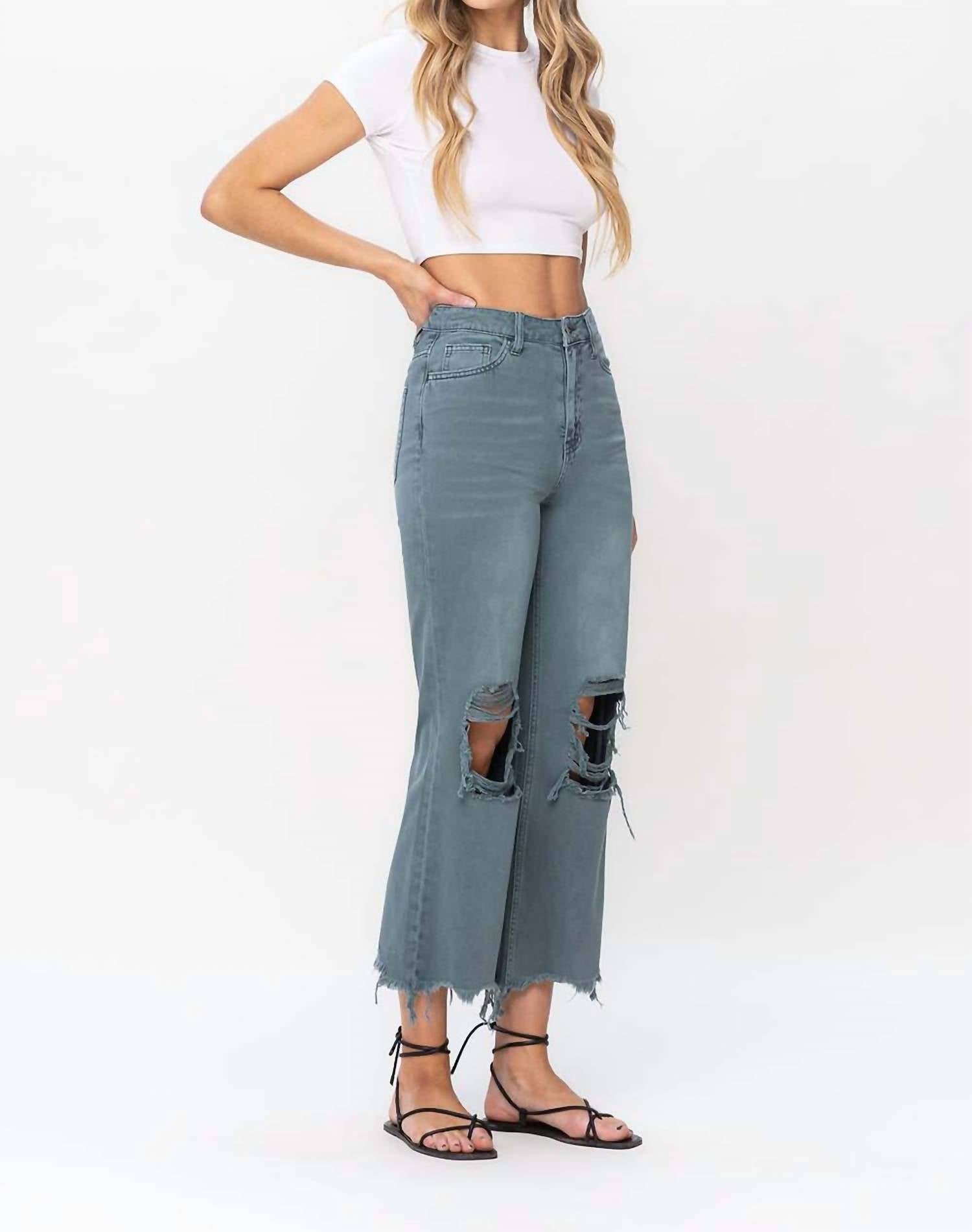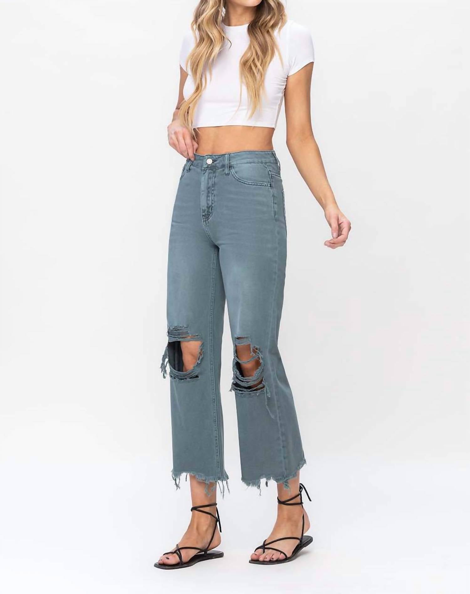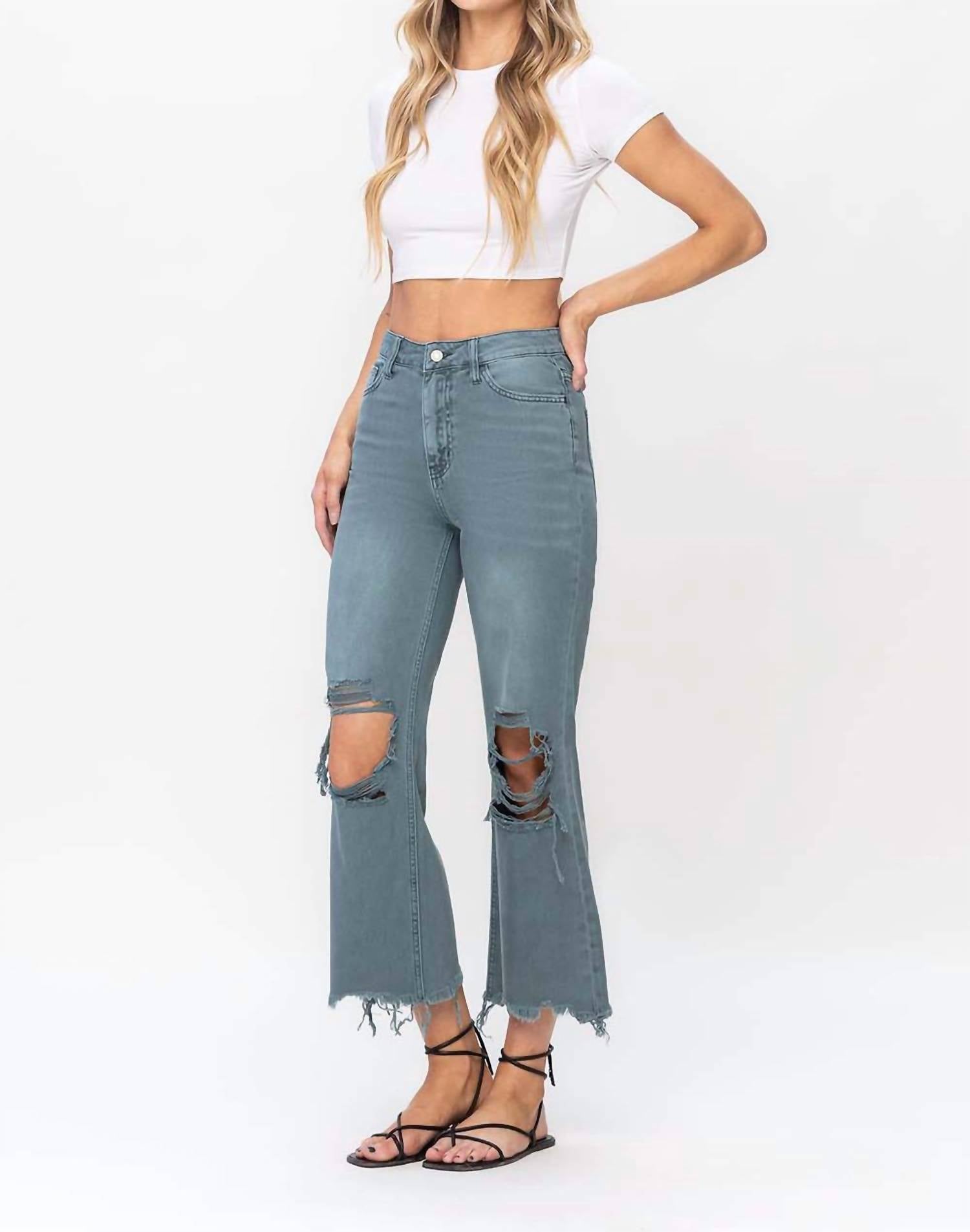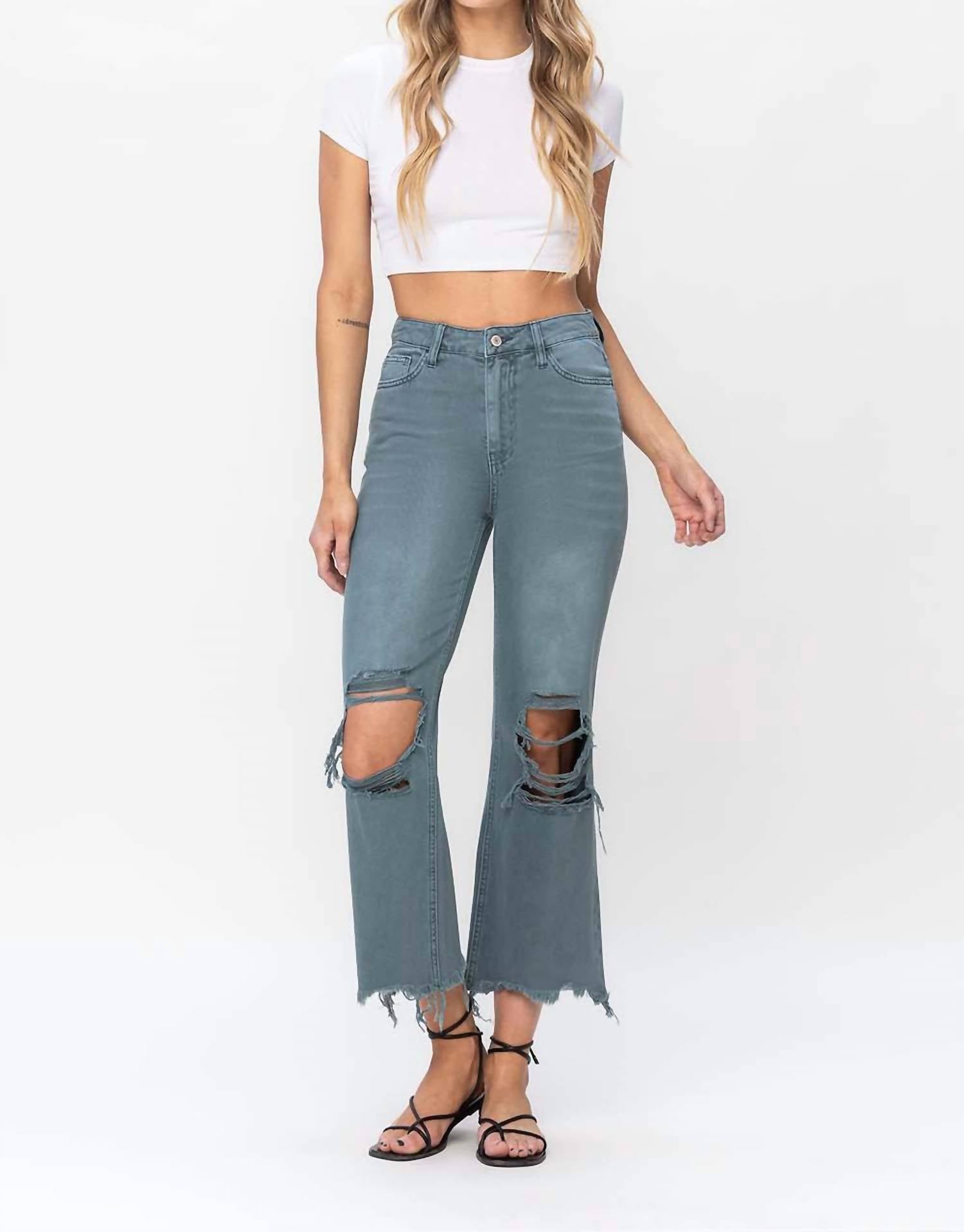 Vervet By Flying Monkey - 90's Vintage Super High Rise Crop Deconstructed Flare Jeans