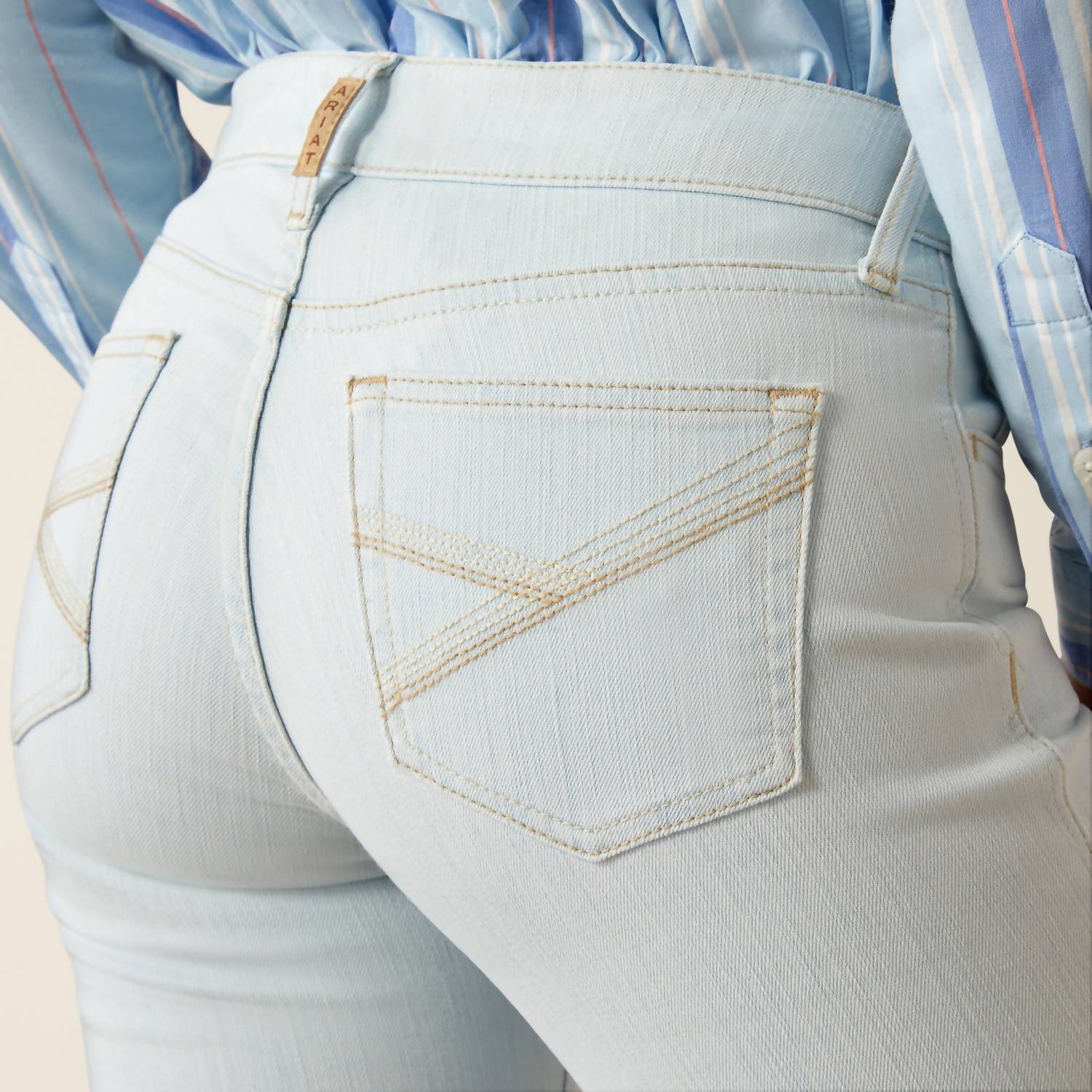 Just as cute as they are comfortable. Introducing the Jordyn Trouser Jeans by Ariat, a stylish blend of vintage and Western flair. These wide-leg, ultra-high rise jeans in a light wash feature a 12" rise and a relaxed fit from the high thigh, extending to a 25 ½" leg opening. Crafted from a cotton blend, they consist of 82% Cotton, 17% Repreve® Recycled Polyester, and 1% Lycra® Spandex. Closure: Button closure. Care: Machine wash. These jeans come with functional pockets to complete your look with both style and practicality.