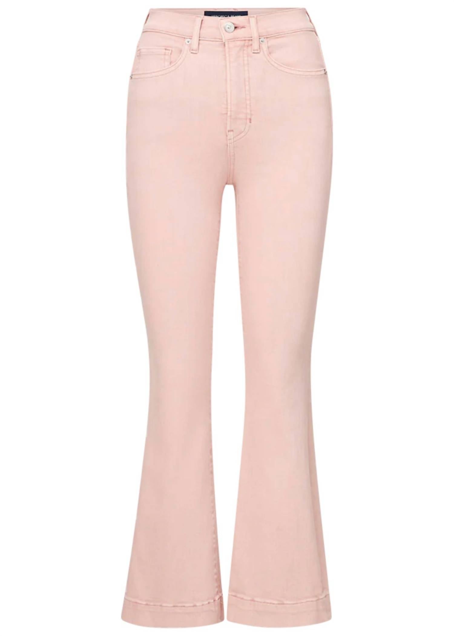 Just as cute as they are comfortable. Introducing the Carson High Rise Ankle Flare Jeans by Veronica Beard, crafted from a premium cotton blend in the unique Stoned Pink Shell color. Made in the USA from super-stretch Japanese denim, these jeans feature a flattering high-rise with an 11" rise and a 28" inseam, alongside a slimming fit through the hips and thighs that flows into a slightly flared 19" leg opening. Complete with a zip closure, these jeans offer functional pockets and a solid pattern for versatile styling. To care for this piece, turn it inside out and machine wash cold, then line dry. Model is 5'10" and wears a size 26.