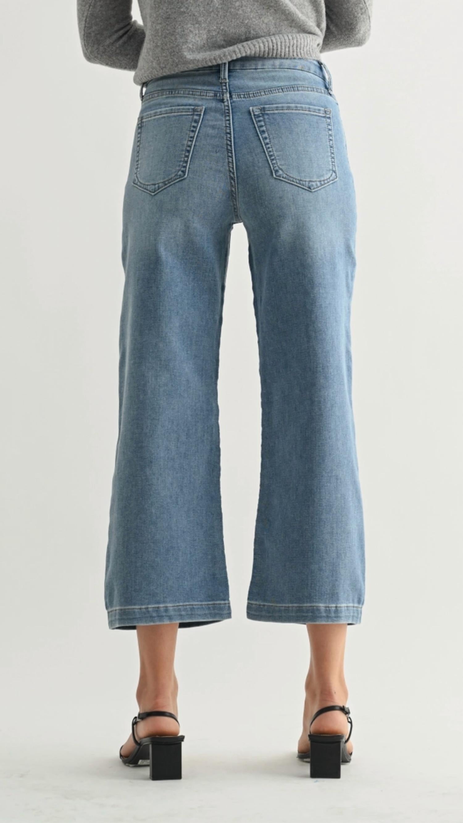 Just as cute as they are comfortable. Embrace effortless style with the Mid Rise Cropped Wide Sweat Jean by JBD, featured in a chic Medium Wash. This relaxed fit design includes a wide leg style with a 10.5-inch rise and a 27-inch inseam. Made with a blend of 82% cotton, 17% polyester, and 1% spandex, these jeans offer comfort and durability. Details include a convenient button closure and functional pockets, making it a minimalist's dream for any holiday party.