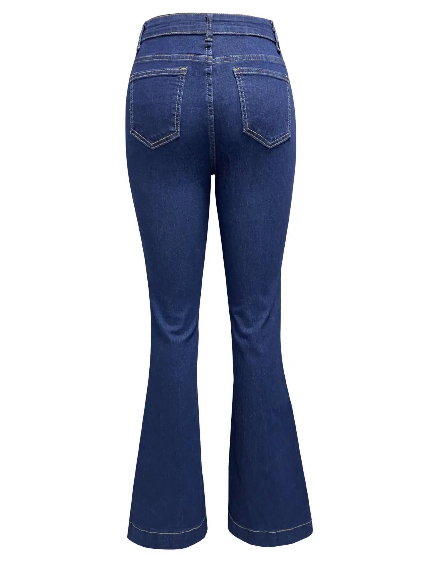 Pair these wide leg jeans with mules, slides or your favorite strappy sandals. The Jetta High Waisted Button Down Jeans by Wholesalesir are a stylish addition to any wardrobe. Made from 100% polyester, these jeans offer a slim fit with a flattering flared leg, perfect for a 90s fashion resurgence. With a high-rise design and a 40-inch garment length, they feature a button closure for a secure fit. Experience all-day comfort in this dark denim, solid-patterned piece, ideal for dinner parties or casual outings. Care is simple via machine washing.