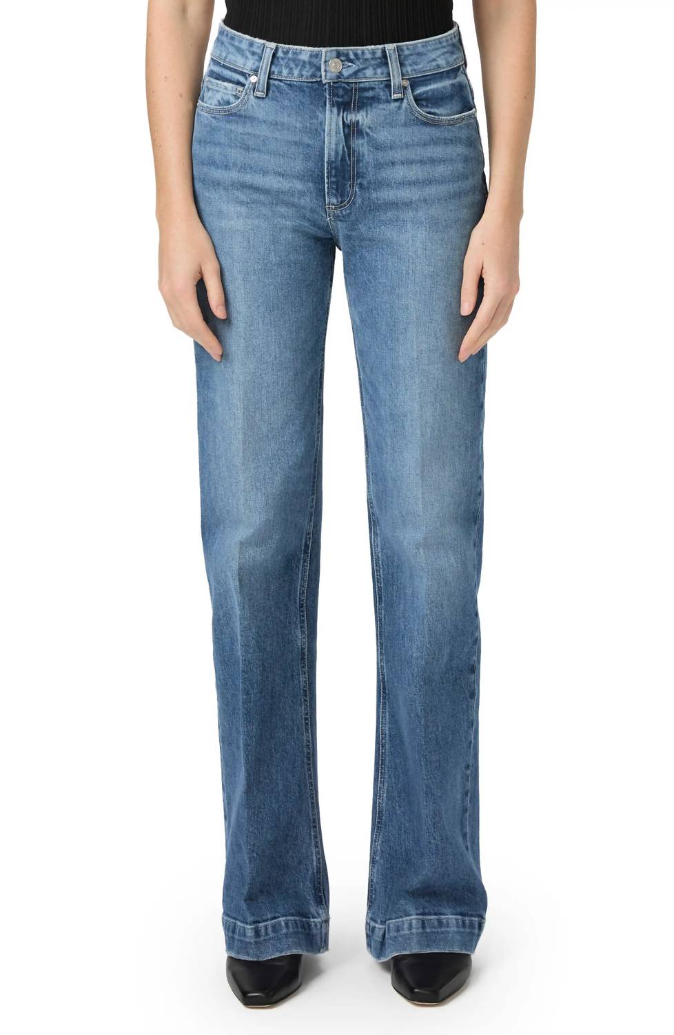 Just as cute as they are comfortable. Discover the Sasha Wide Leg Jeans by Paige, a stylish choice for any occasion. Crafted with a 99% cotton and 1% polyurethane blend, these denim jeans provide a comfortable, high-rise fit with a relaxed, wide leg silhouette. Featuring a solid pattern and convenient pockets, these jeans are both practical and chic. Closure: Button closure. Care: Machine wash, line dry. Enjoy a light wash perfect for adding a touch of elegance to your spring wardrobe. With a 32-inch inseam and 15.5-inch rise, these jeans are tailored for a flattering fit.