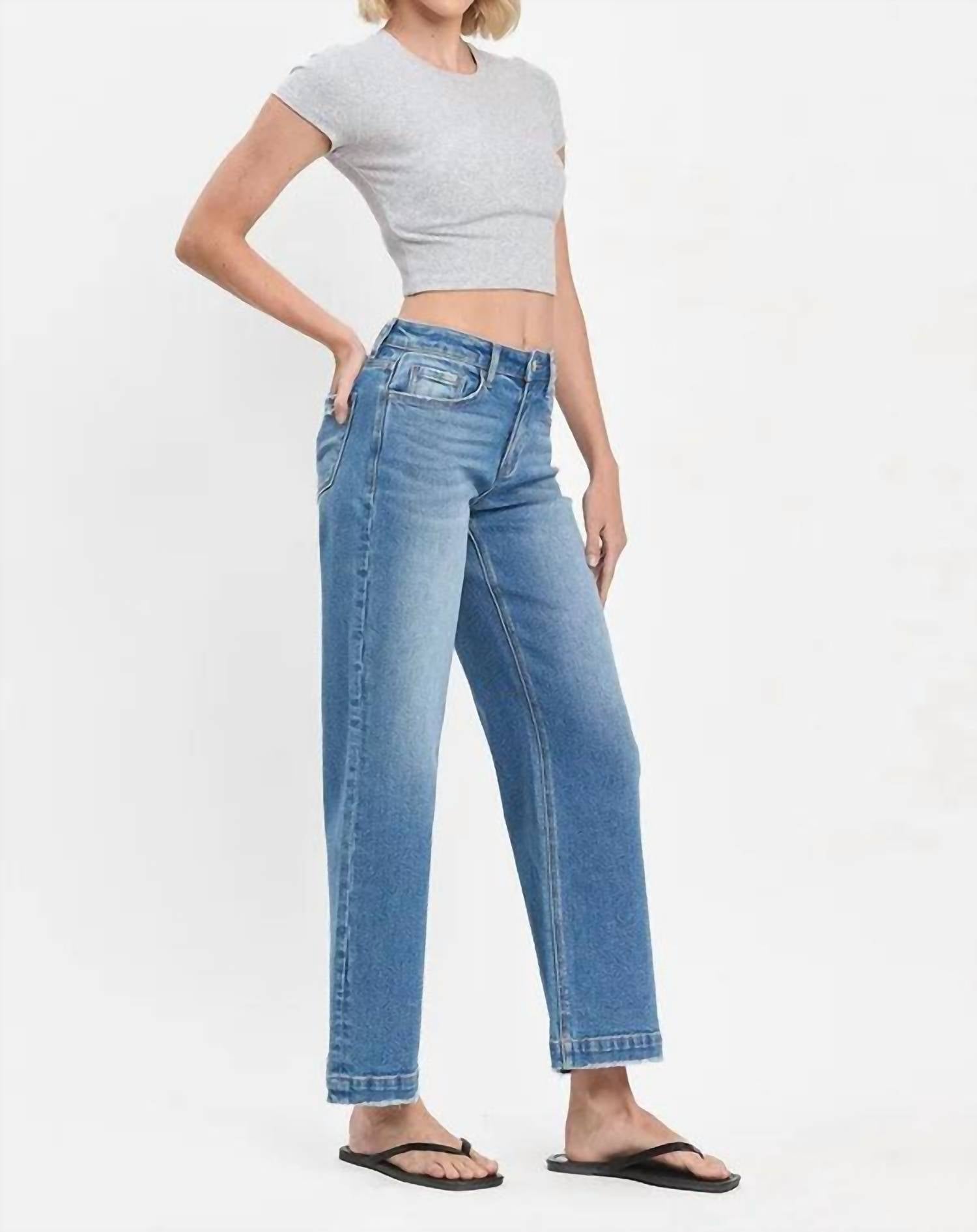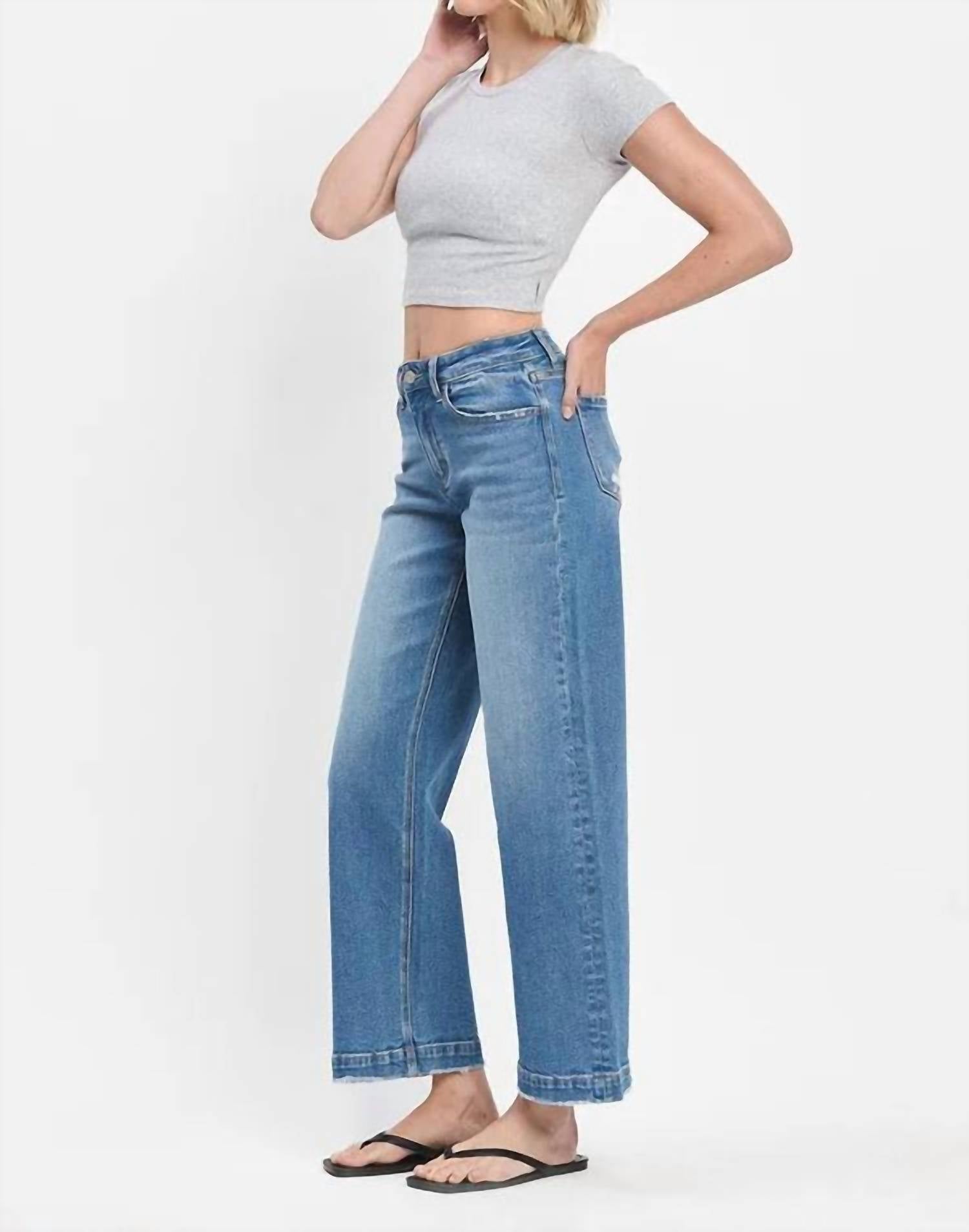 Just as cute as they are comfortable. Elevate your denim collection with the High Rise Trouser Wide Jeans by LOVERVET, presented in a chic medium wash perfect for a 90s fashion vibe. These jeans feature a relaxed fit with wide legs and a high-rise waist, complete with a button closure for comfortably stylish wear. Crafted from 99% cotton and 1% spandex, they offer both comfort and flexibility, with dimensions F. Rise: 10", Inseam: 29.5", Leg Opening: 21". Designed for convenience, they include pockets and are machine washable with a tumble dry option, making them ideal for travel and New Year's Eve outings.