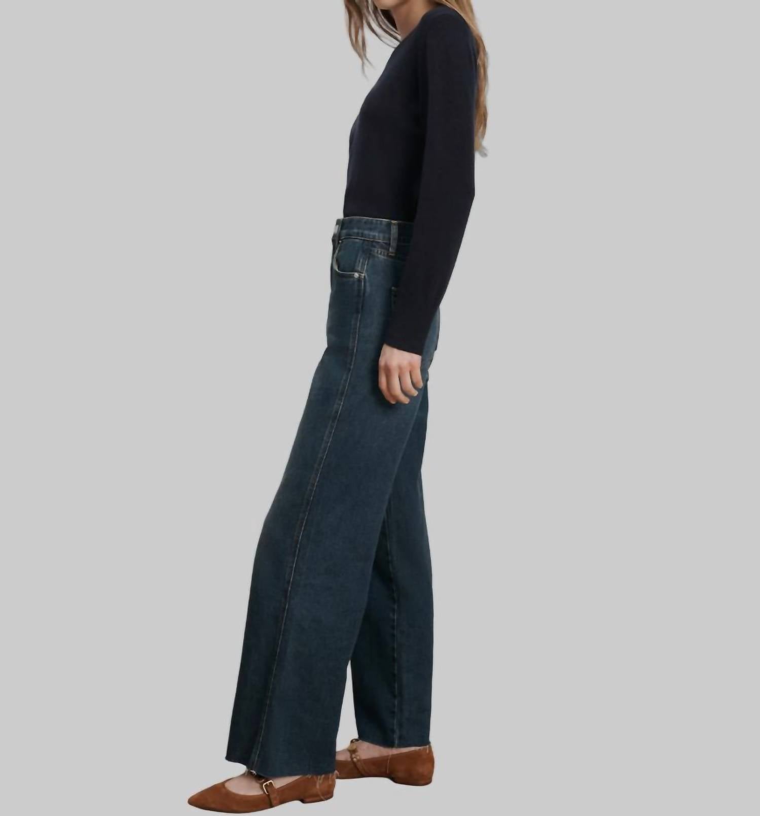 Pair these wide leg jeans with mules, slides or your favorite strappy sandals. Discover the Taylor High Rise Wide Leg Jean by Veronica Beard, a perfect blend of classic style and modern comfort. Crafted in Rebel Moon, this pair is a standout with its luxurious composition of 72% cotton, 21% lyocell, and 7% silk denim. Designed with a raw hem that allows for customized length, these jeans also feature a practical zip closure. Made in LA, they demand minimal care—simply wash inside out in cold water and they are safe for tumble drying.