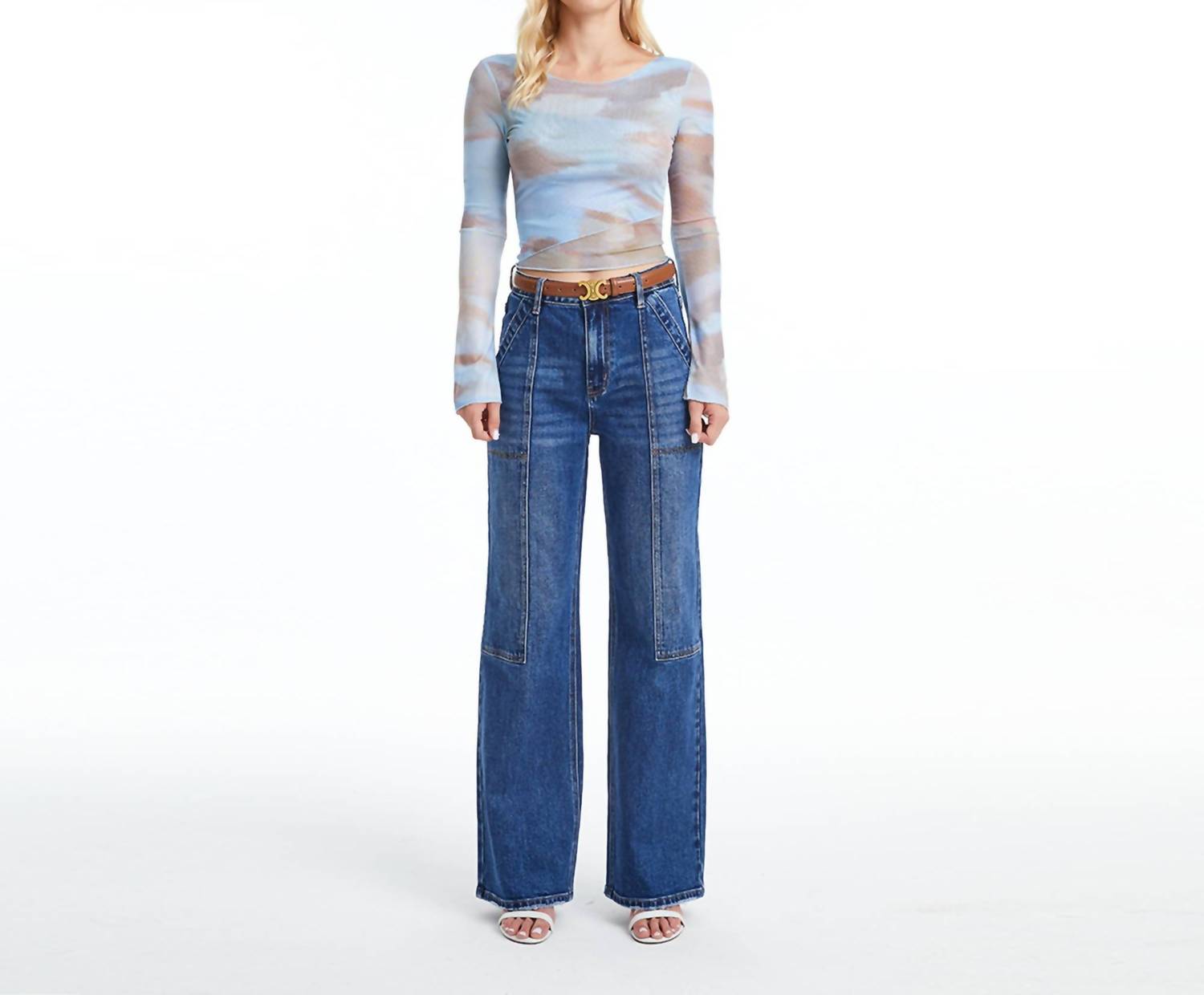 Pair these wide leg jeans with mules, slides or your favorite strappy sandals. Experience unparalleled comfort with the Super High Rise Wide Leg Jean by Bayeas, an epitome of stylish denim in a Deep Sea hue. With a high rise of 11.25 inches and an inseam of 31.5 inches, these jeans feature intricate seam detailing and natural washing effects for a sophisticated finish. The fabric blend of 92% Cotton, 6% Polyester, and 2% Spandex ensures a perfect fit with a button closure for convenience. Care instructions include machine washing and tumble drying, making these jeans a practical yet fashionable staple.