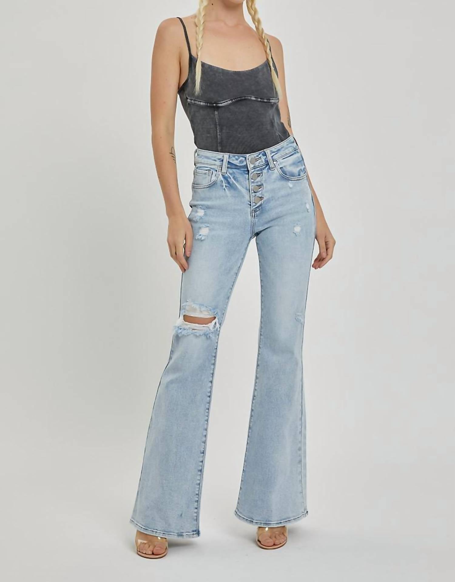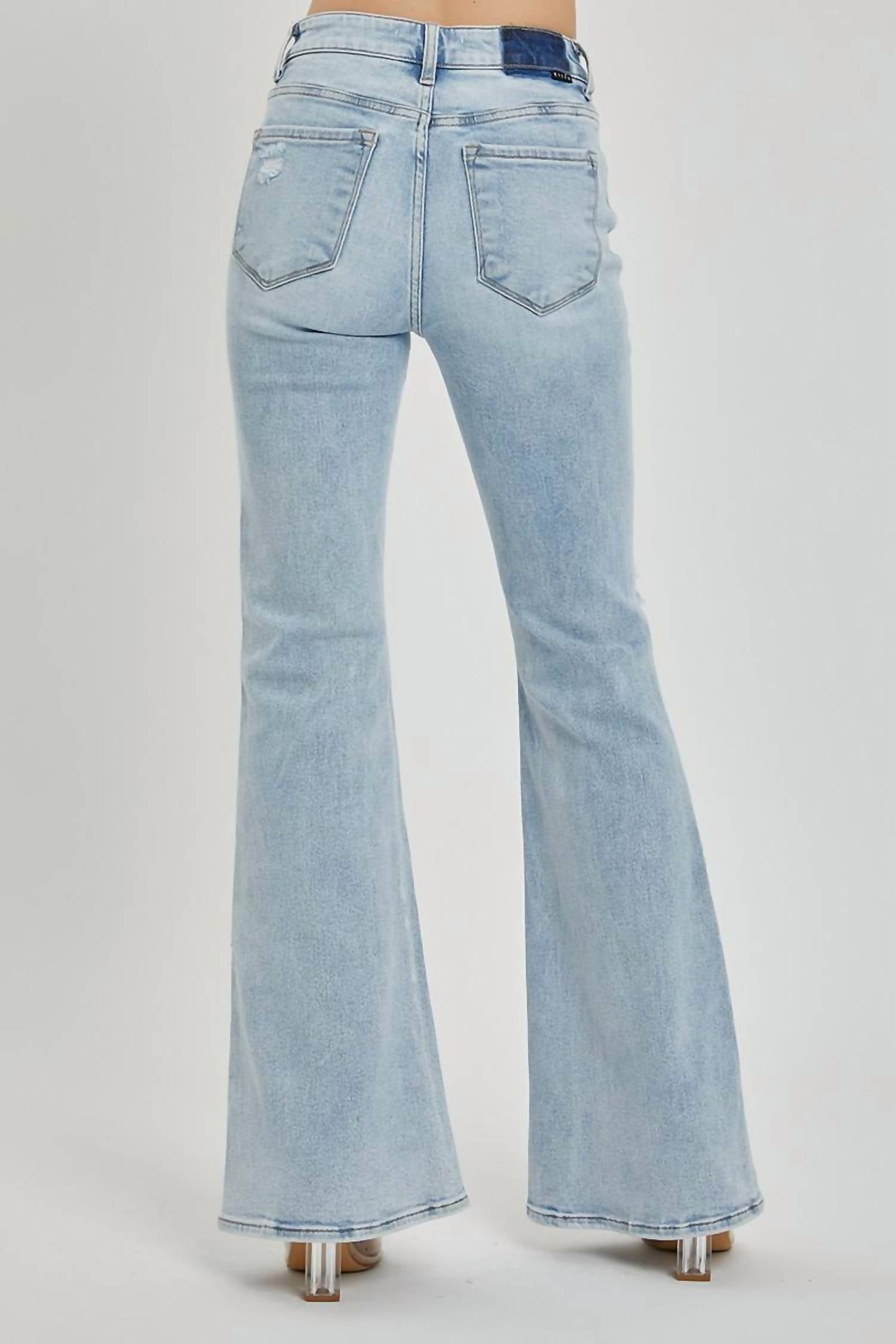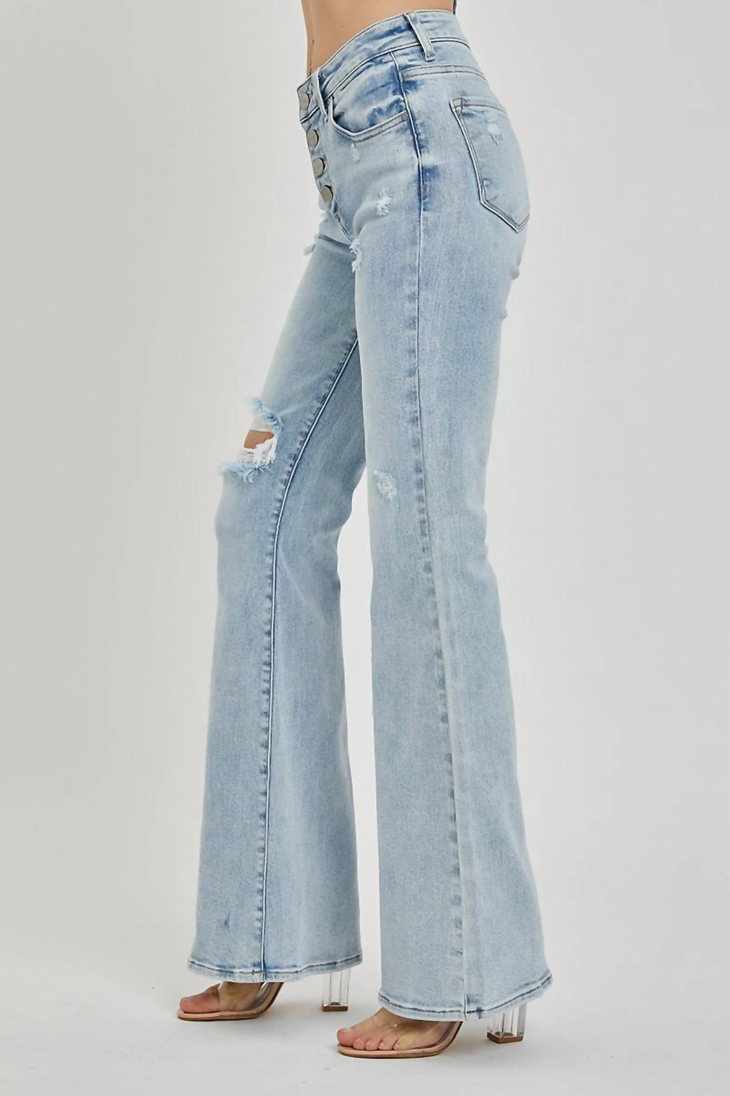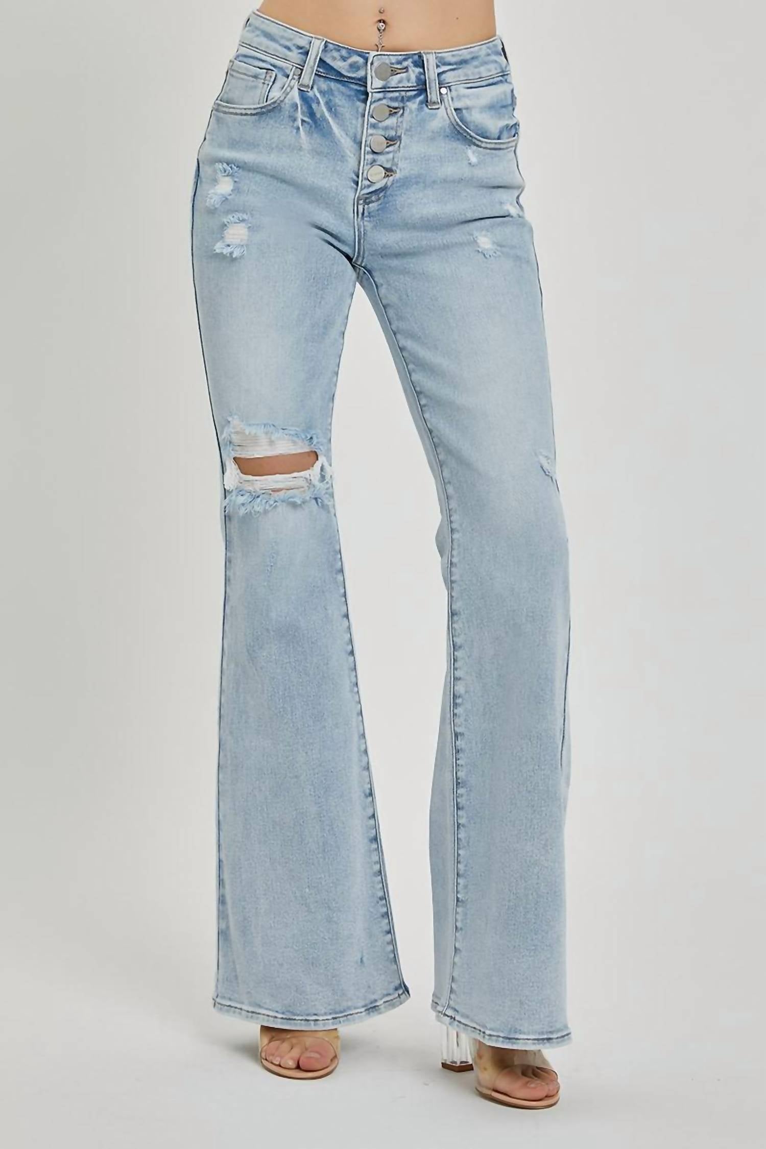 Risen - Mid Rise Button Down Flare Jeans