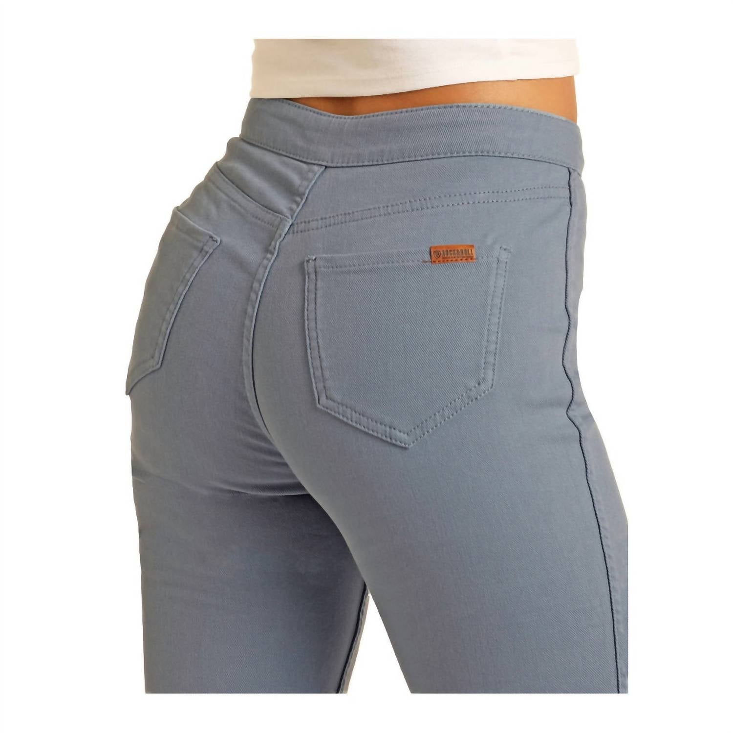 Pair these wide leg jeans with mules, slides or your favorite strappy sandals. Elevate your fall wardrobe with the Reversible Blue Button Flare Jeans by Rock & Roll Denim, crafted in a comfortable cotton blend. These sky blue jeans feature a graphic pattern and a stylish flared leg for a desirable western look. Designed with a slim fit and a convenient button closure, they're perfect for vacation occasions. Made without pockets, these jeans require simple care: machine wash and tumble dry for easy maintenance.