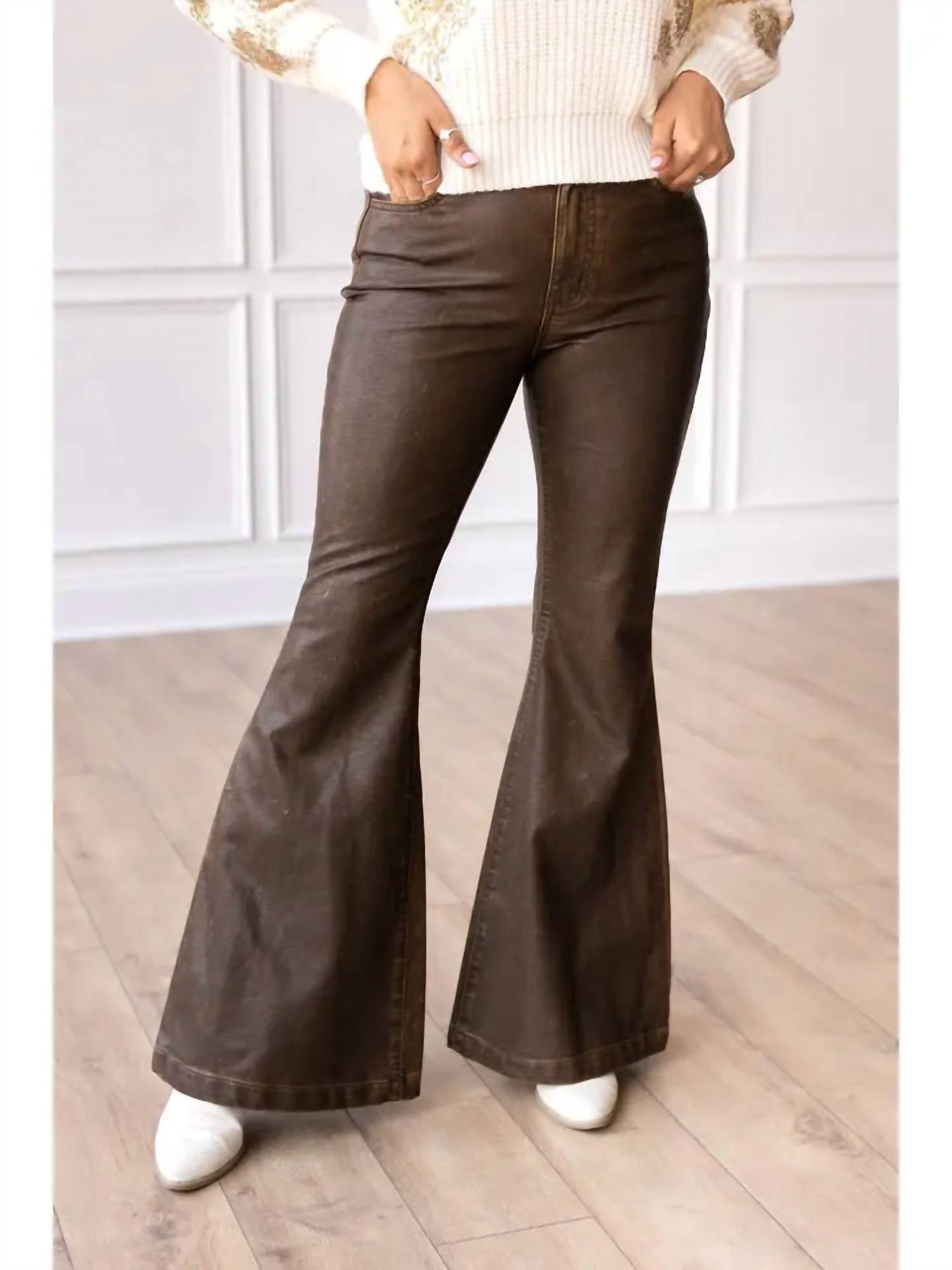Just as cute as they are comfortable. Introducing The Brandy Rustic Leather Bellbottoms by Grace + Emma, a stylish addition to any wardrobe with their flared leg design and rich brown hue. These women's bellbottoms are crafted from a 100% Polyurethane vegan leather, offering a chic and ethical alternative to traditional leather. Featuring a zip closure and functional pockets, they ensure a relaxed fit perfect for transitioning from day to night. A standout in the Flare & Wide Leg category, these solid pattern pants combine flair and versatility for diverse occasions.