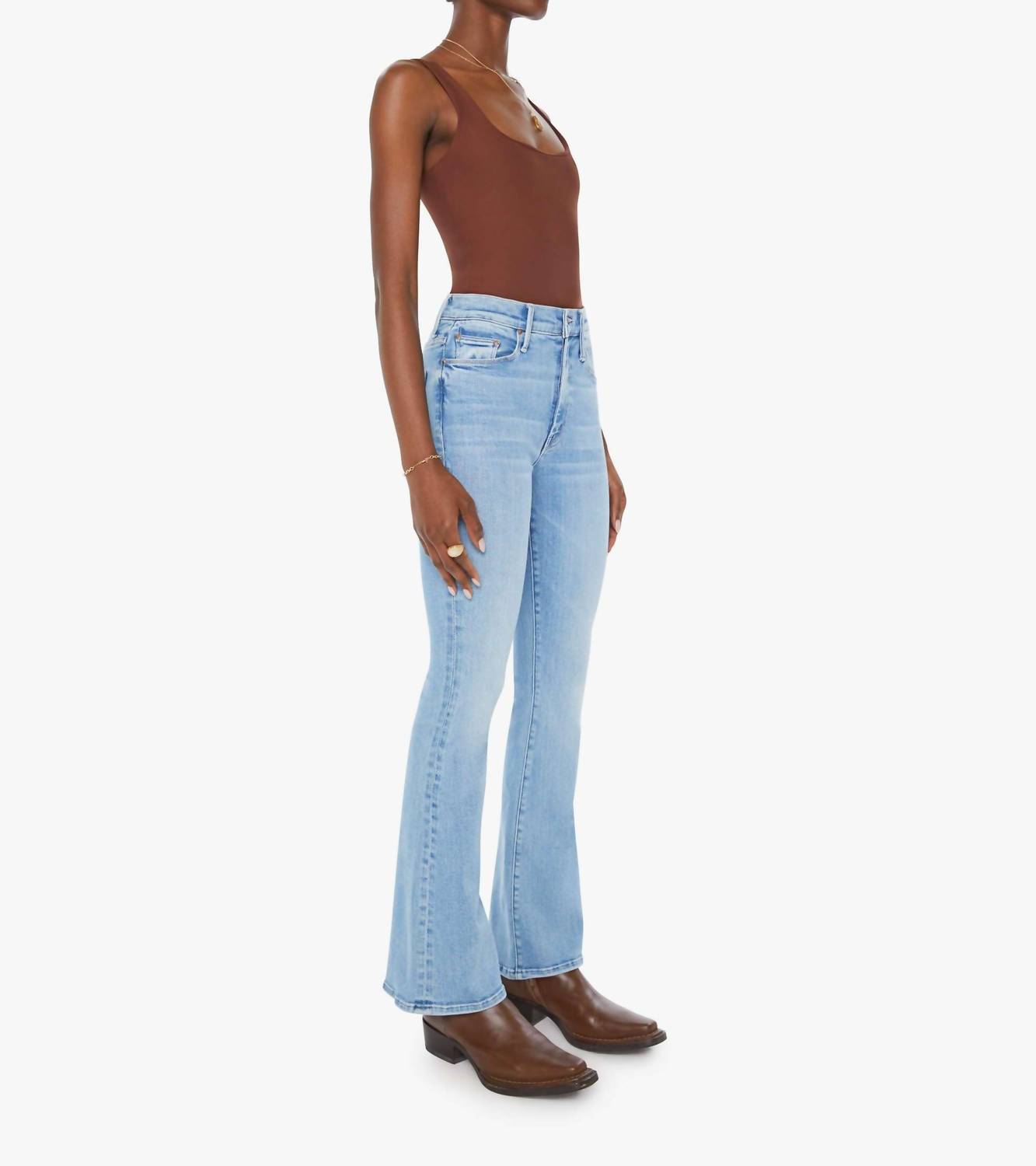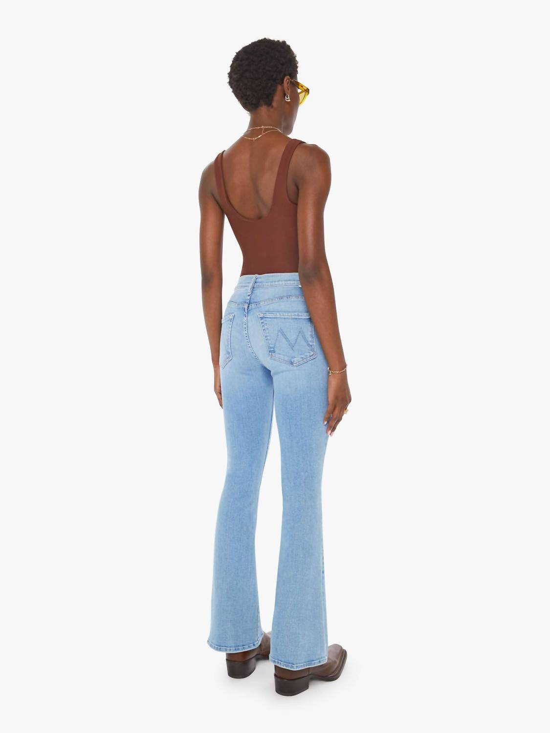 Just as cute as they are comfortable. Elevate your summer wardrobe with the Weekender Jeans by Mother, featuring a Blessing In Disguise hue for a chic, solid look. These women's jeans come with a flared leg style, a practical button closure, and functional pockets, embracing the 90s fashion trend with a sophisticated 9.5" rise and a 31" inseam. Crafted from a cotton blend for a comfortable fit, these jeans are ideal for vacation occasions. Care instructions are not available.