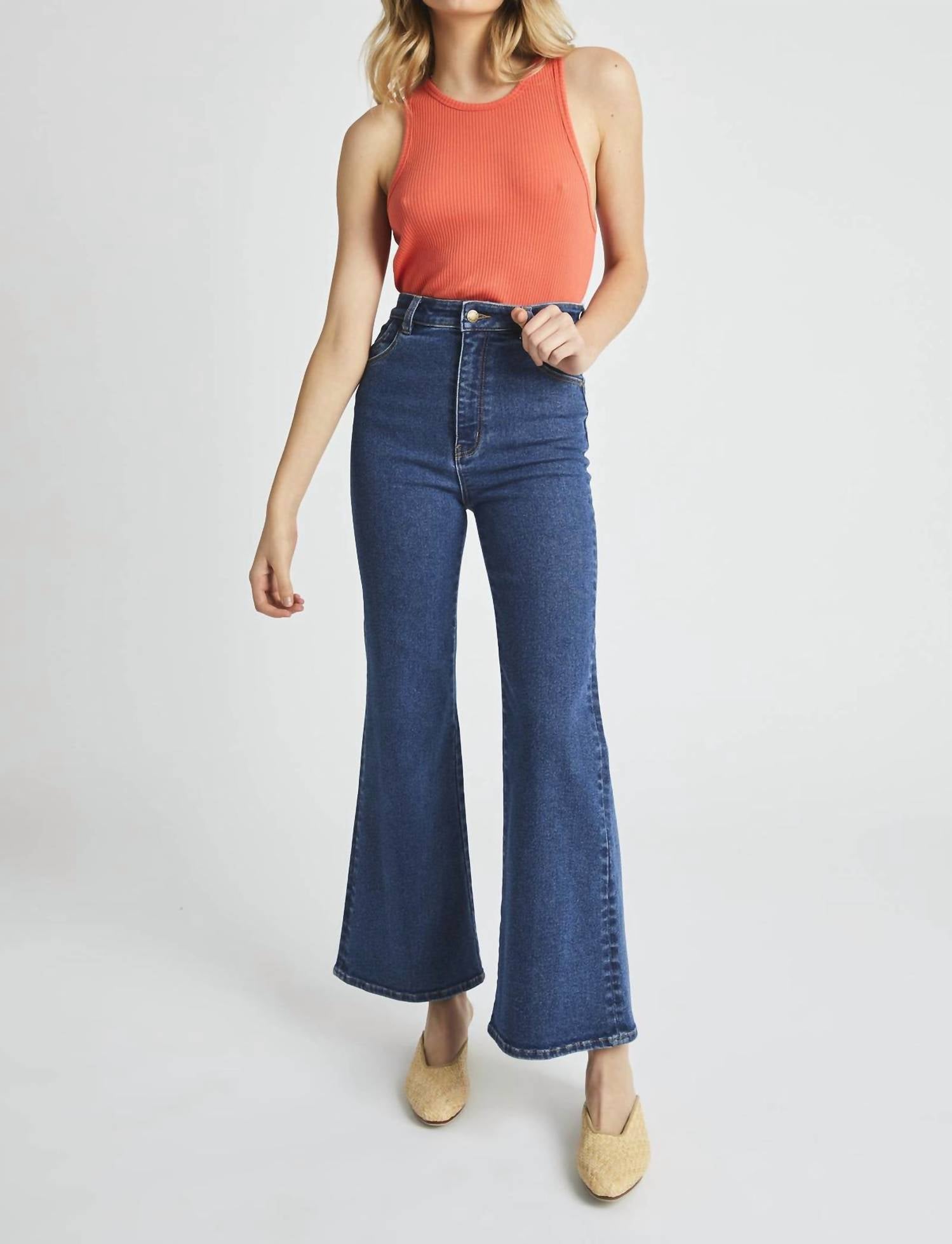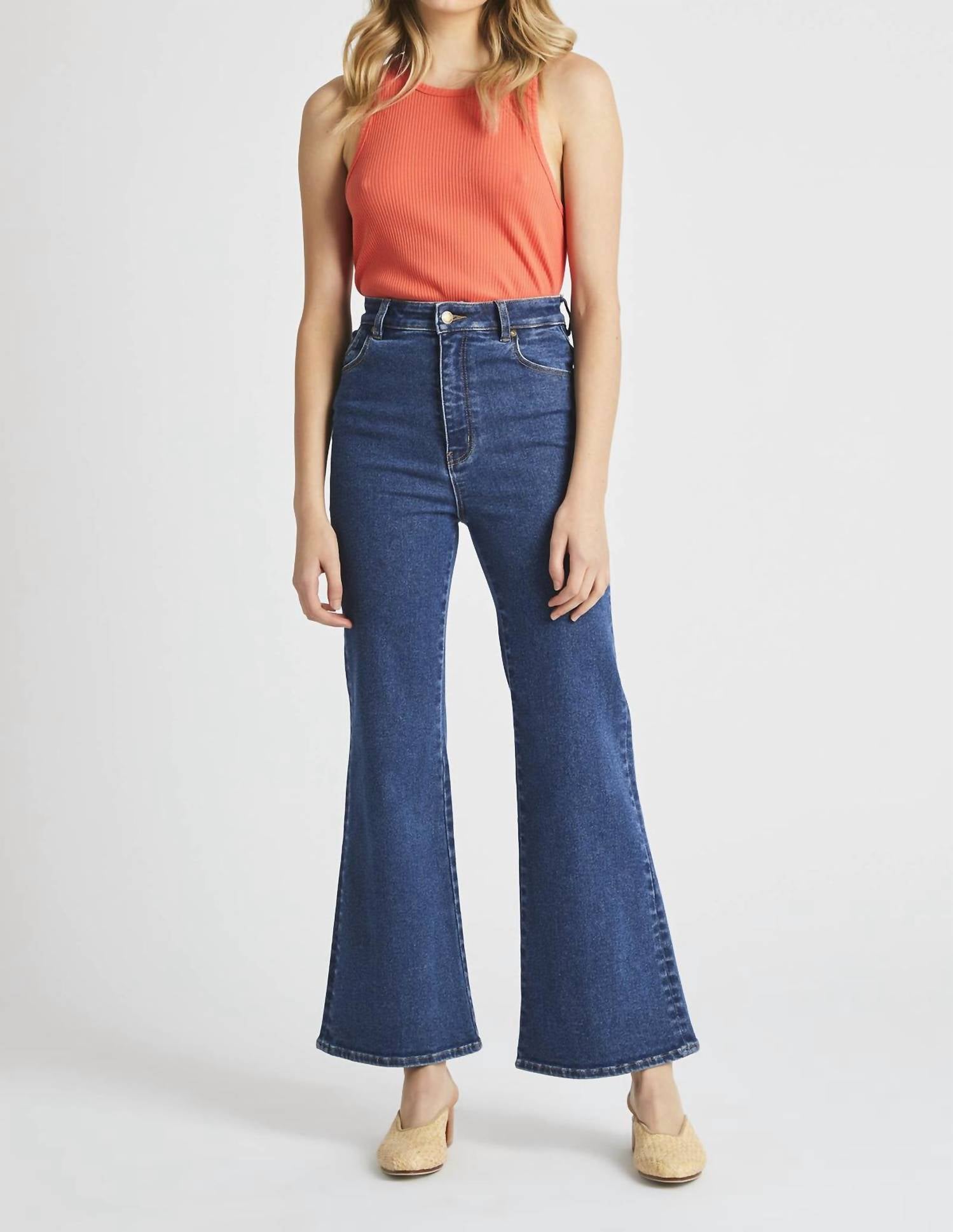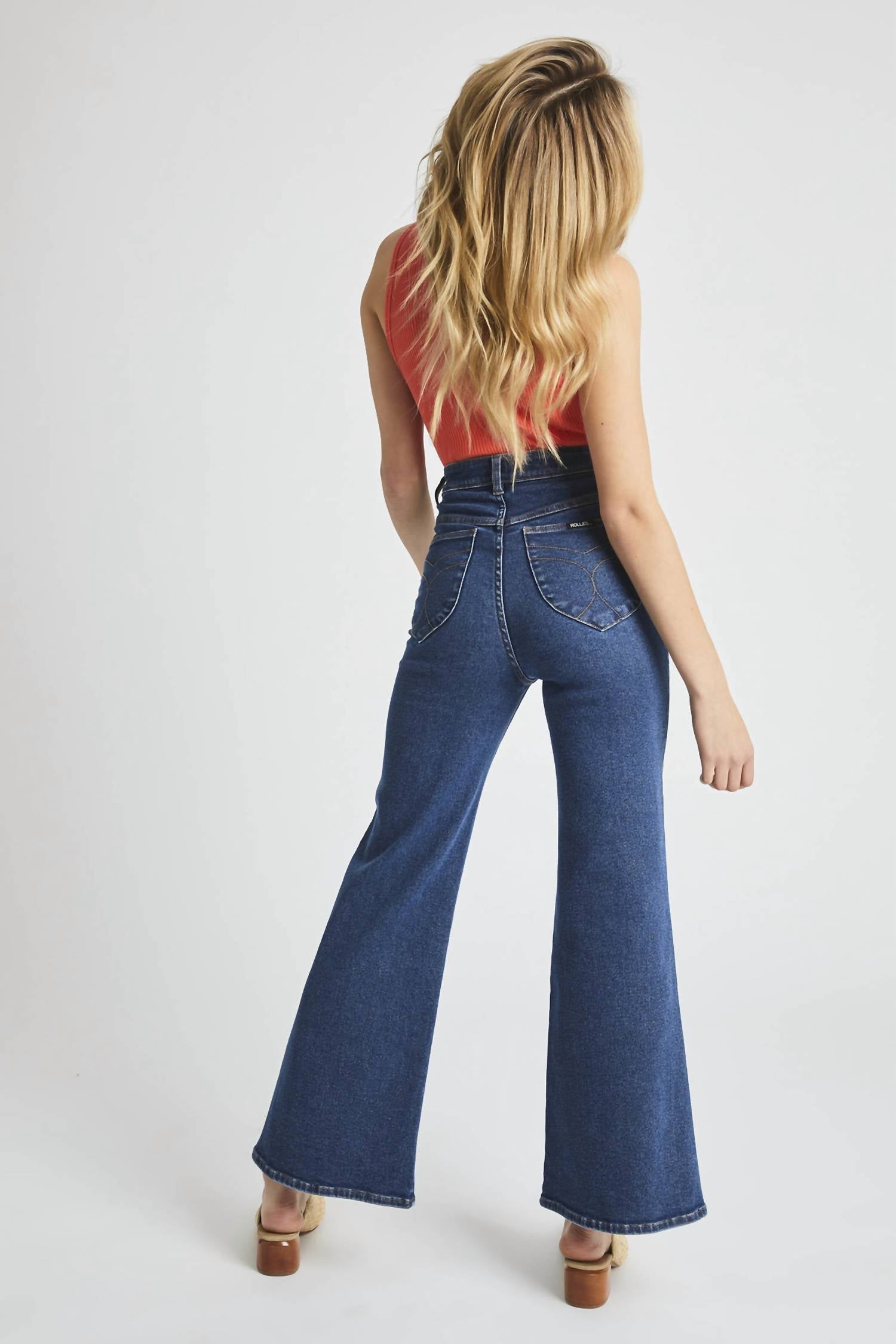 Pair these wide leg jeans with mules, slides or your favorite strappy sandals. Introducing the Eastcoast Flare Jean by ROLLA'S, crafted for a chic and flattering silhouette. These denim jeans come in a stylish Bayside Blue, designed with a high-rise 11-inch waist that molds to your shape over time. Featuring a slim fit through the hips and a flared leg, they include practical pockets and a secure zip closure. With a composition of 99% Cotton and 1% Spandex, these jeans are both comfortable and durable. Care is simple with machine wash and lay flat to dry instructions, ensuring they stay looking great wear after wear.