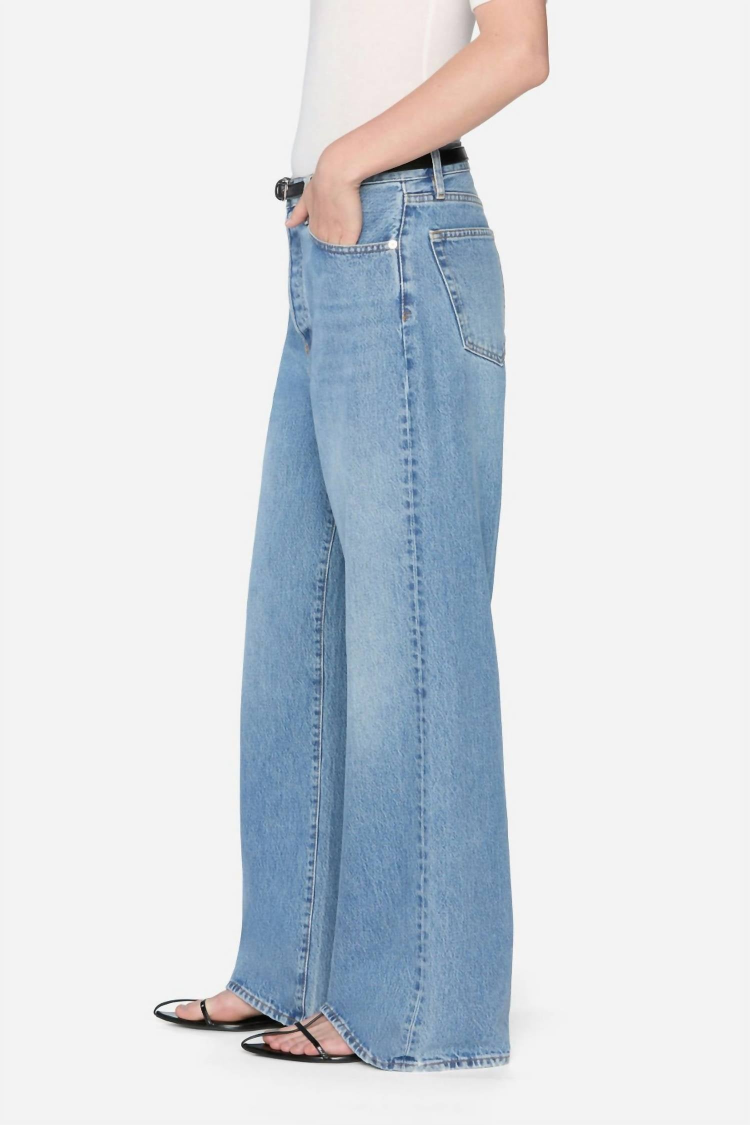 A flattering silhouette that's suprisingly versatile. Introducing Women's The Loose Jeans by FRAME, the epitome of relaxed denim chic in a captivating blue hue. These jeans boast a wide-leg style and a classic fit, crafted from premium cotton with a light wash for laid-back summer style. With a zip closure and practical pockets, they merge function with fashion while offering a nod to streetwear trends. Made in Los Angeles, each pair reflects FRAME's dedication to sustainable, fair manufacturing and innovative design. Perfect for a vacation-ready wardrobe.