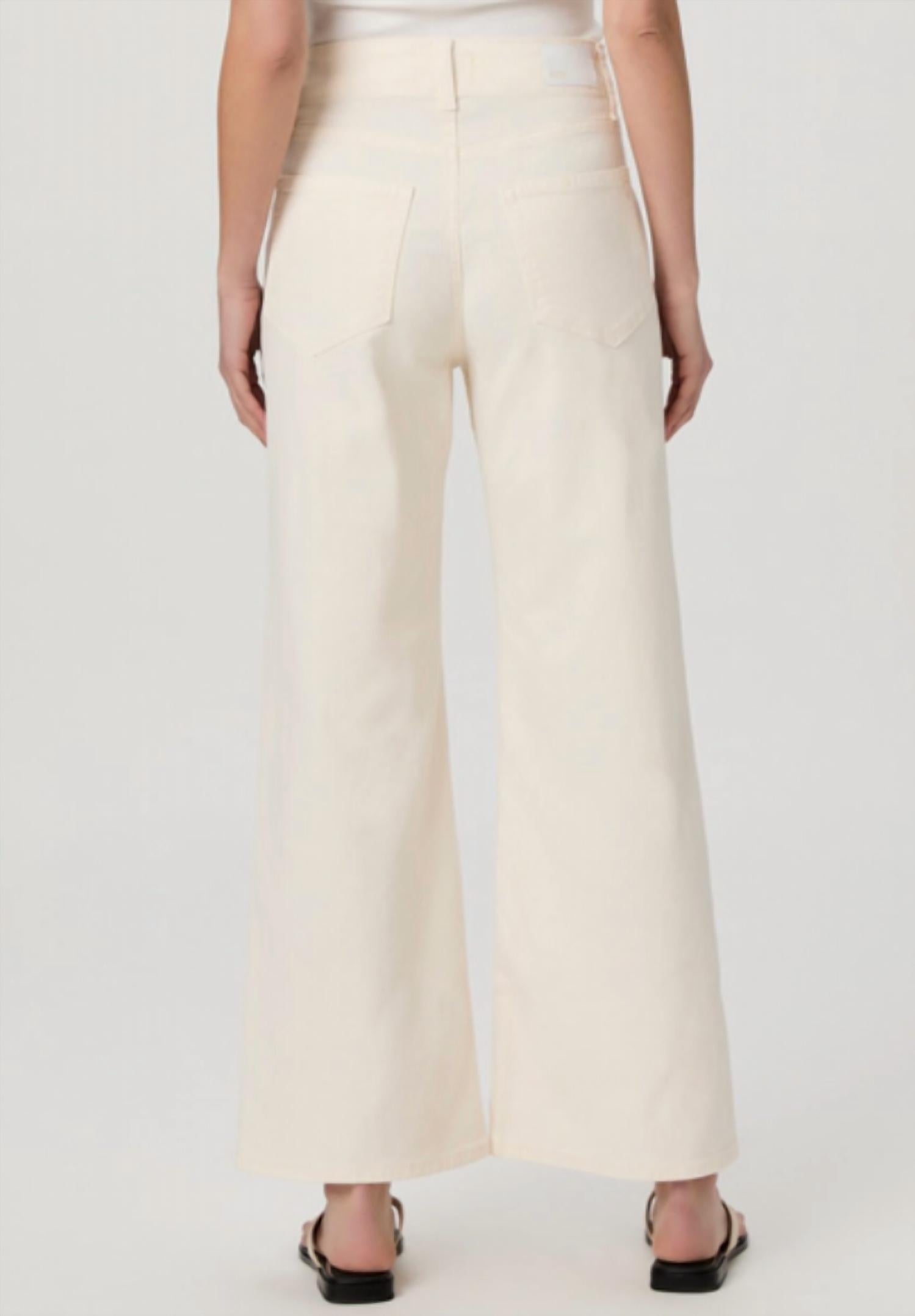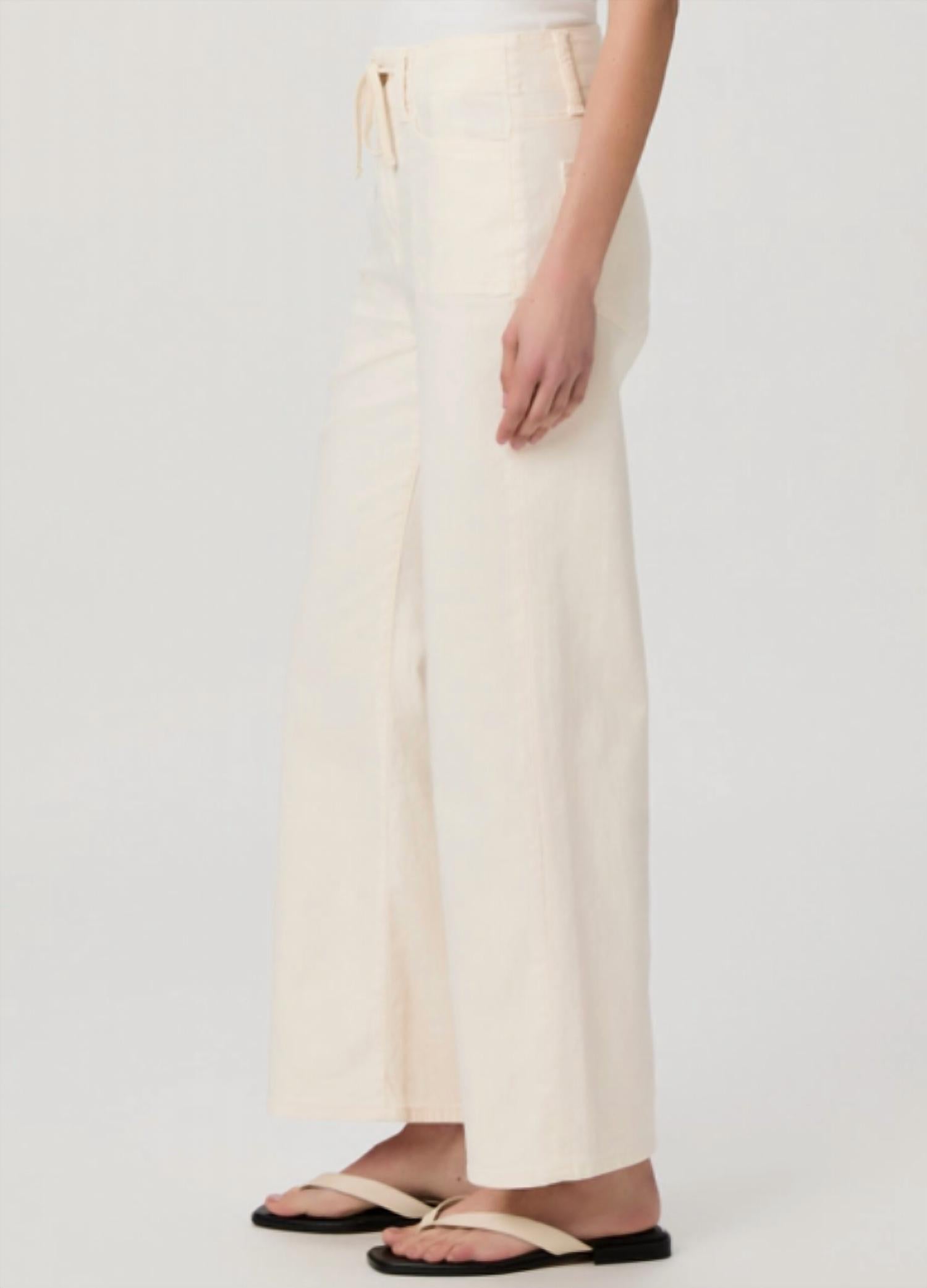 Just as cute as they are comfortable. Ari is our modern high rise, wide leg weekender pant with a lightweight, relaxed fit and an ankle-length inseam. Crafted from super soft denim, this pair comes in an off-white wash with utility pockets and a waistband tie.