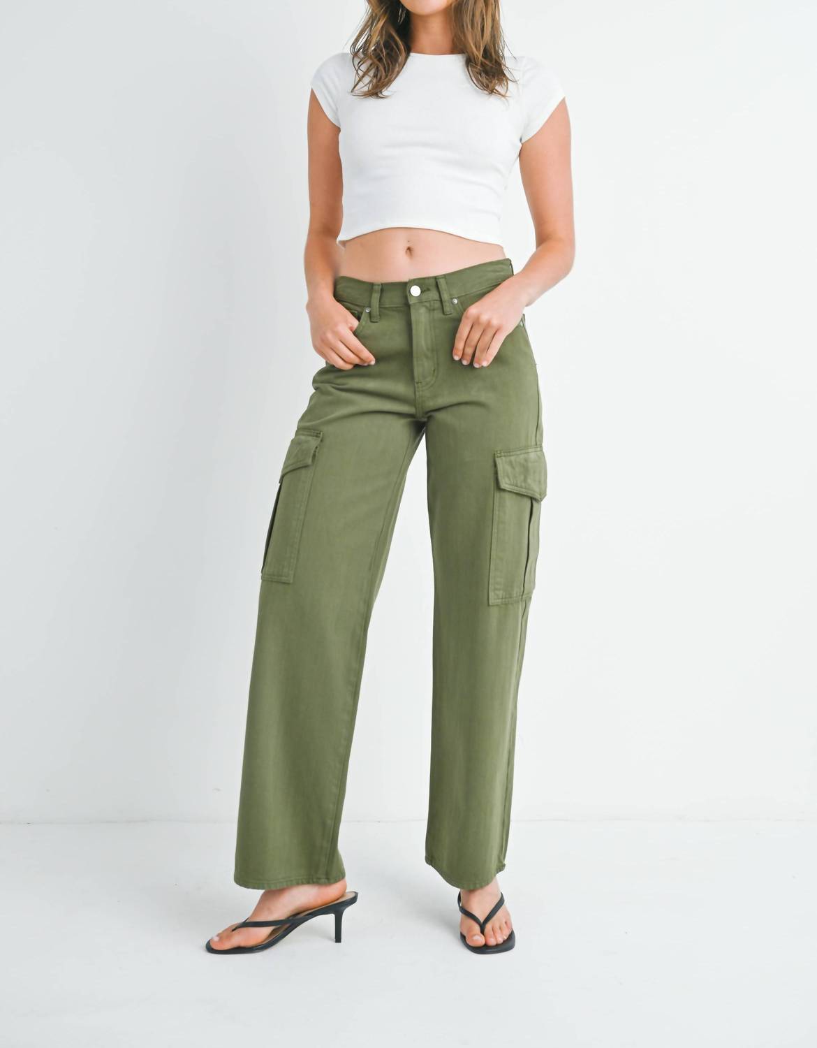 A flattering silhouette that's suprisingly versatile. Discover the JBD. Tyler Cargo Jean, a chic addition to your streetwear collection in a striking dark olive shade. These high-rise, wide-leg jeans offer a flattering fit with their relaxed style, featuring a 10" rise and 31" inseam. Crafted from 100% cotton, they showcase a solid pattern with practical seven-pocket detailing and a secure button closure. Effortlessly maintain them with machine wash and tumble dry care instructions, making them perfect for your next vacation or Easter celebration.