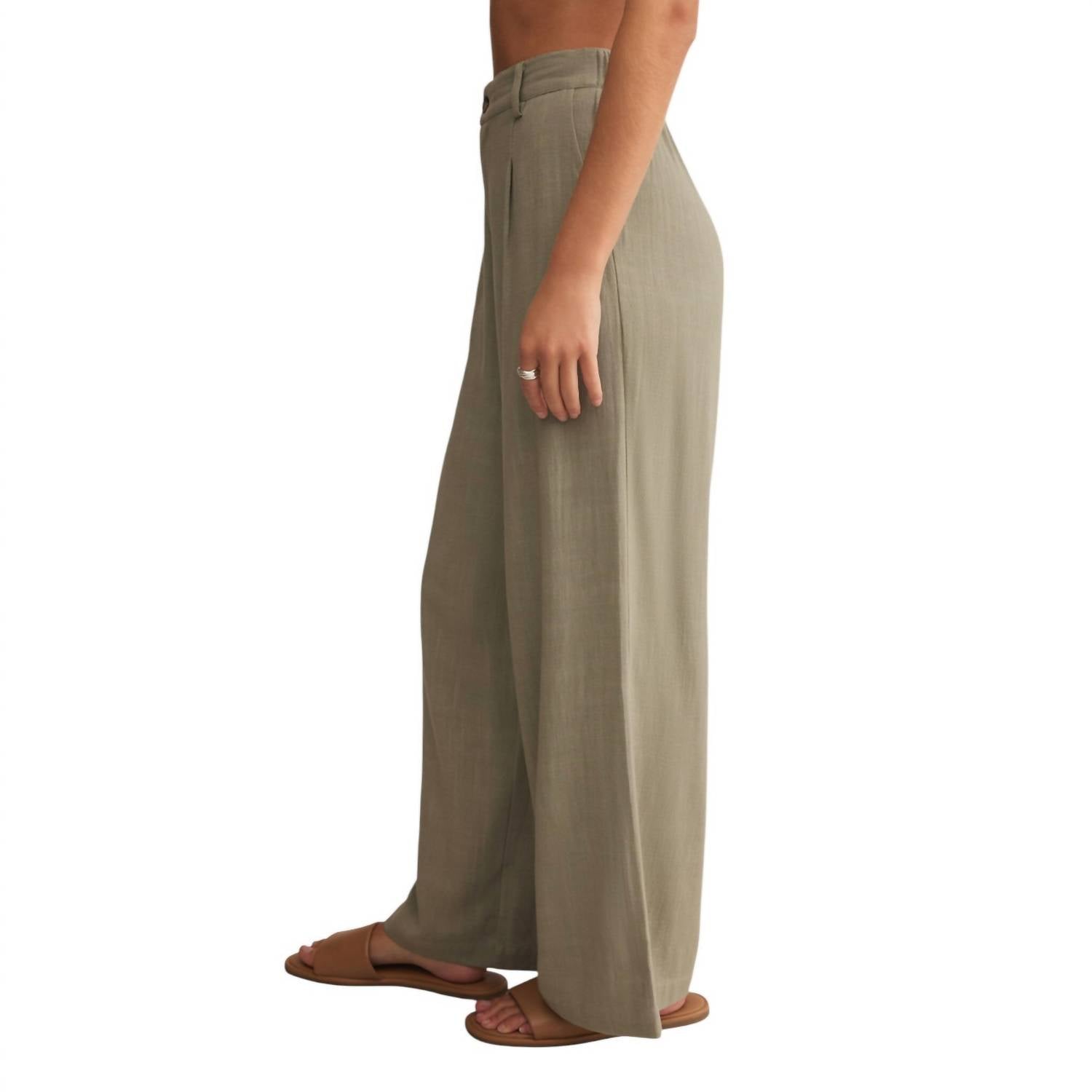 A flattering silhouette that's suprisingly versatile. Introducing the Women's Flare Pants by Z Supply, crafted in a captivating Dusty Palm hue. With a regular fit and high-rise waist, these pants feature a dramatic wide leg and solid pattern, offering a modern yet timeless silhouette. Made from soft Viscose, they ensure comfort and style for your summer vacation or streetwear outings. Pockets add practicality, while a zip closure completes the look.