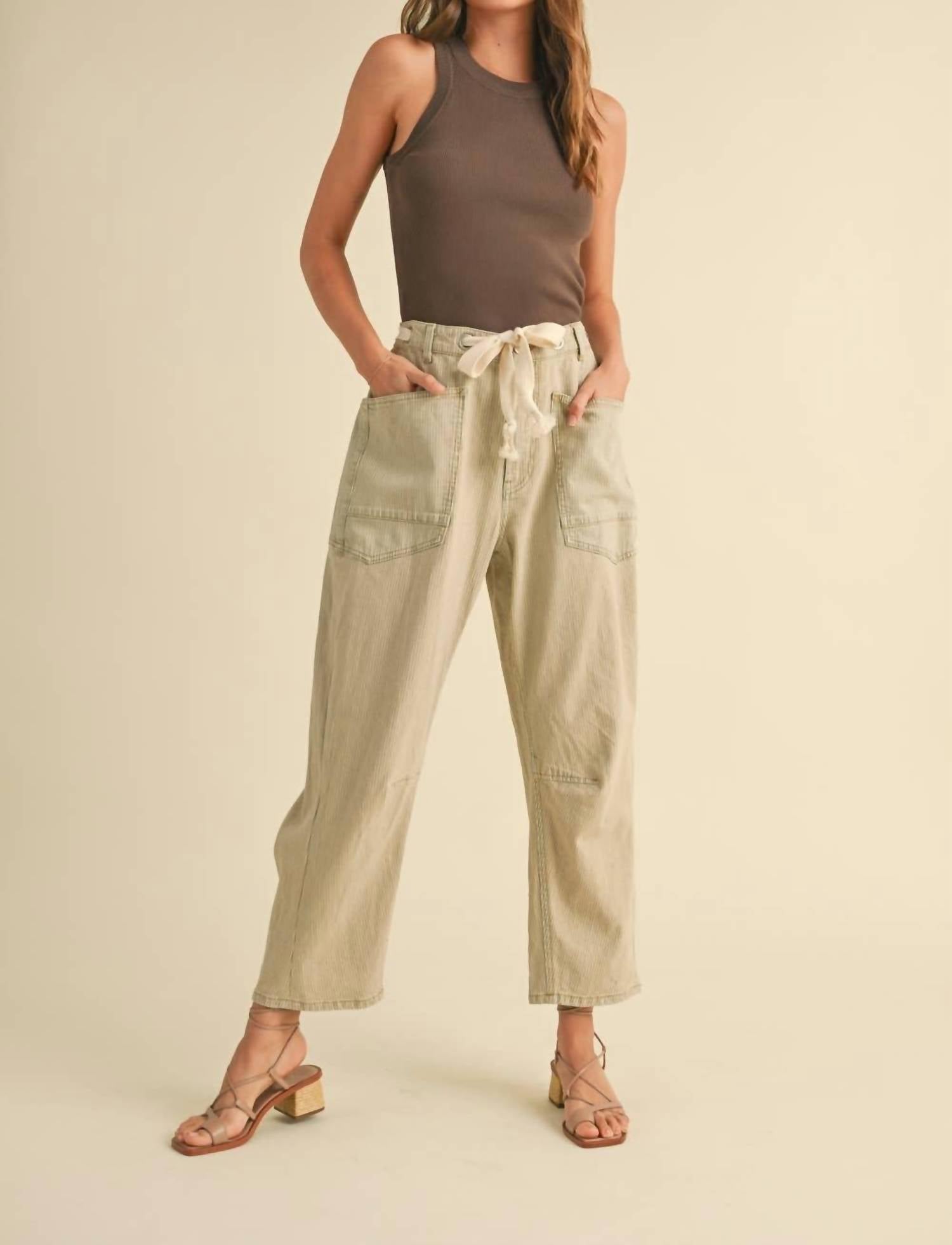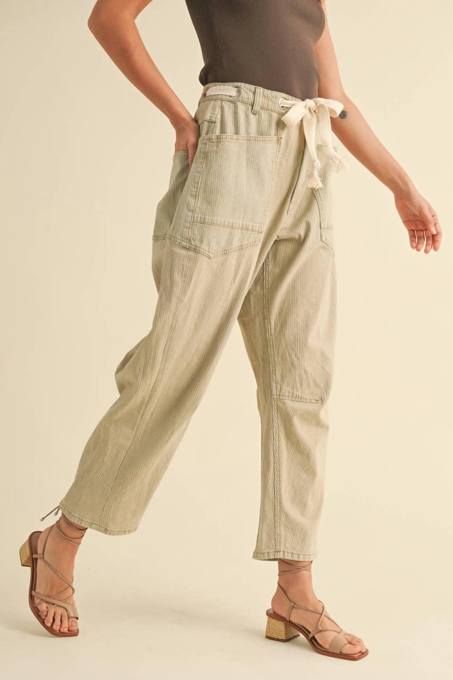 Just as cute as they are comfortable. Introducing the Emery Utility Denim by MIOU MUSE, the perfect blend of comfort and modern style. These LT BLUE/CREAM wide-leg pants feature a relaxed fit with a high-rise waist, ensuring a flattering silhouette. Crafted for versatility with a solid two-tone design, they sport a tie closure for added chic appeal. Care instructions include machine wash and tumble dry for easy maintenance.