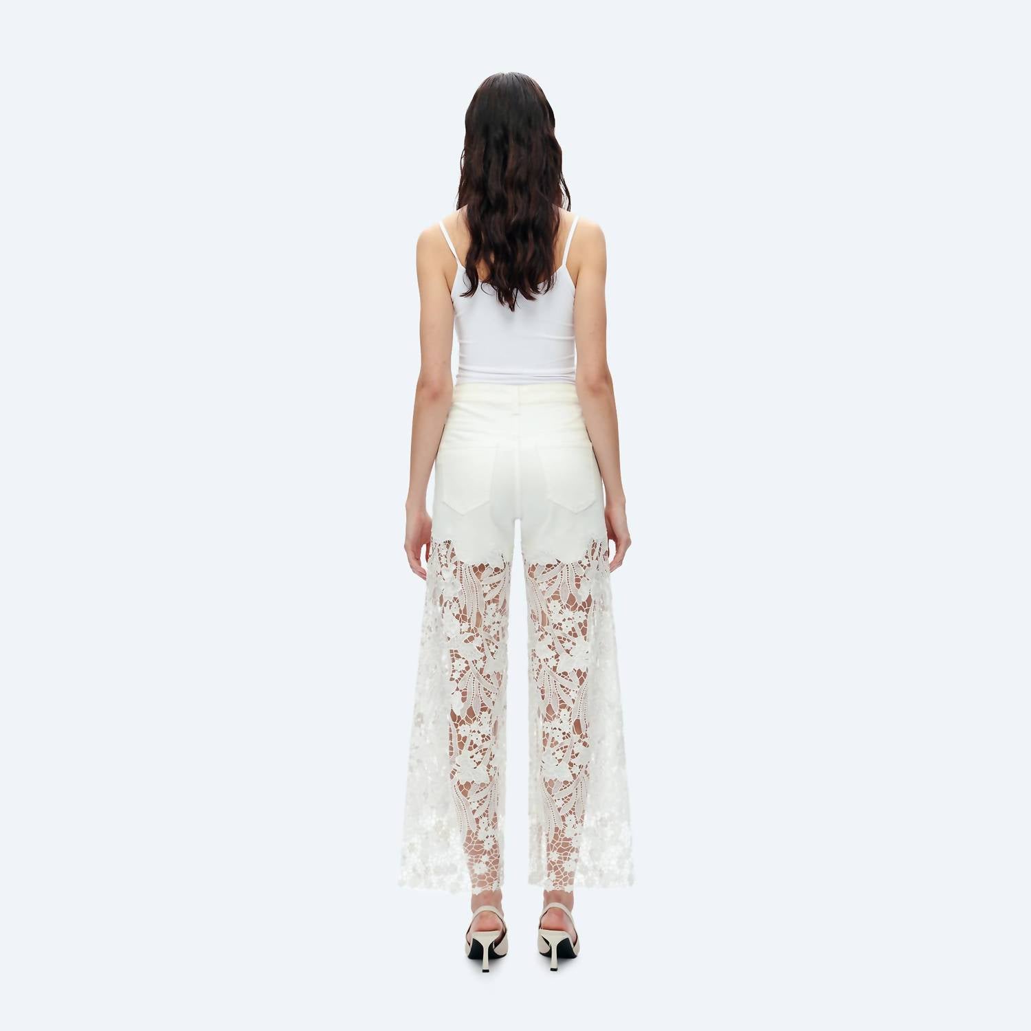 Bayeas - Embellished Lace Contrast Wide Leg Jeans