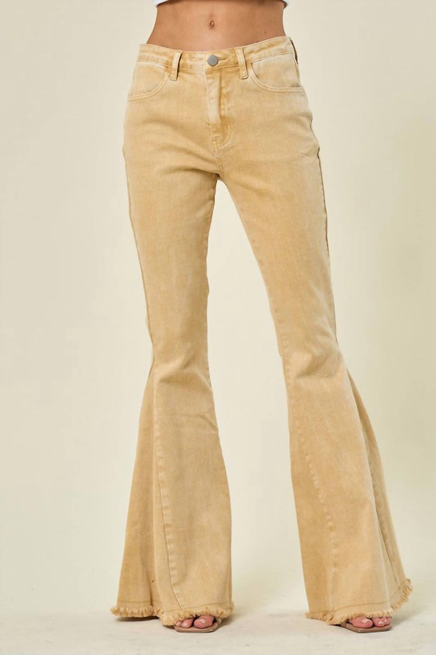 Just as cute as they are comfortable. These Western Distress Flare Jeans by Wisteria Lane in chic Sand offer a distinct style for any wardrobe. Designed with a mid-rise and slim fit, they feature a flattering flared leg and a distressed, rough-edge hem. 75% Cotton, 23% Polyester, 2% Spandex. Button and zipper. Hand wash or machine wash for easy maintenance. Inseam: 30 inches.