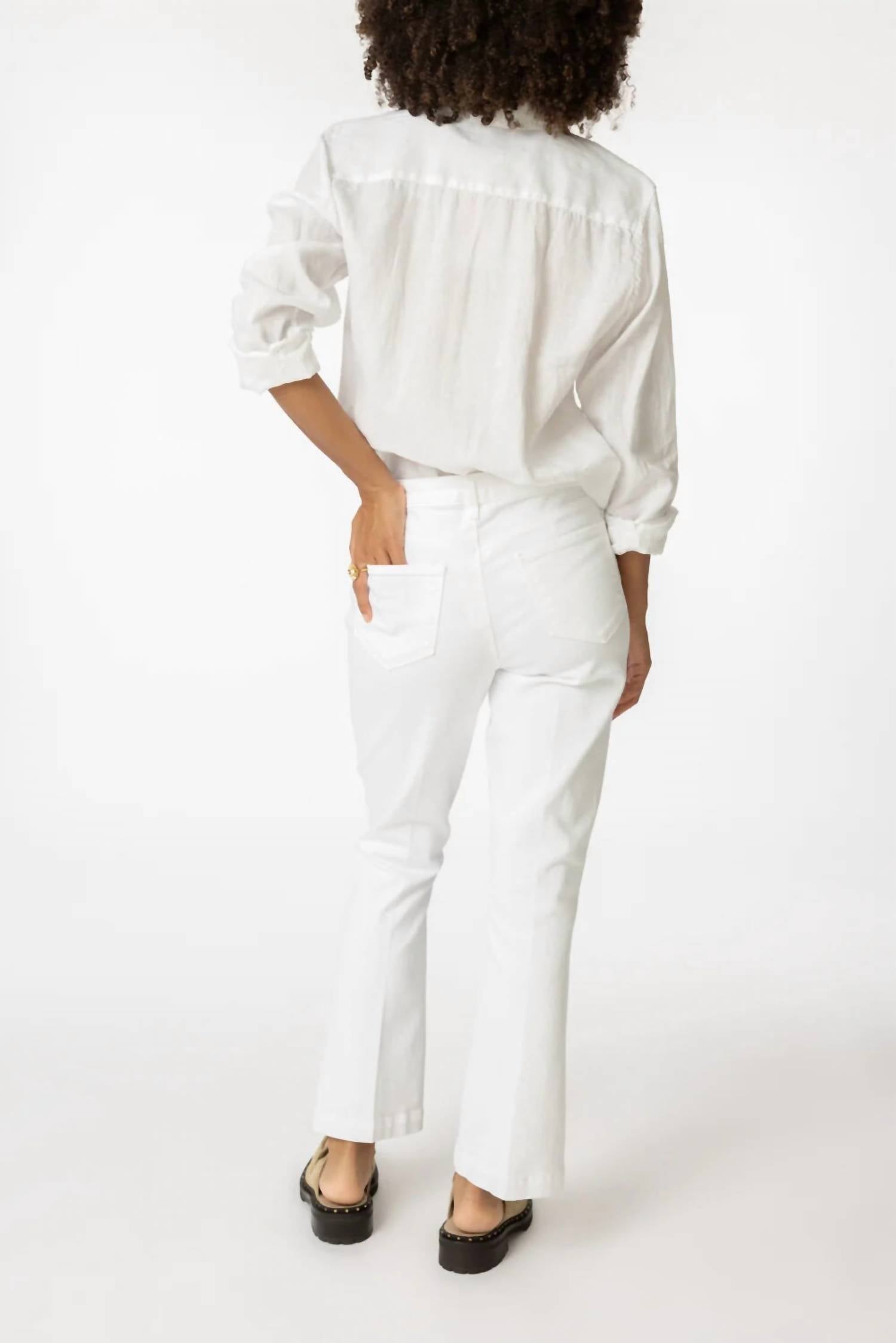 Just as cute as they are comfortable. The Ali High Rise Slim Flare Jeans by L'Agence are a chic modern interpretation of classic denim, presented in a clean Blanc wash. These women's jeans showcase a high-rise waist with a relaxed, slim fit through the hips and thighs, subtly flaring at the hem for a flattering silhouette. Composed of a 94% cotton, 5% polyester, and 1% spandex blend, they offer soft structure with added stretch for comfort. Closure: Zip closure. Care: Dry clean only.