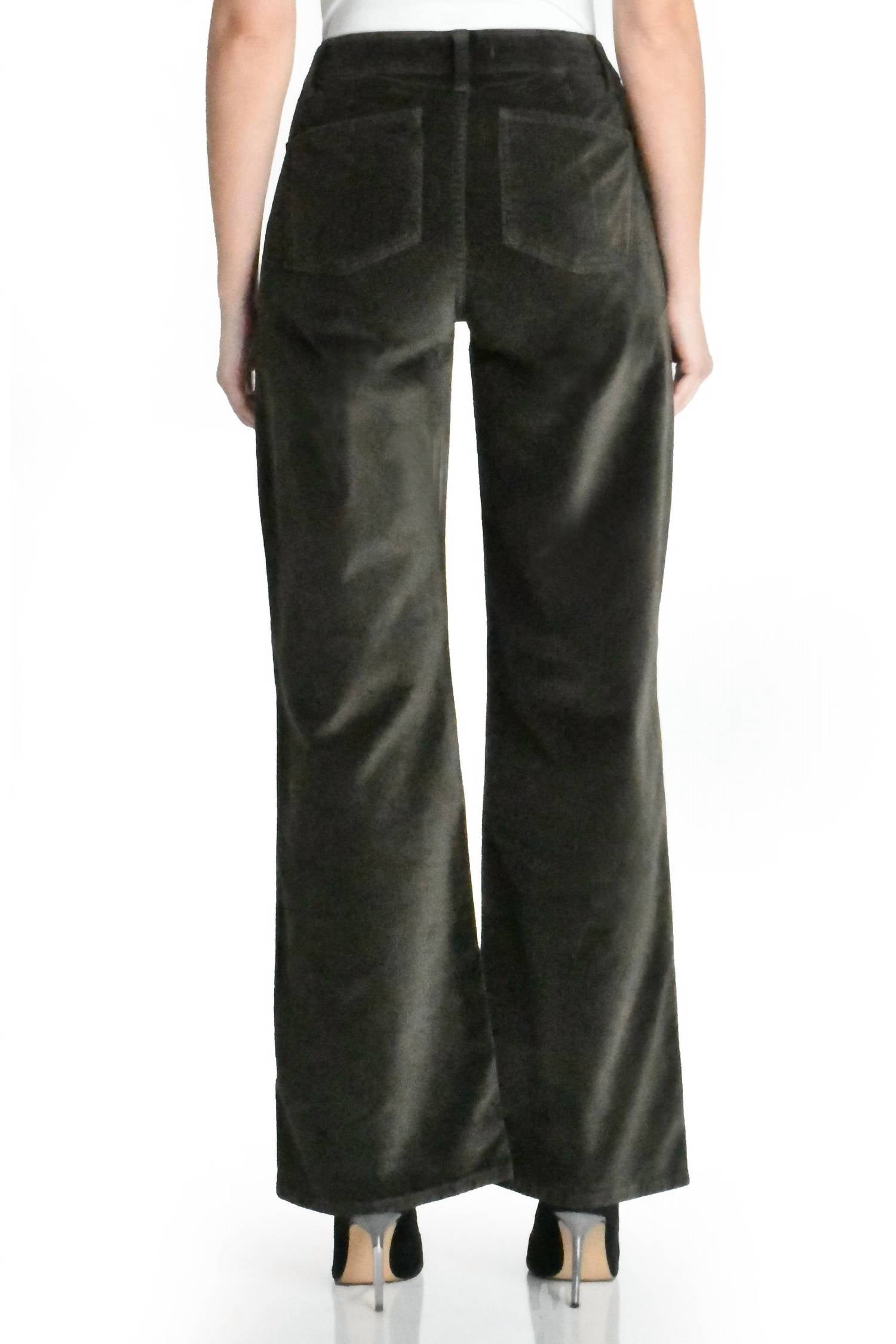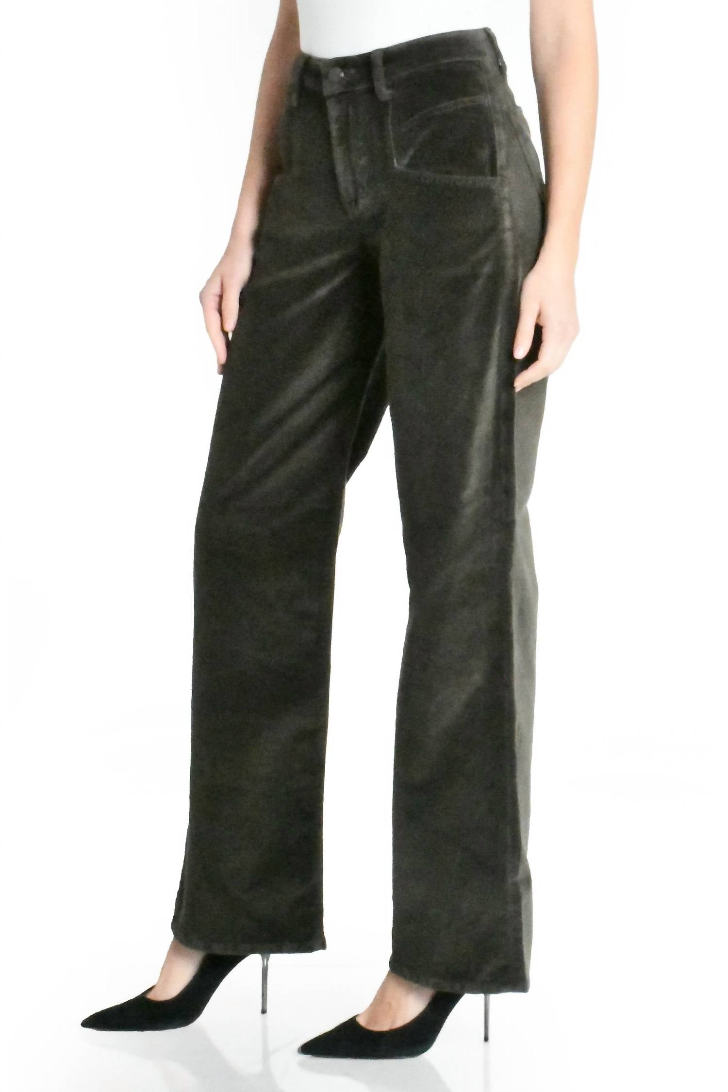 Pair these wide leg jeans with mules, slides or your favorite strappy sandals. Elevate your style with the Defazio Wide Leg Jeans by FIDELITY, perfect for effortless movement in a deep sage hue. Made in the USA, these relaxed-fit jeans feature a high-rise with a 10" rise and 32" inseam, and a generous 22" leg opening. Crafted from a velveteen twill blend of 97% cotton and 3% elastane, they offer both comfort and flexibility. The design includes practical drop pockets and a secure zip closure, while care is simple with machine wash cold and tumble dry low instructions.